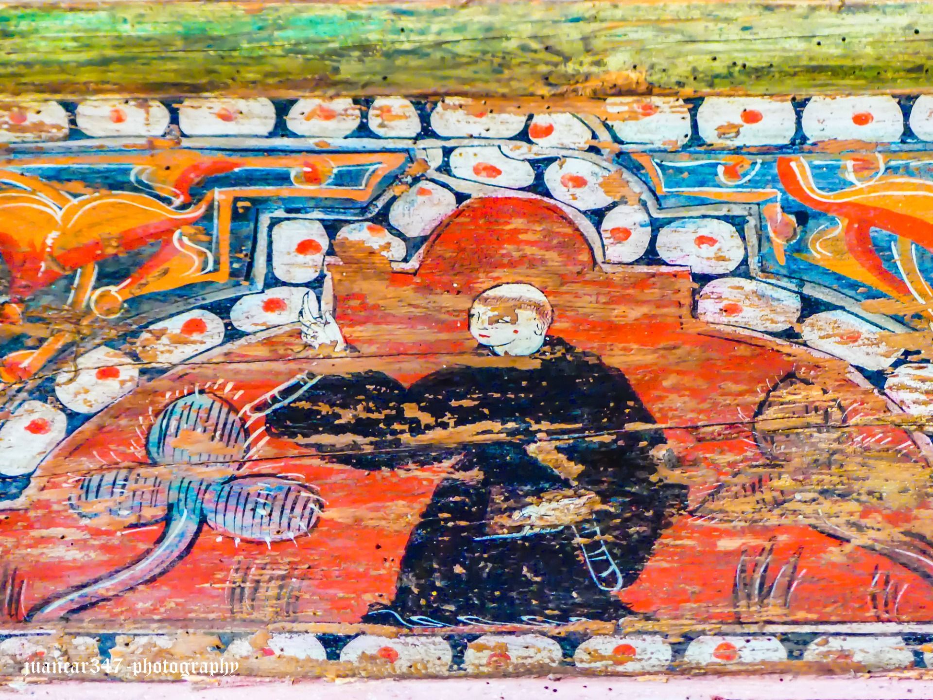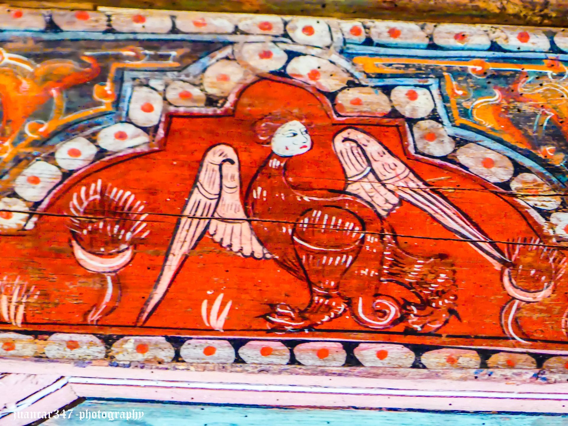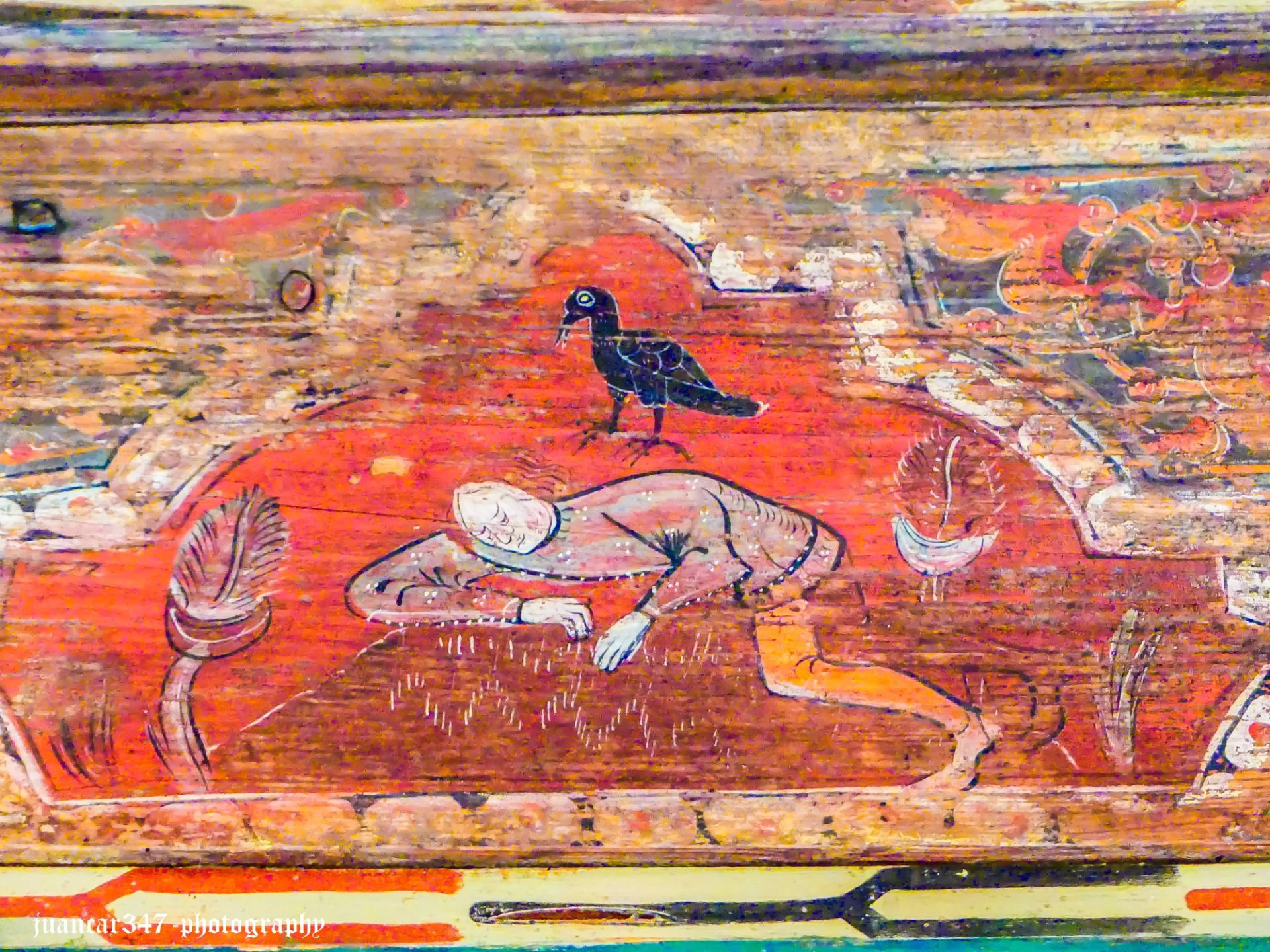 It should not surprise us, therefore, that until relatively recently, among the most hallucinatory scenes in this surprising coffered ceiling, one could see, as an unusual social critique, the figure of a wolf, dressed in a priest's chasuble, officiating at a symbolic funeral mass, where the deceased was a hare.