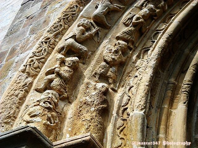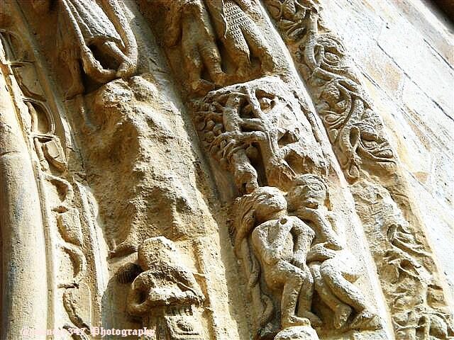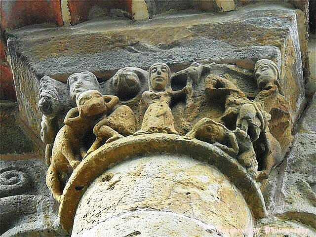 They call attention, precisely at the door of the west or San Juan, the varied and rich expressiveness of the figures represented in it, being of special relevance - and here is a possible, although veiled allusion to the Temple - two characters that support their hands on a staff or stick in the form of Tau. Similarly, curiously, it is also located in one of the canecillos of the church of San Pedro de Tejada, located in the neighboring valley of Valdivielso and considered, in fact, another of the Romanesque wonders of the Merindades.