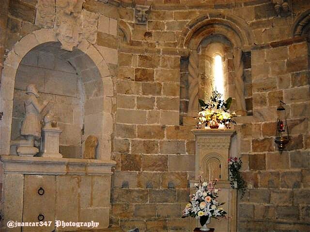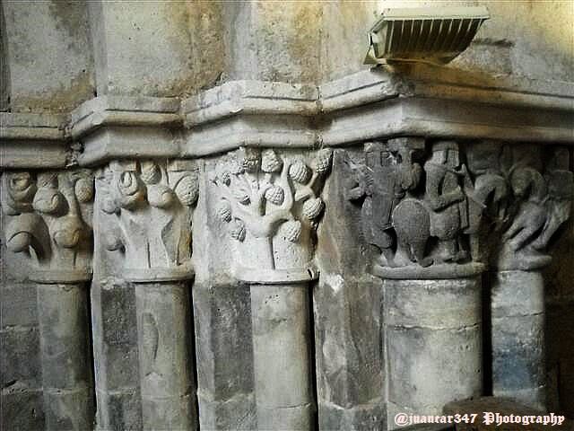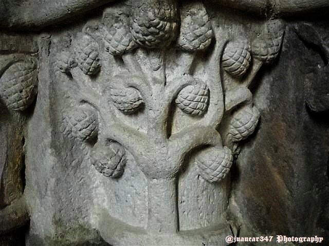 Within this unique iconography, surely generated by the same stonemaking guild, a certain series of symbols constitute a constant, also, with the temple of Santa Maria, located in the neighboring town of Siones. The most prominent of these symbols are: a possible allusion to the union or universality of Christianity, represented in a tree of life, whose branches show a remarkable amount of pineapples.