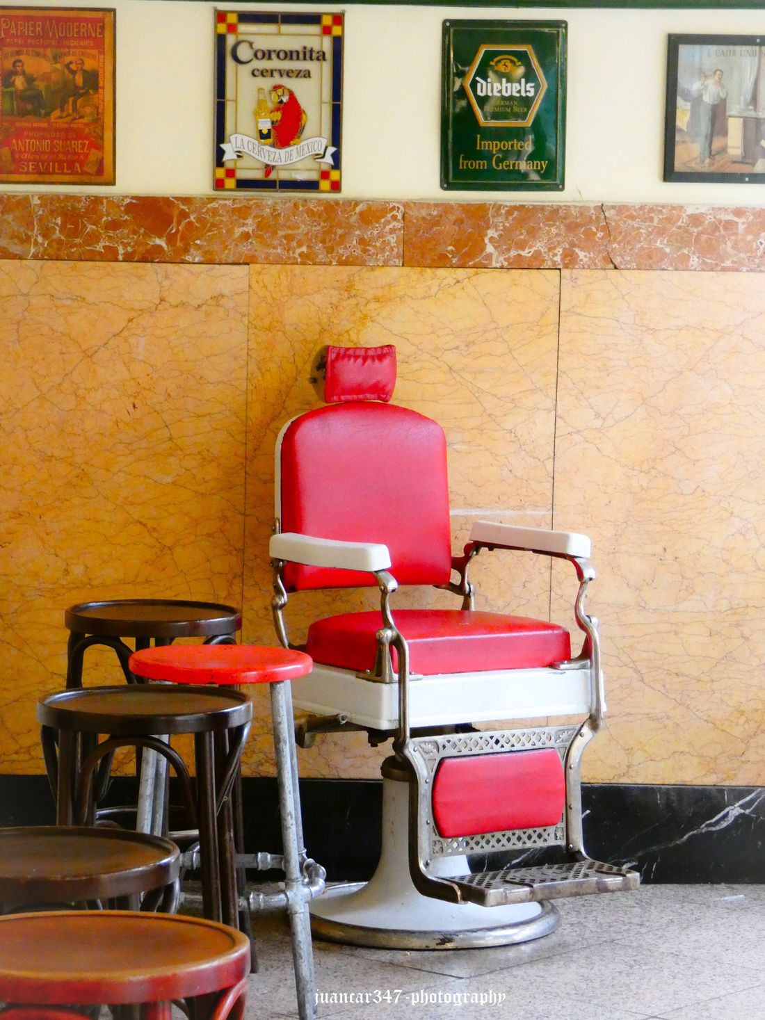 The dust that time accumulates on the formidable collections of beverages, whose evolution has also continued, in many cases, adapting to new demands for flavors and pleasures, contrasts, on the other hand, with other period objects, such as old barber chairs, which make us think, with a smile on our lips, of those days when we were beginning our careers as gentlemen and how proud we felt when we imitated Dad, even though we sometimes protested when the barber's scissors hurt us, leaving us with a small haircut.