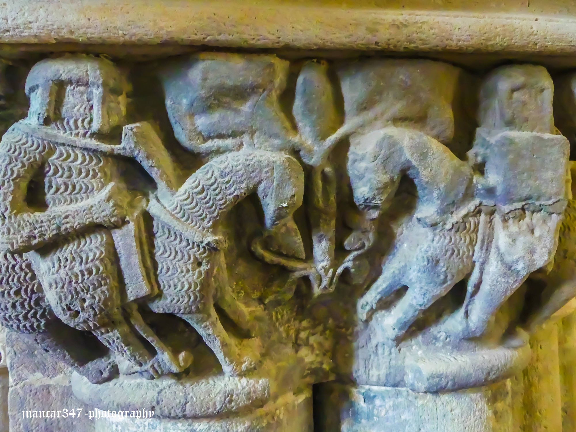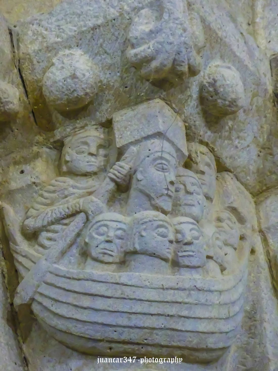 This is even more evident, if possible, not only in a curious capital near the church choir, depicting two knights fighting on horseback, one of them bearing a cross on his shield, but also in another capital located further on, which shows a boat with nine curious figures aboard, at the head of them all, a figure wearing a crown.