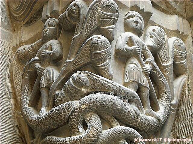 Within the known evangelical theme - where through the strength of the symbol, the stonecutter plays with the sublimity of the messages - there is, in addition, in my view, another theme - which could be considered secondary - that, however , leads to navigate the controversial oceans related to the rich and complicated Medieval Bestiary, leading to the possibility of more complex interpretations, which derive to forms and archetypes of remote and even pagan antiquity.