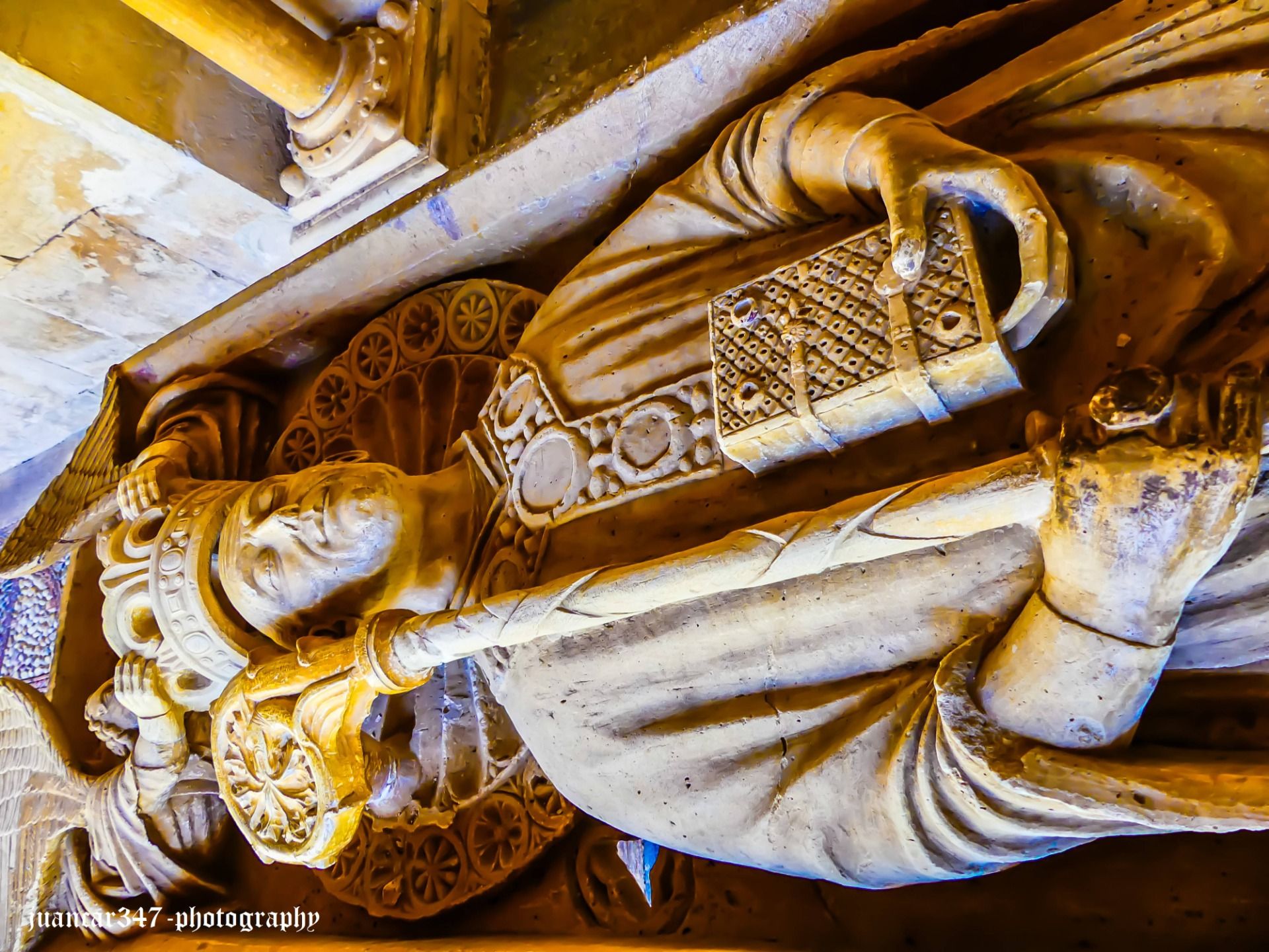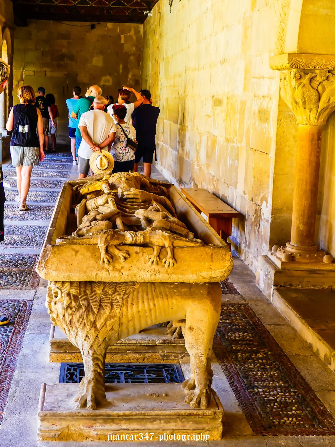 His surprising life, praised even by great medieval poets such as Gonzalo de Berceo, who, living a century later, used as a source the hagiography of a monk companion of Dominic, named Grimaldo, is possibly reflected in the symbolism inherent in that formidable tombstone preserved in the monastery cloister, where he is shown with the elements of every Master, especially the staff, whose handle, forming the stylized head of a coiled serpent, also reminds us of the supposed thaumaturgical acts of the Mystery schools of Antiquity.