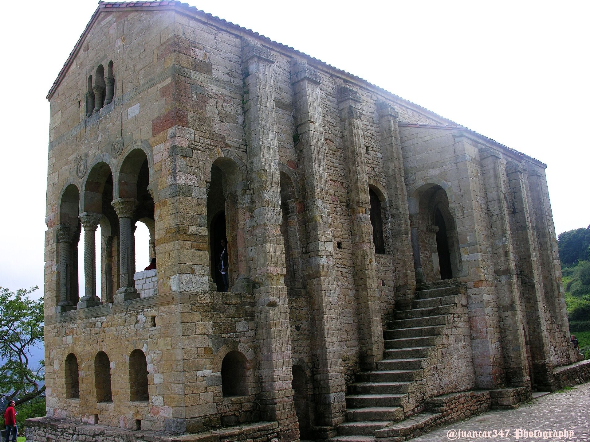 One of the most outstanding specimens, is this false temple of Santa María del Naranco, located on the top of the mountain that bears his name, strategically located place, from which you can see, almost completely, the stately city of Oviedo, where the cathedral of San Salvador was erected, shortly after the discovery of the supposed remains of the Apostle Santiago, and where the saying is still preserved: 'who goes to Santiago and not the Savior, visits the servant and forgets the Lord'.