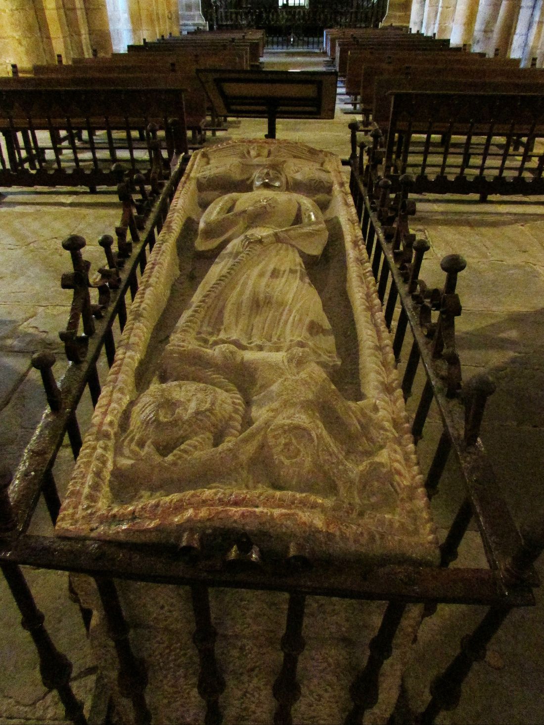 In fact, in front of the altar, there is the emblematic sepulcher that supposedly collects its mortal relics, in which you can see an image of the saint, with the demon martyred at her feet.