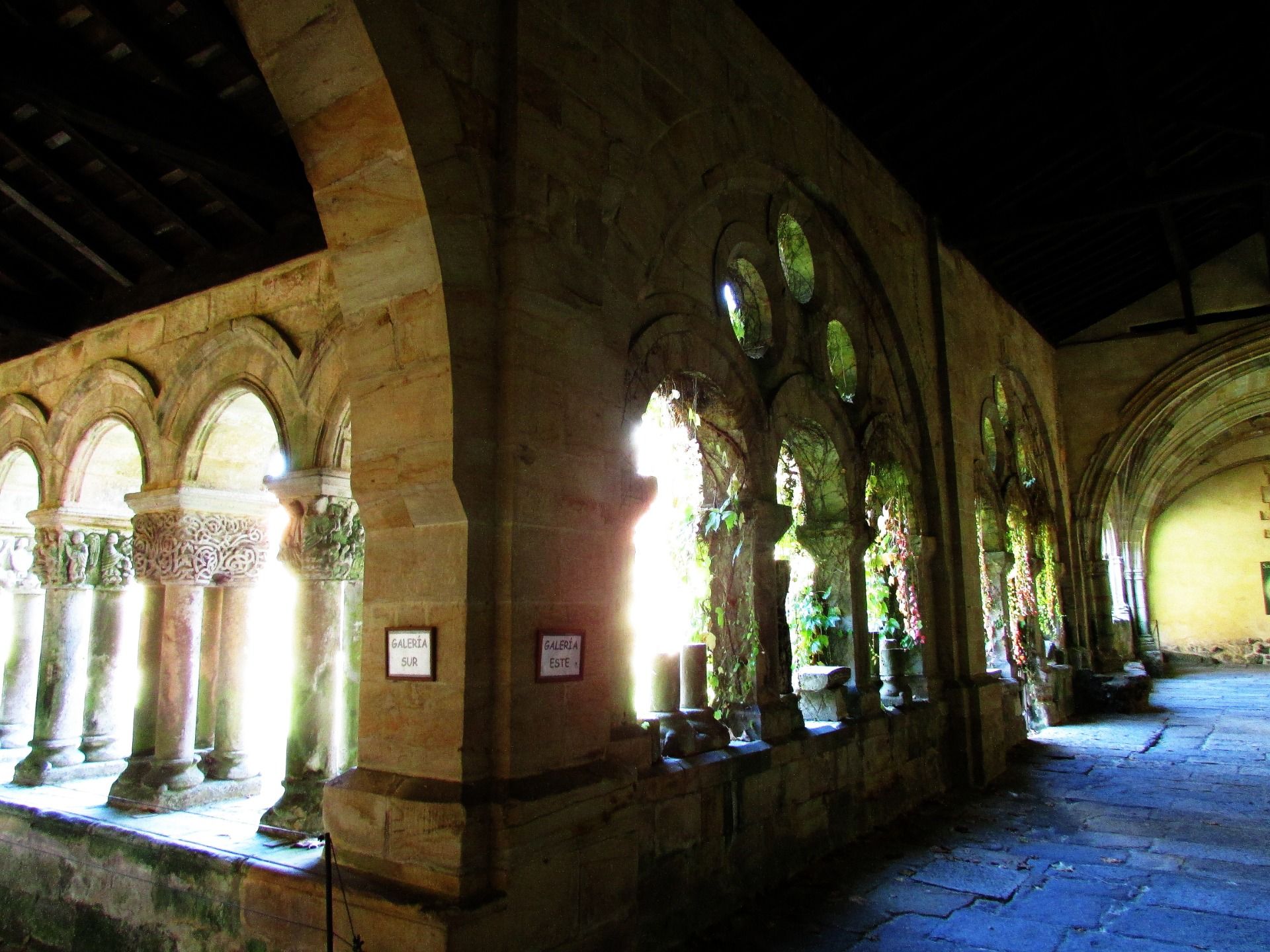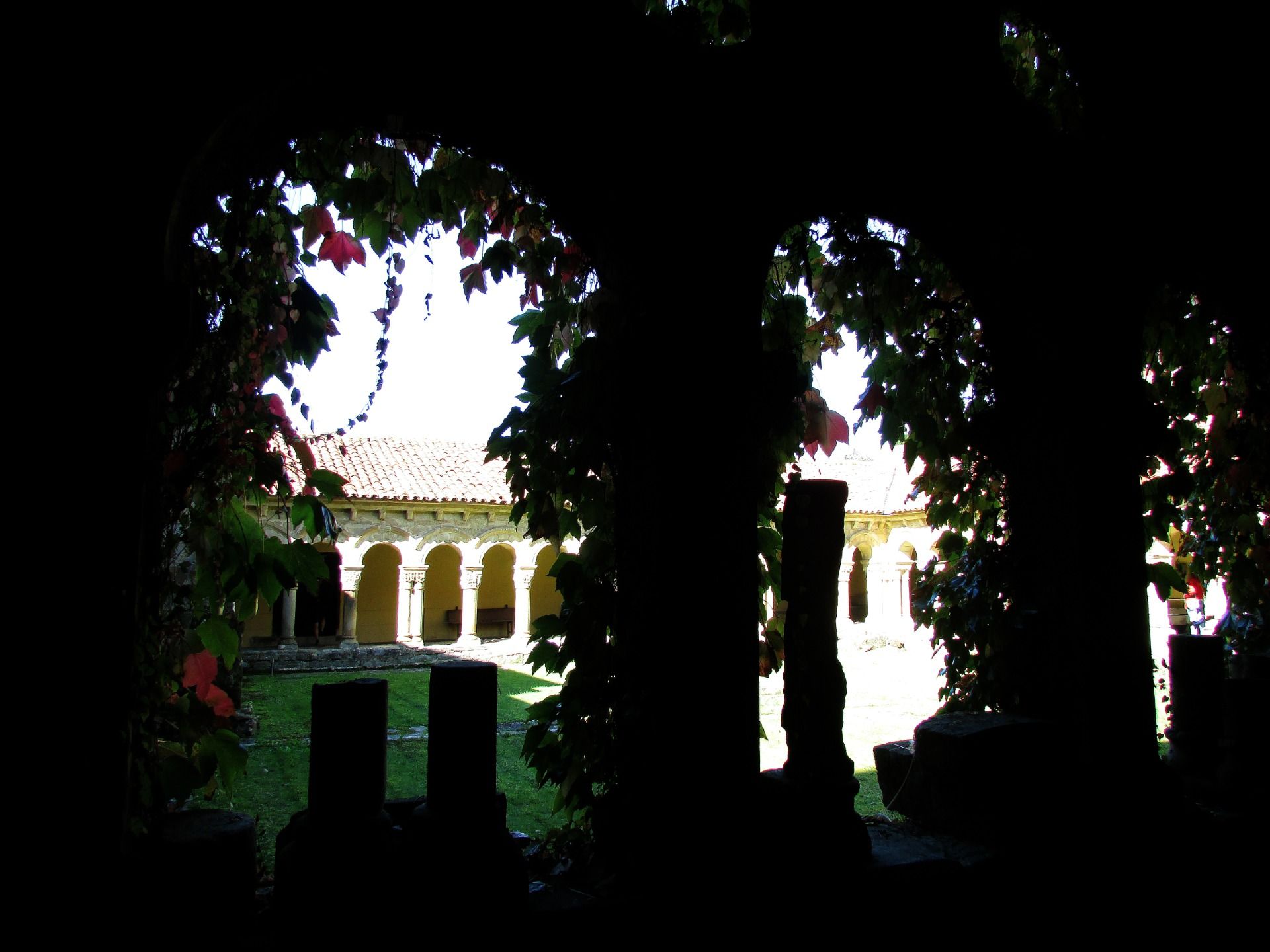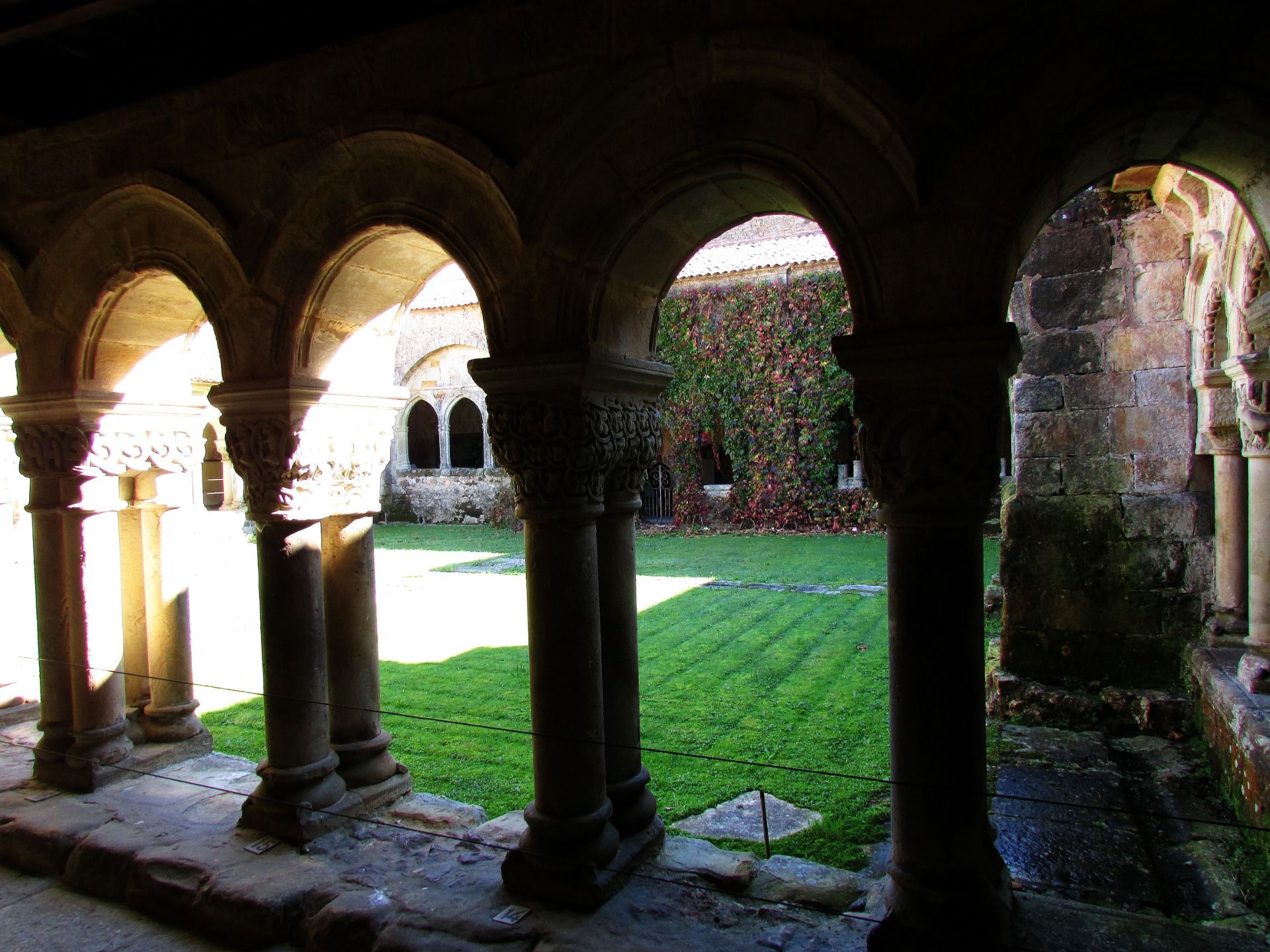Many of these canecillos, as I say, mutilated by the misogenous fury of modern bishops, form a small museum on the same side of the cloister, which still located in front of the south bottom, which must have been the warmest to receive continuously rays of the sun, also remains in shadows as a result of ivy and vines that rise indolently through its arches, to form a thick curtain, which, however, offers a remarkably melancholic and peculiar appearance.