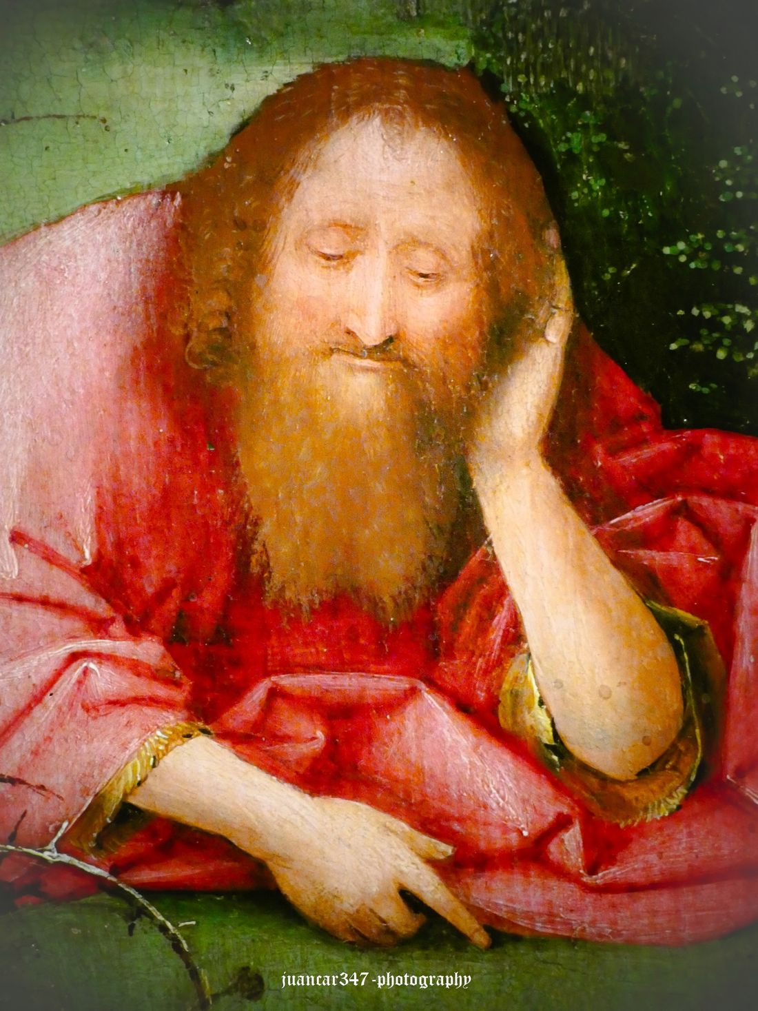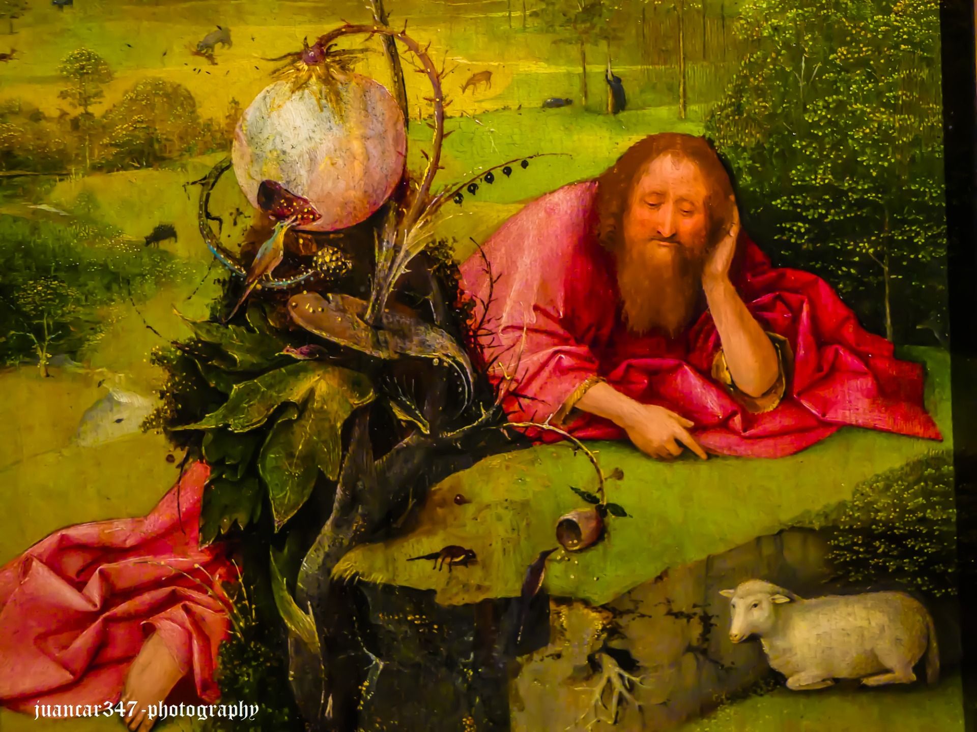 A jewel of the Flemish collection at the Lázaro Galdiano Museum in Madrid, this work, which has recently been the subject of some criticism regarding its authenticity—that is, its authorship by Bosch—supposedly depicts a dreamy John the Evangelist. Having also passed, like Dante, half his life, he lies peacefully on the grass, surrounded by plants and creatures that are certainly suspicious, such as the poppy, suggesting the prelude to that mystical journey that led him to write one of his most cryptic and perplexing works: the Apocalypse.