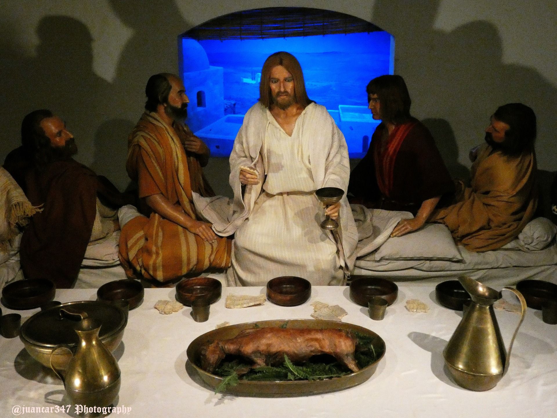 The Papacy, located with all folly in front of the intrinsic simplicity of the sacrament presided by a arrogant Jesus Christ, who seems to look, with eternal melancholy, the Passover Lamb who has to predict his tragic destiny on the cross.