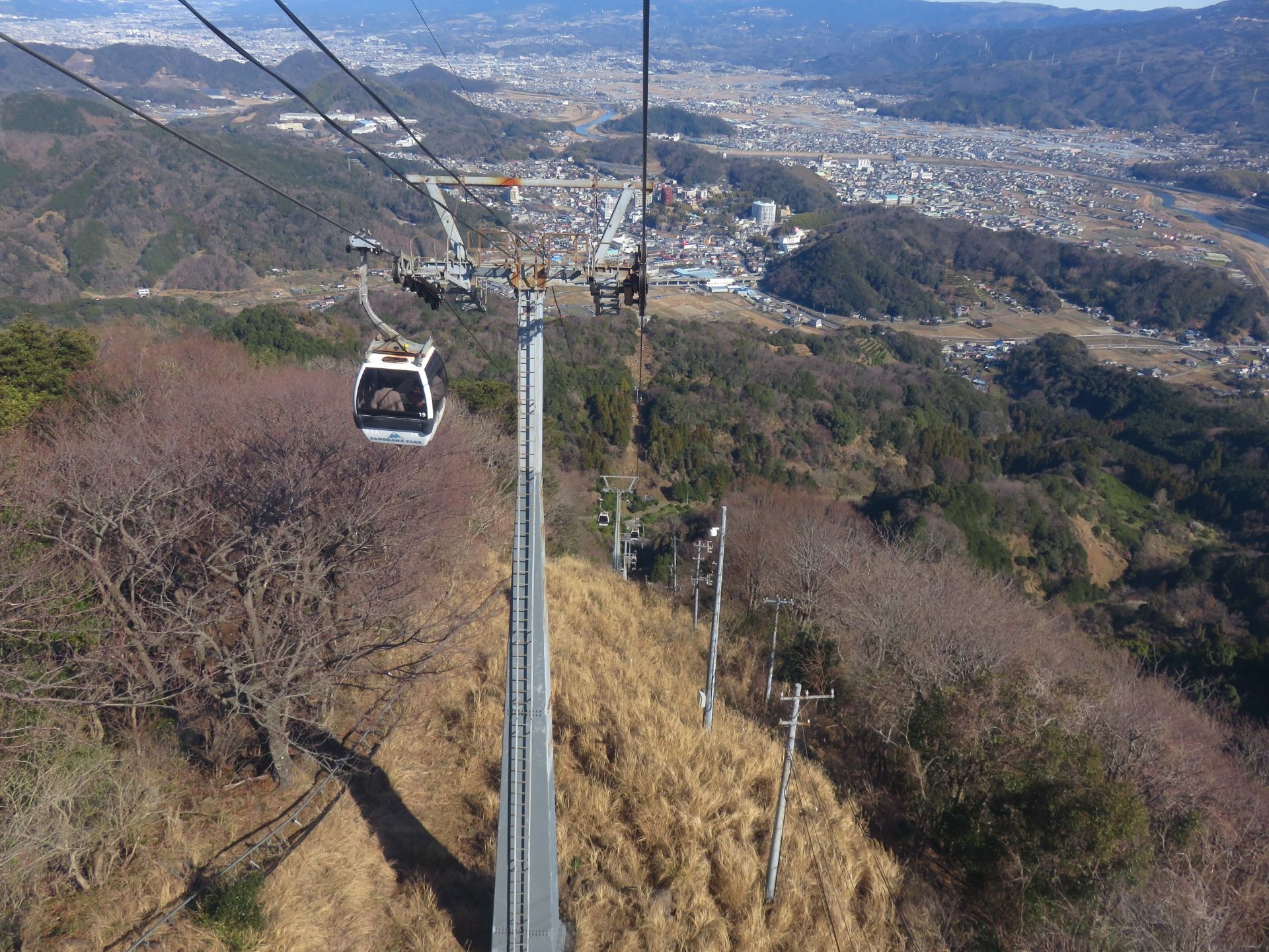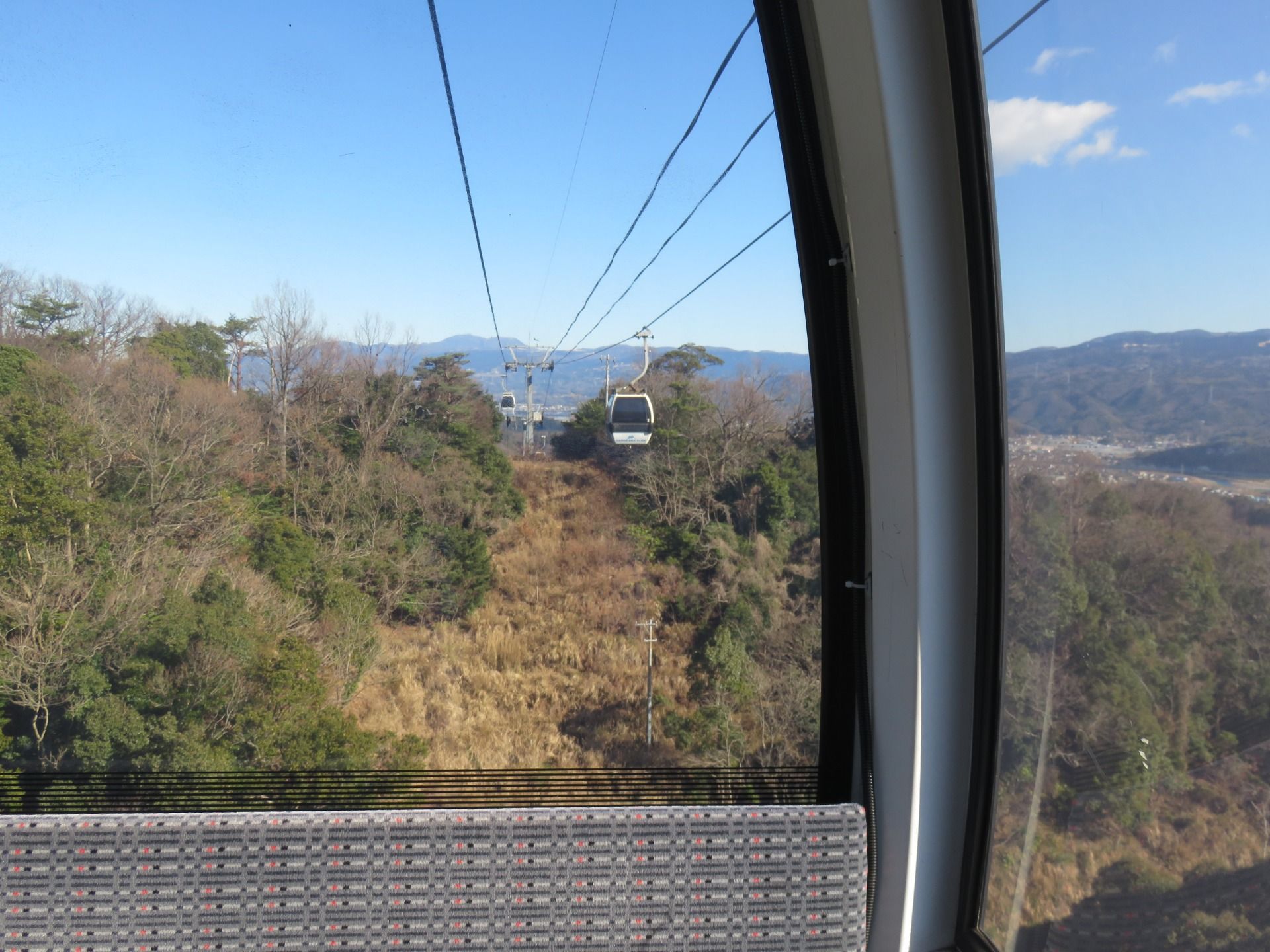 First we went to the ropeway which was only about a ten minute walk from our hotel. The area is called, Izunokuni Panorama Park. It was pretty expensive at 2000 yen for a round trip, we got two hundred yen of our tickets from using a discount coupon from our hotel, but I thought that it was still expensive.