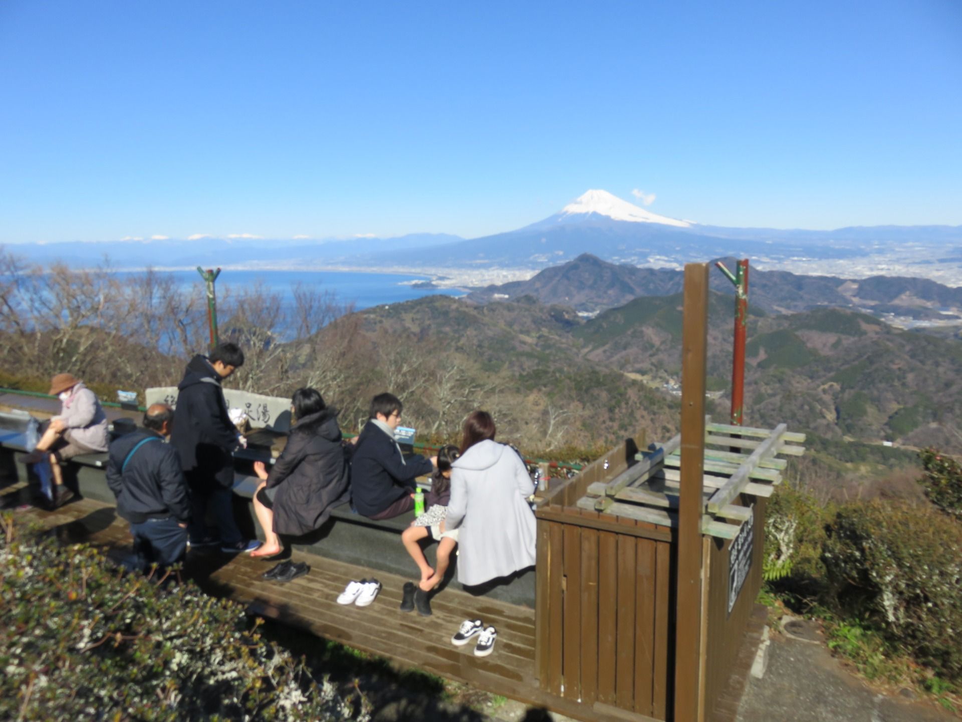 There's a small shrine, a restaurant and a foot hot spring on the peak also.