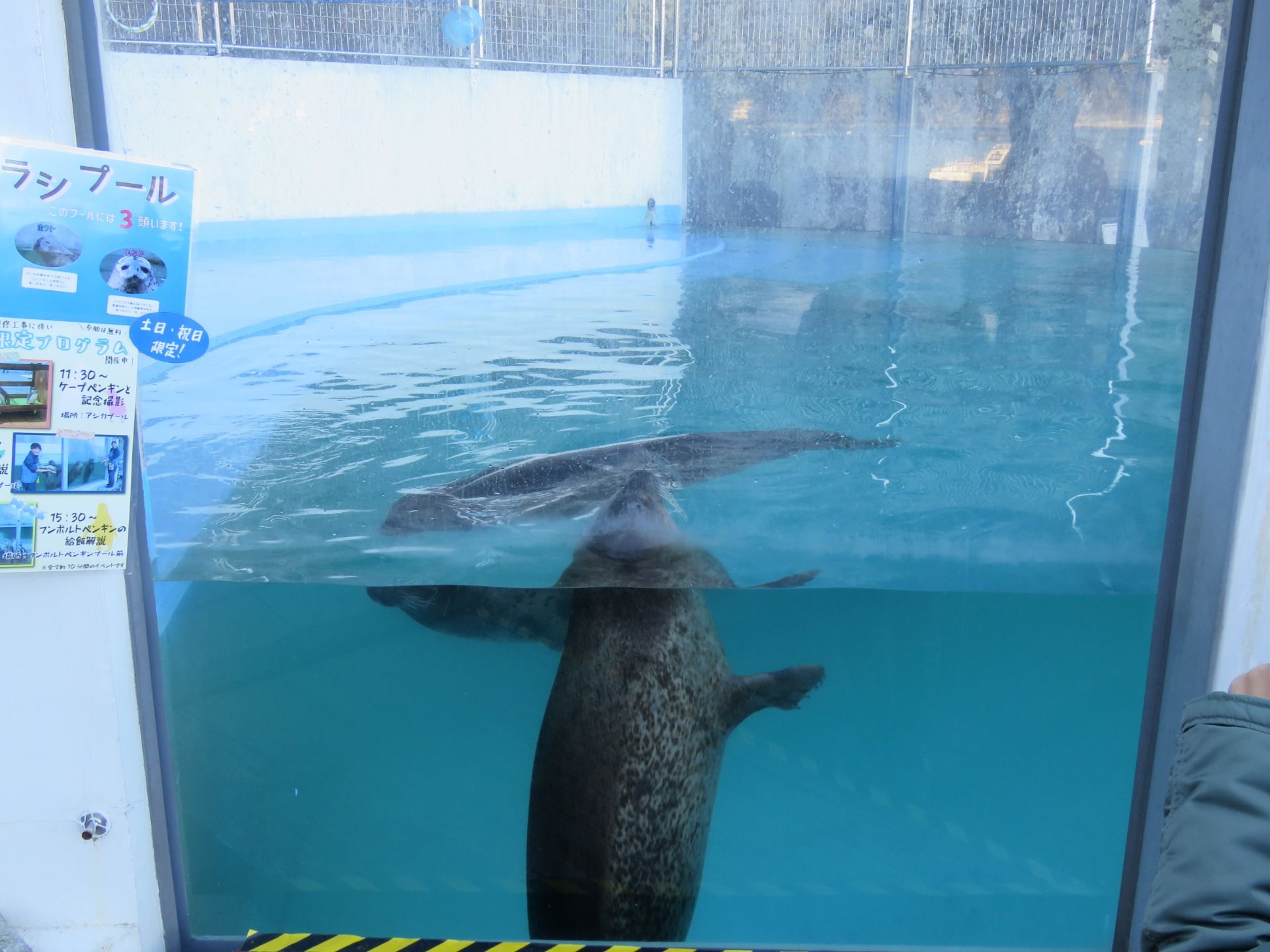 Outside, they have penguins and seals, but the dolphins are gone, their area is being repaired.