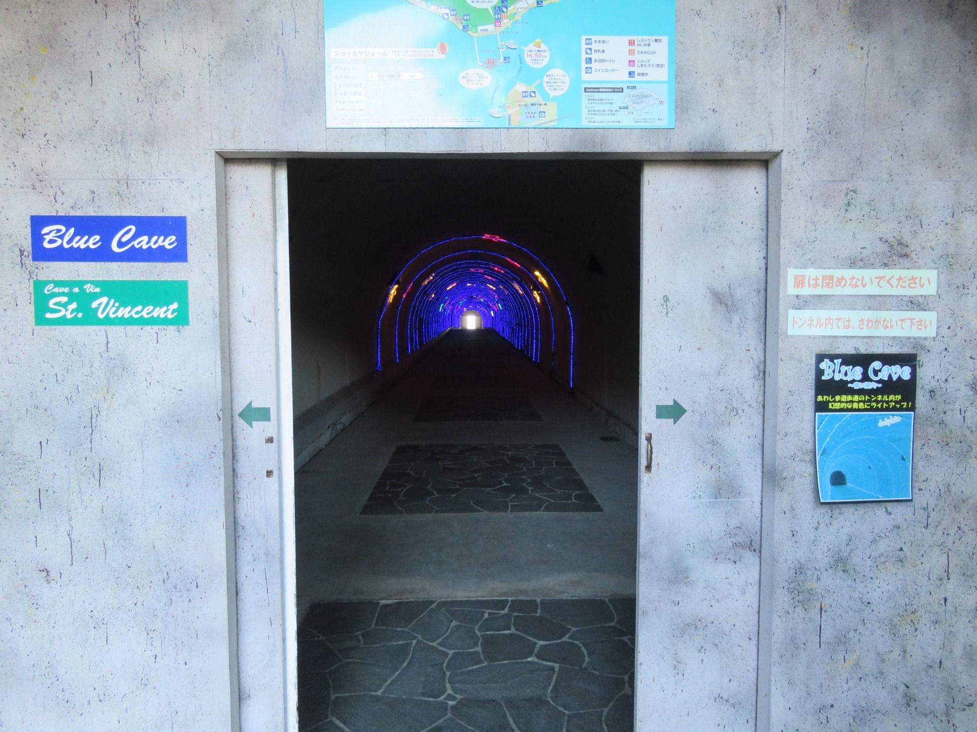 We decided to walk round the island after seeing the aquarium, we walked anti-clockwise. The walk is pleasant and doesn't take too long, less than an hour. The path takes you past the big hotel, where we saw the dolphins being kept in one of the less important swimming pools there. The path then goes through a tunnel which is lit up and was another location for the anime.