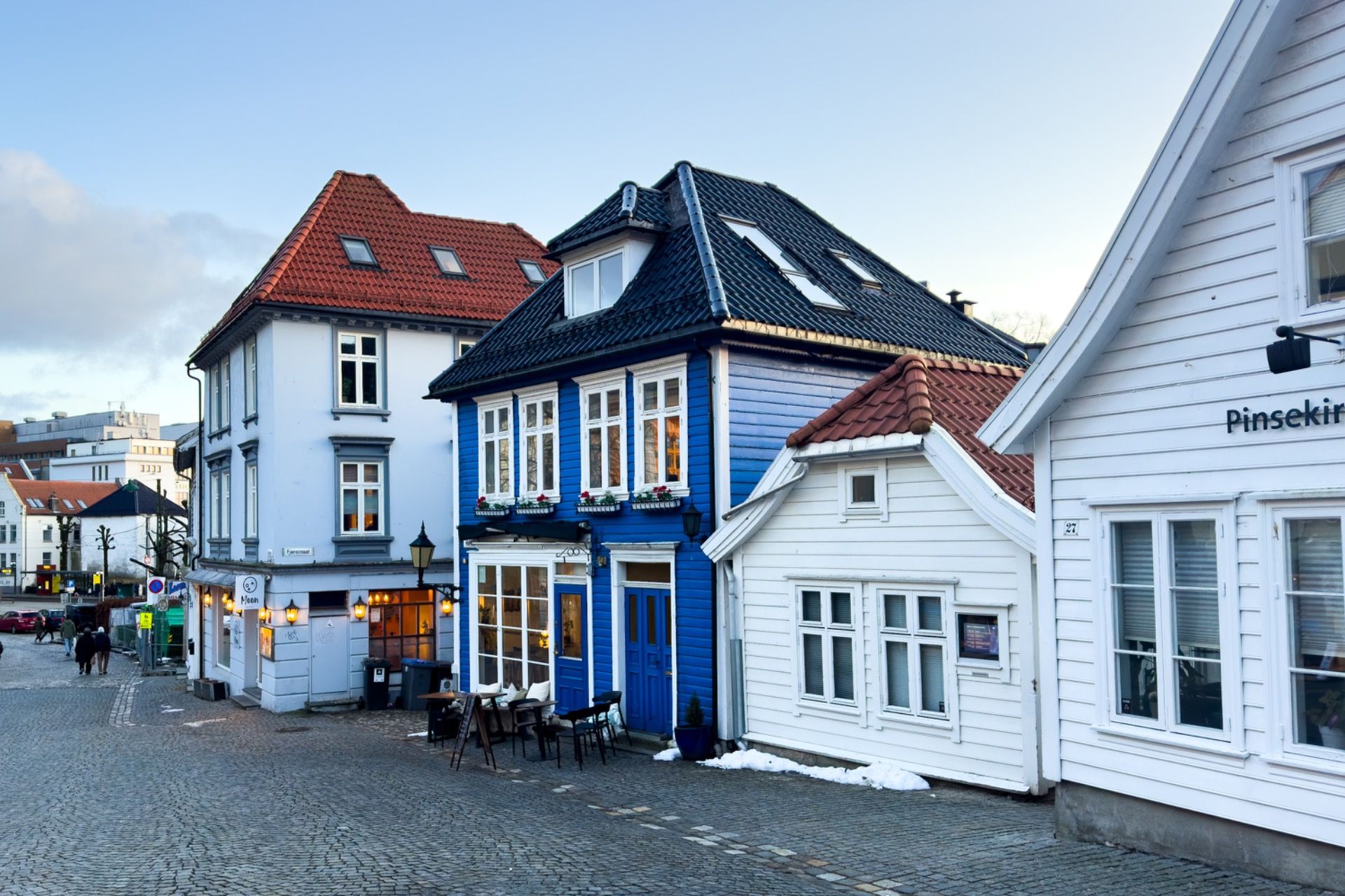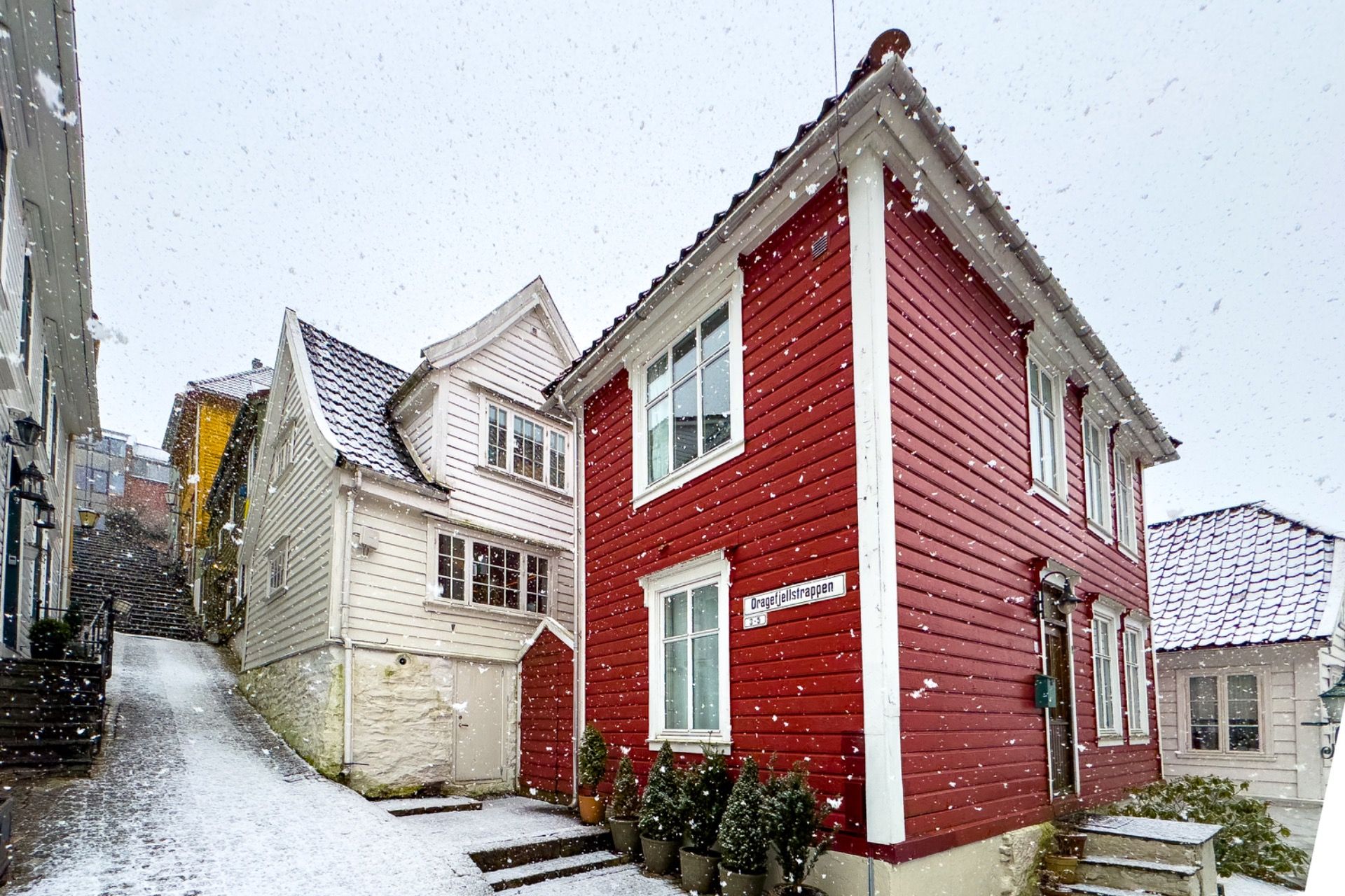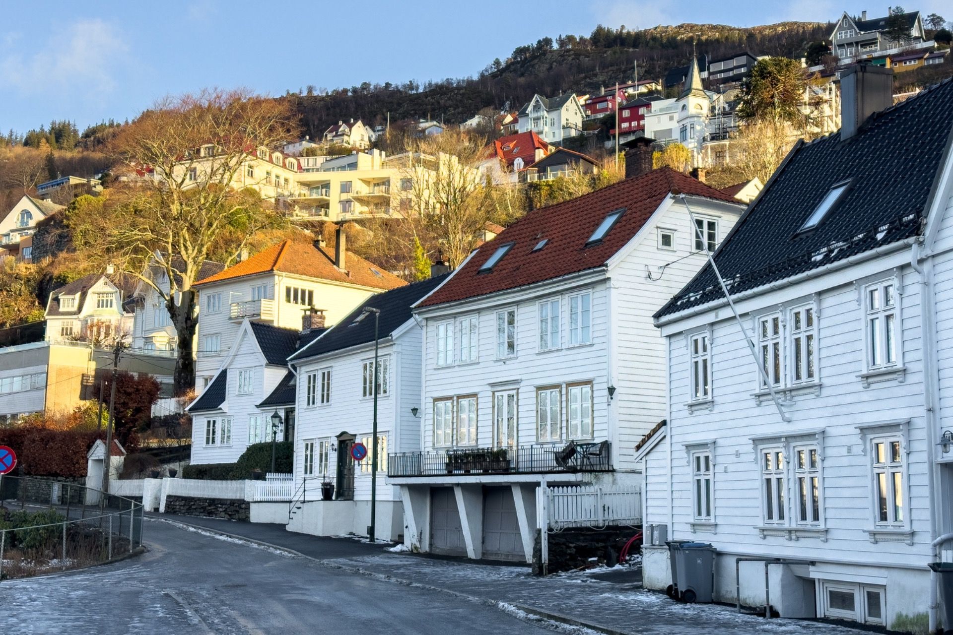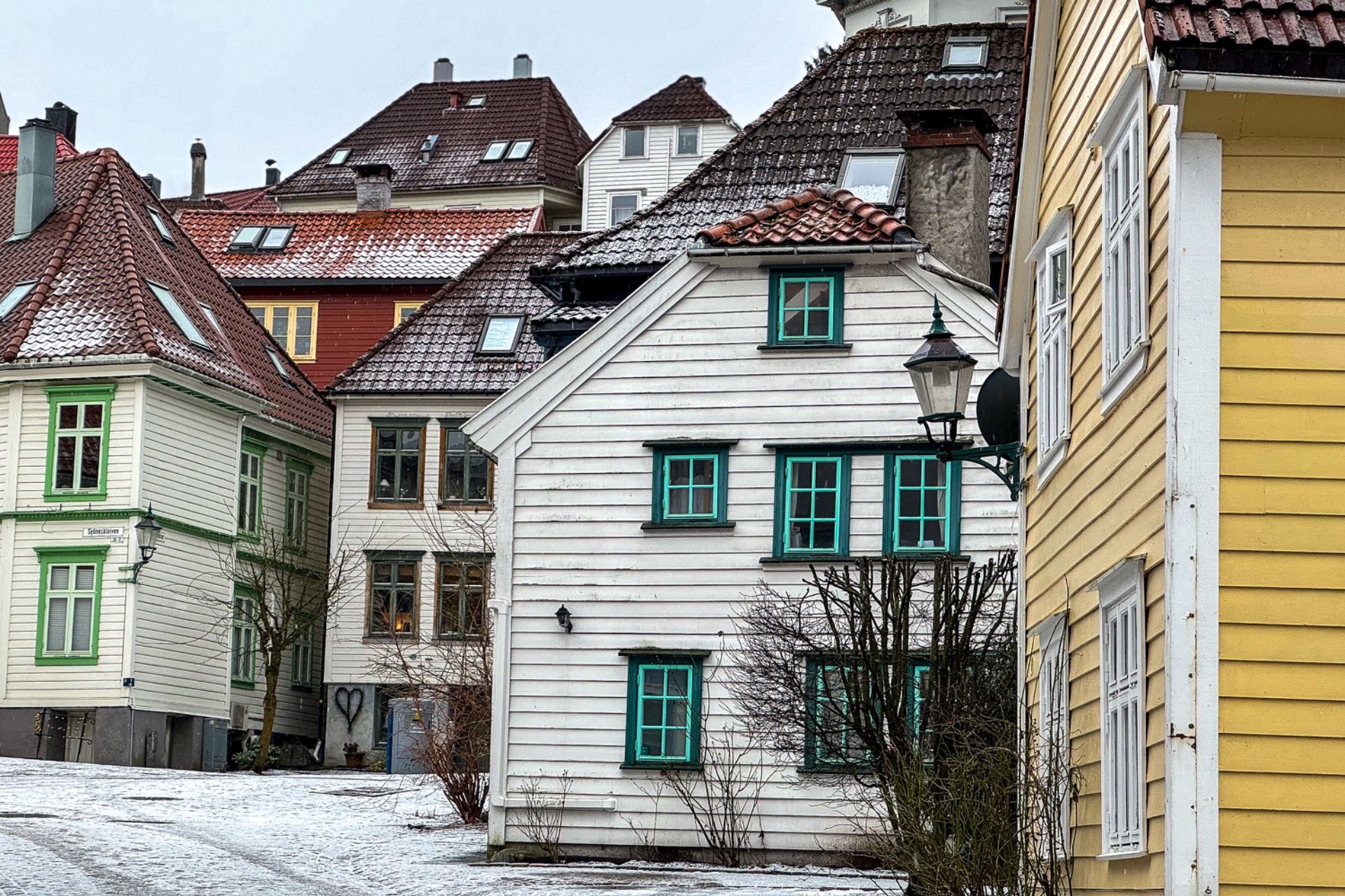 Z turystycznego punktu widzenia najciekawszą cechą architektury Bergen są domy z tradycyjnymi norweskimi fasadami, które są wykończone drewnianymi deskami w przeróżnych kolorach. Od białych, przez intensywnie czerwone po bardziej chłodne zielone czy niebieskie. Najpopularniejsze tego typu budynki znajdują się w dzielnicy Bryggen, która przyciąga najwięcej turystów ze względu na drewniane i kamienne kamienice rozciągające się wzdłuż lini brzegu. Dla mnie fascynujące było także krążenie po wąskich uliczkach między domostwami usytuowanymi poza centrum miasta i szczerze mówiąc, to właśnie w tych urokliwych alejkach odkrywanych w spokoju i poza tłumem czułem się najlepiej i to one zrobiły na mnie największe wrażenie.