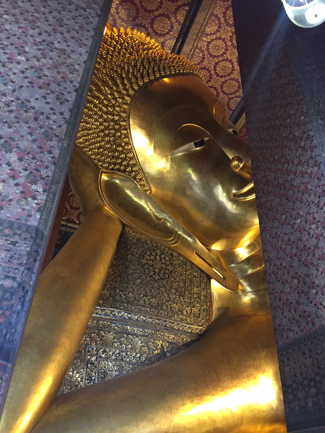The main attraction today is the famous 46 meter long and 15 meter high gold plated reclining Buddha statue (you can see it on the first two pictures). In fact, it was so big that it was hardly possible to get it on the photo. This statue is actually even more impressive than it looks on the pictures. It is almost completely gold-plated and radiates a lot of elegance and grace, but most of all it radiates calmness.