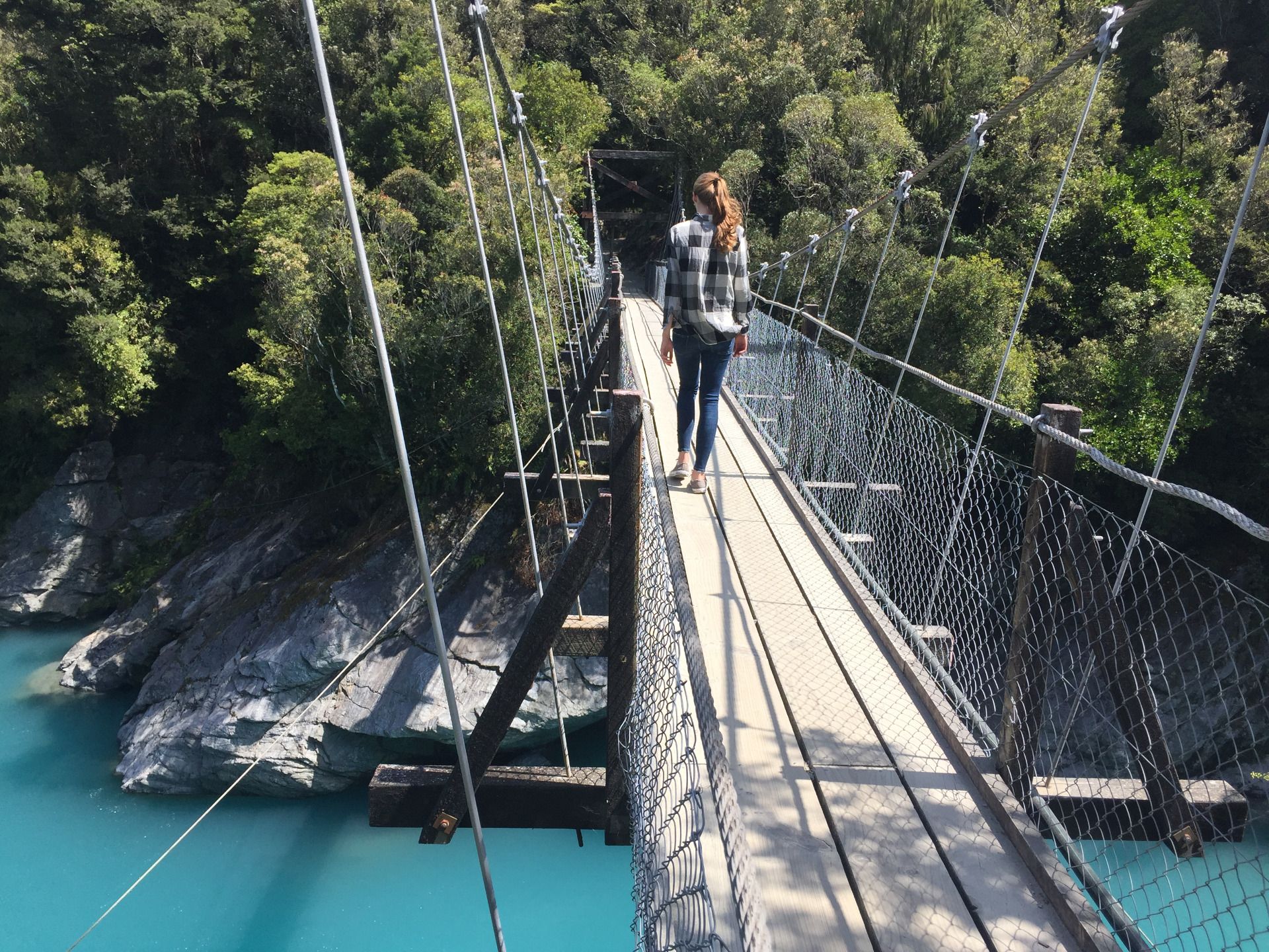 After seeing the entire east coast and a small part of the west coast of australia, we moved on to new zealand. We were especially looking forward to australia's little neighbors and the things and people who distinguish New Zealand from Australia. Hokitika Gorge was one of New Zealand's most beautiful places we saw. It's been a while since we visited this place, but it seems like it was yesterday. From afar we have seen the incredible turquoise water. You could not see through it like in Australia, it was just deep turquoise, but not clear. So we made our way to Hokitika Gorge. The Hokitika Gorge Walk is about 30 minutes away from Hokitika. The drive there is well signposted. When we arrived in New Zealand, we directly borrowed a small rental car. We found out later that it was a very good decision. In New Zealand it is almost impossible to visit the island without your own car. We drove to Hokitika Gorge by car, it was about one hour from our accommodation. A kind of parking lot was in front of the Hokitika Gorge walk. It takes about twenty minutes to arrive at the famous suspension bridge. Already on the way there are one or the other opportunity to shoot nice photos, because you can also look at the suspension bridge. So that you have an idea of the view, I have provided you below a picture of such a viewing platform.