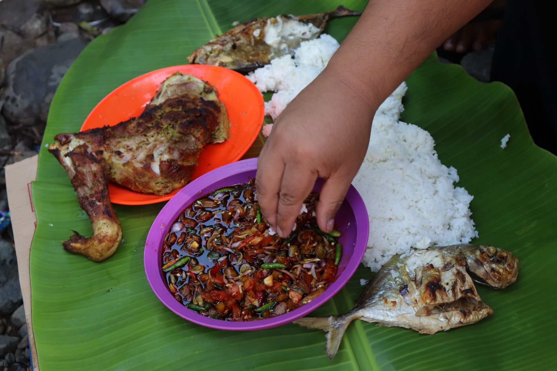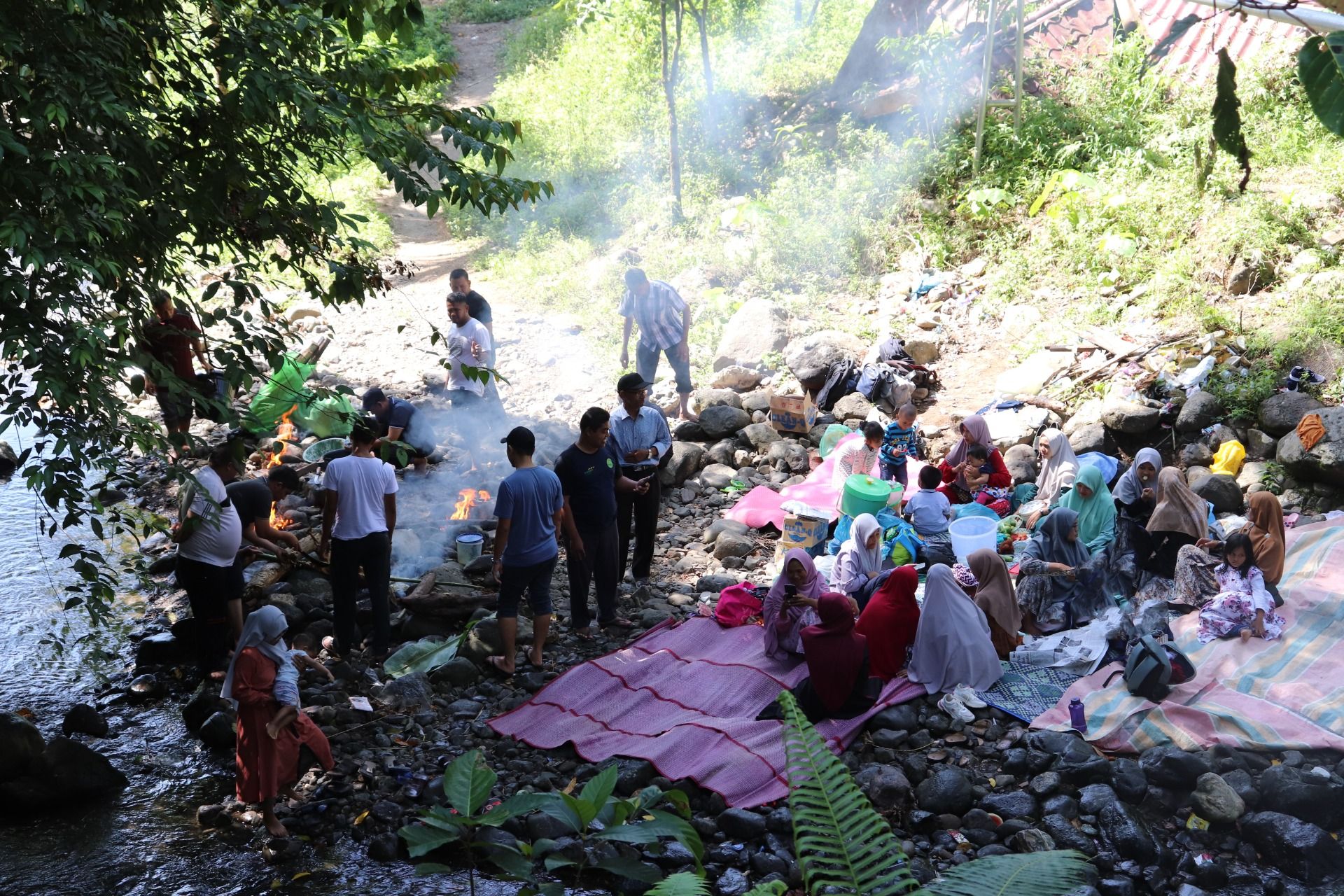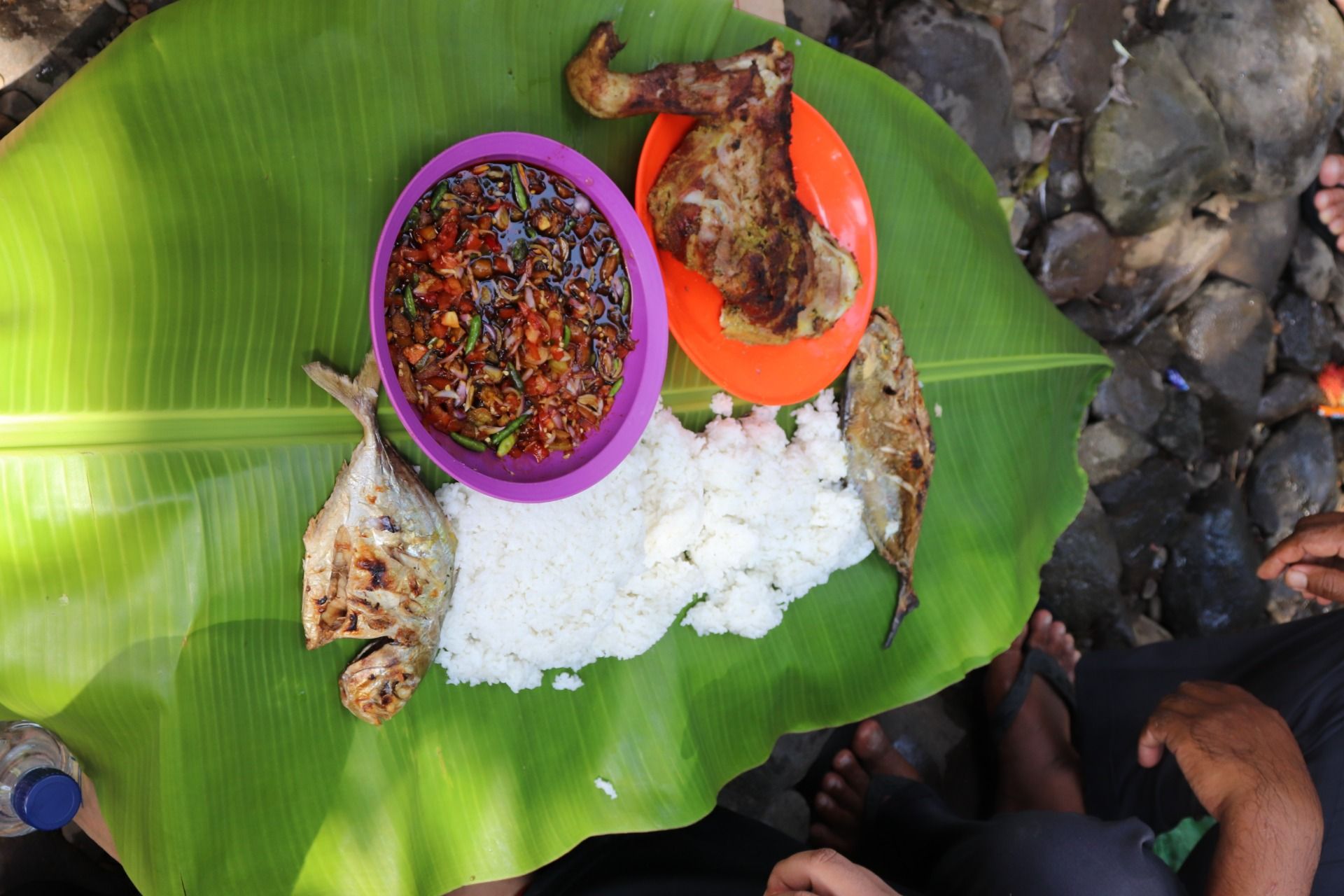 There is no entrance ticket, please enjoy as much as you want to play here, just unite with nature. That's what I know right now. We prepare grilled fish and grilled goats here, all cooked naturally, even dishes we use only banana leaves. Very enjoyable. Indeed, a natural pool in a waterfall is not large, but I think it is enough to sink the head into the water, only children who can make the leap into the water, while adults can not because it is shallow. But that does not reduce our current excitement. When cold water touches our skin especially now the weather is hot, it will give a great sensation. The mind becomes more open, fatigue disappears and the burden out there seems to disappear while here.