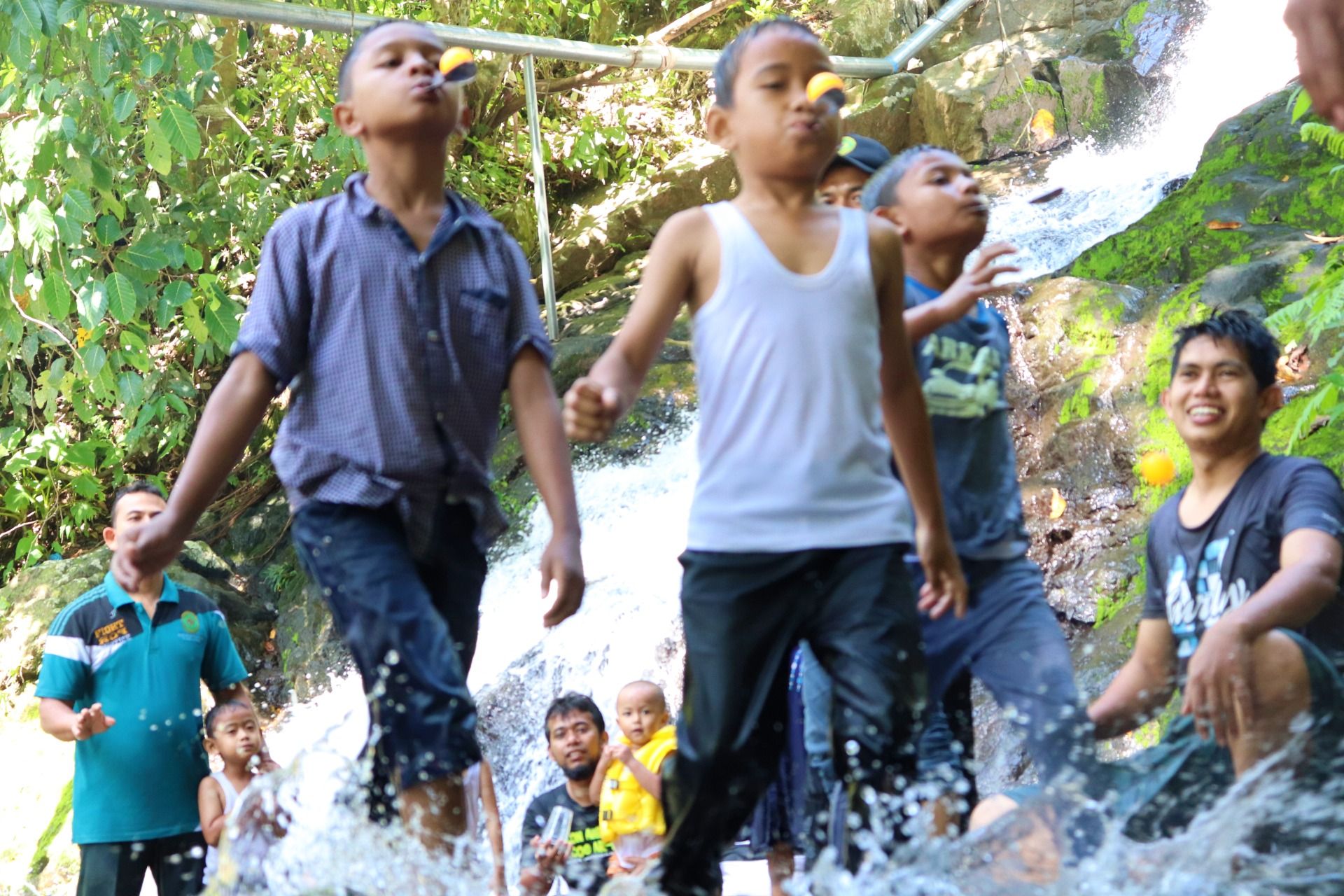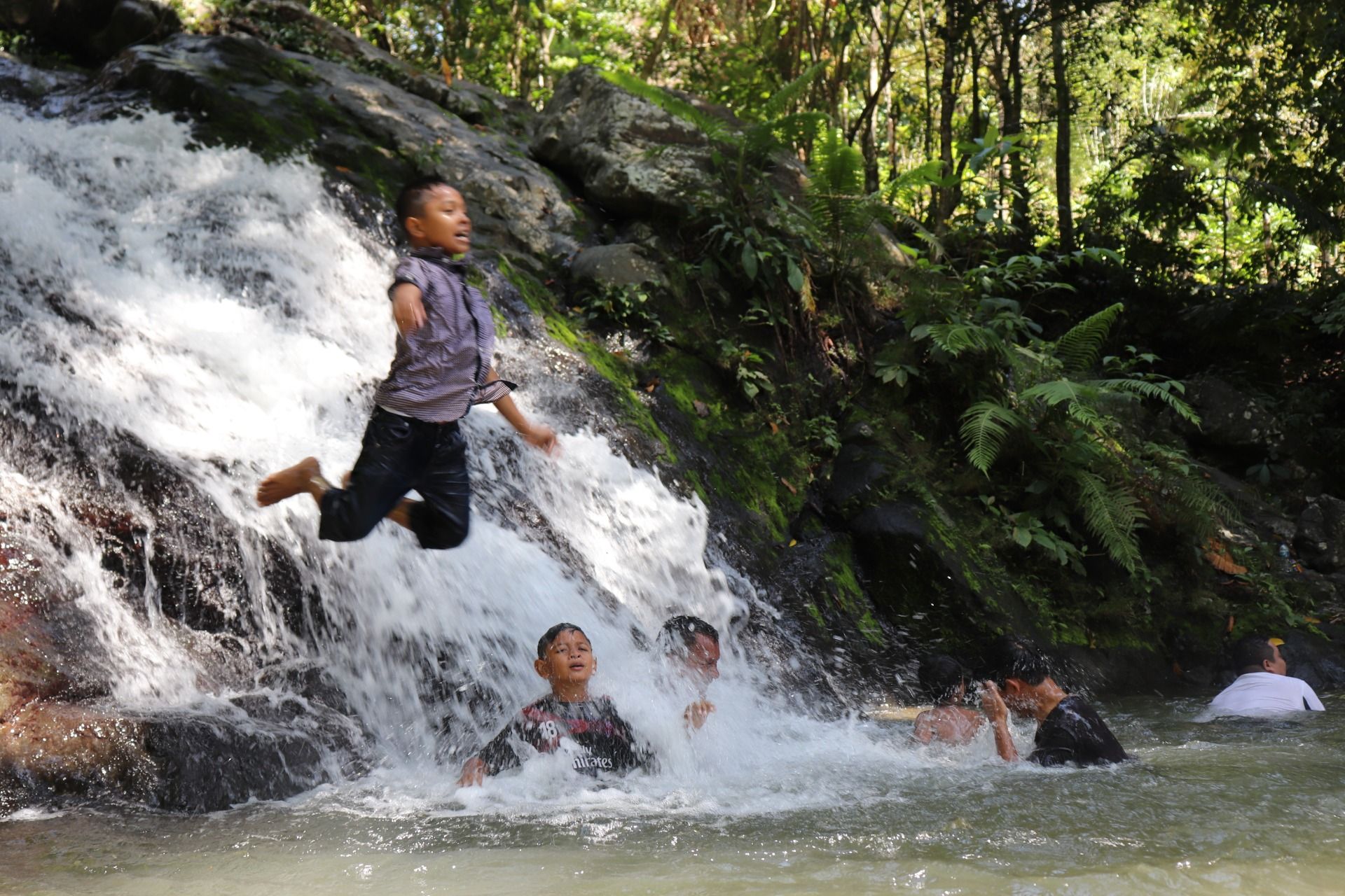 What is special about this place is it is very cool, the sound of the waterfall, the birds singing and far from vehicle pollution. A cold waterfall does not make us afraid, instead, we are like children who have just gotten toys while playing in this waterfall. For me, this place gave a lot of inspiration and my camera always stands by capturing every moment of nature and friendship. Take a look at some play games we do here.