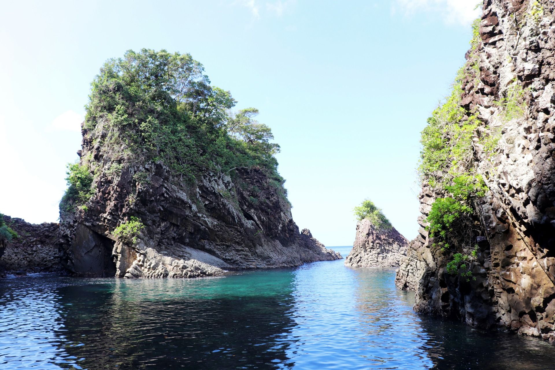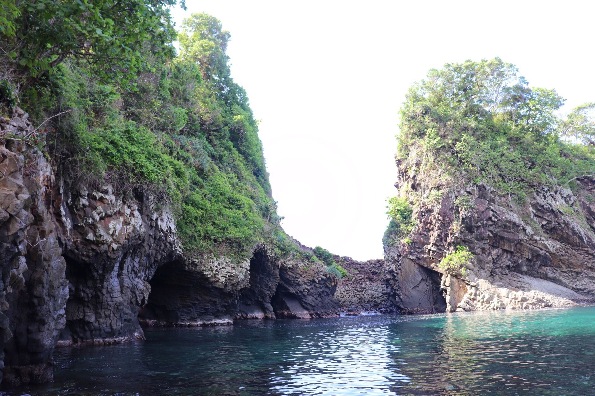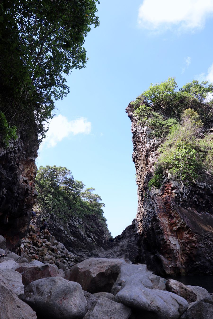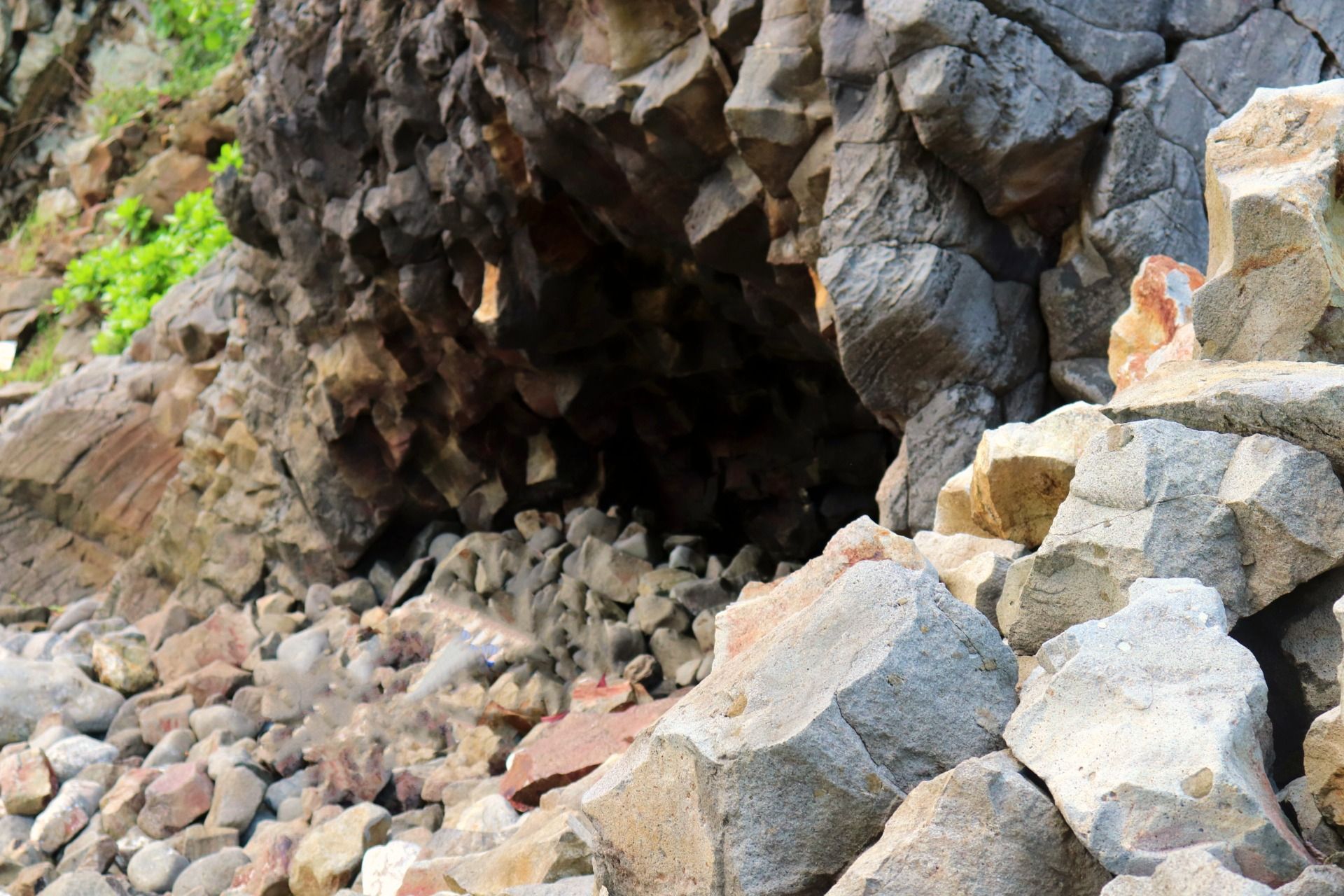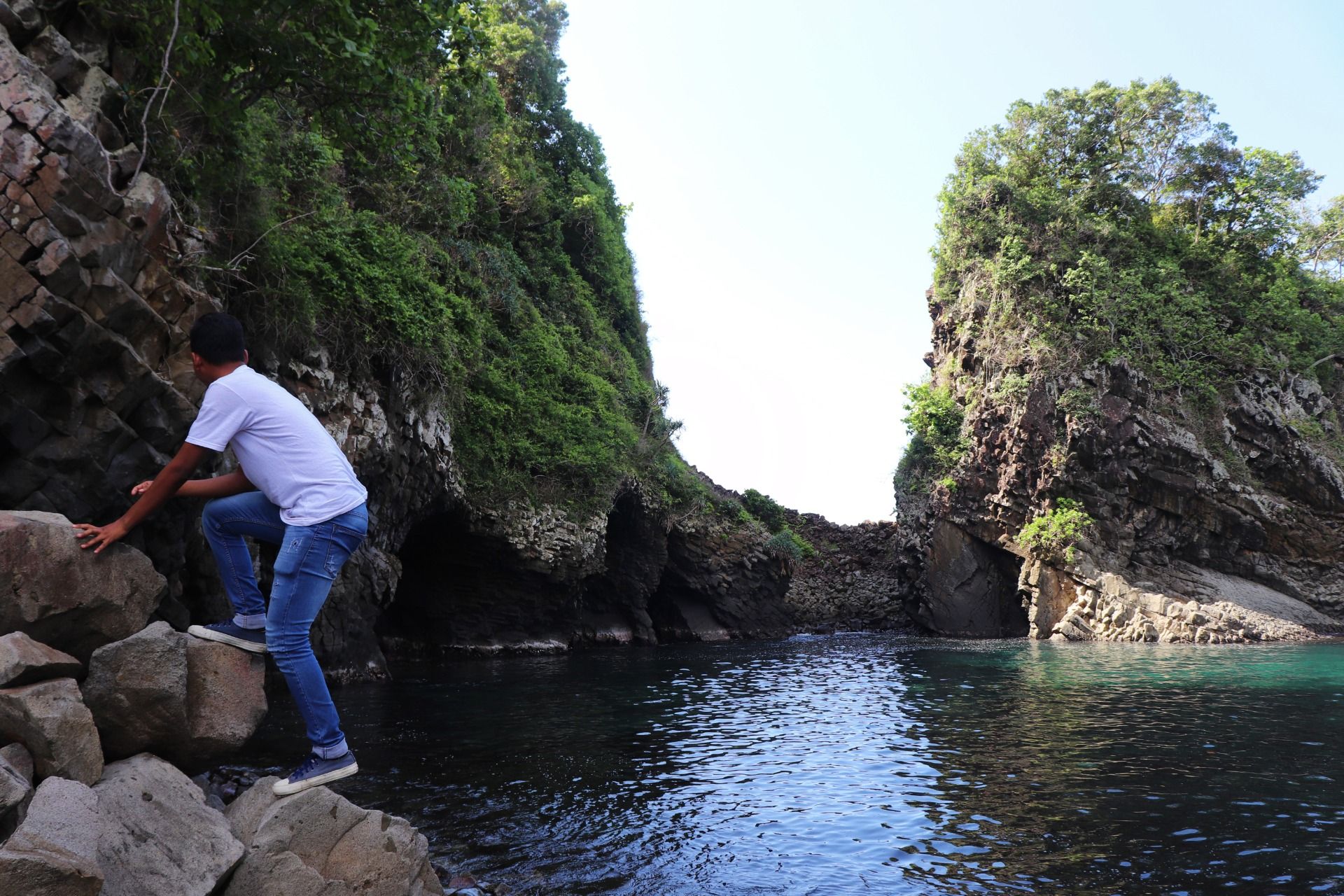 It takes about 30 minutes to walk on the rock, then we can see the first cave, this cave has a smaller mouth than the others, if you look at this photo, the mouth of the cave looks very dark from the outside, it's clearly a sign how deep the cave. I step close to the mouth of this cave, but I do not see anything. So, I just take pictures again here.