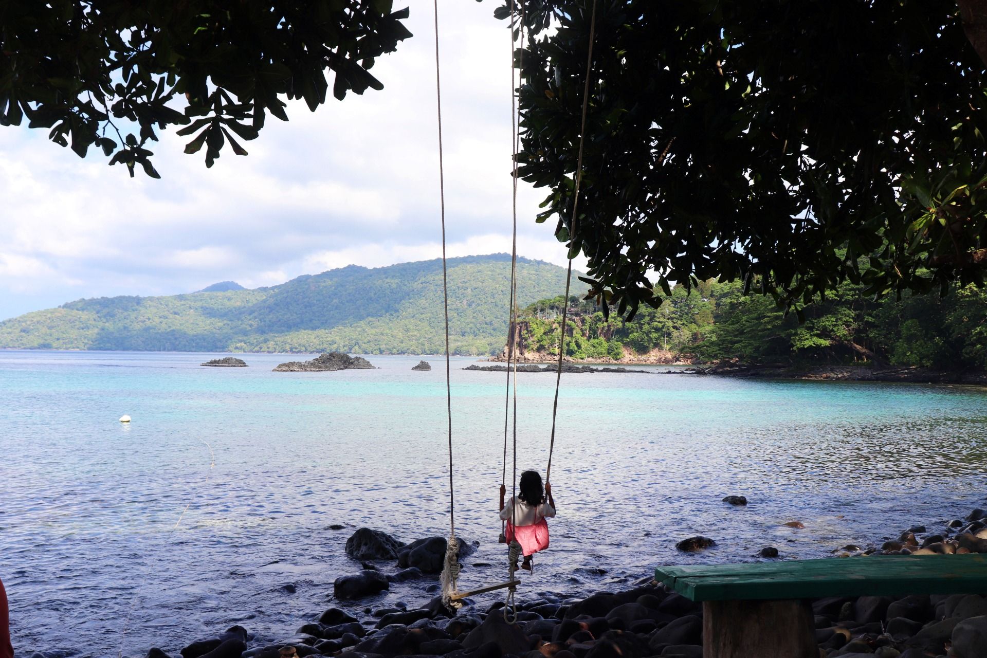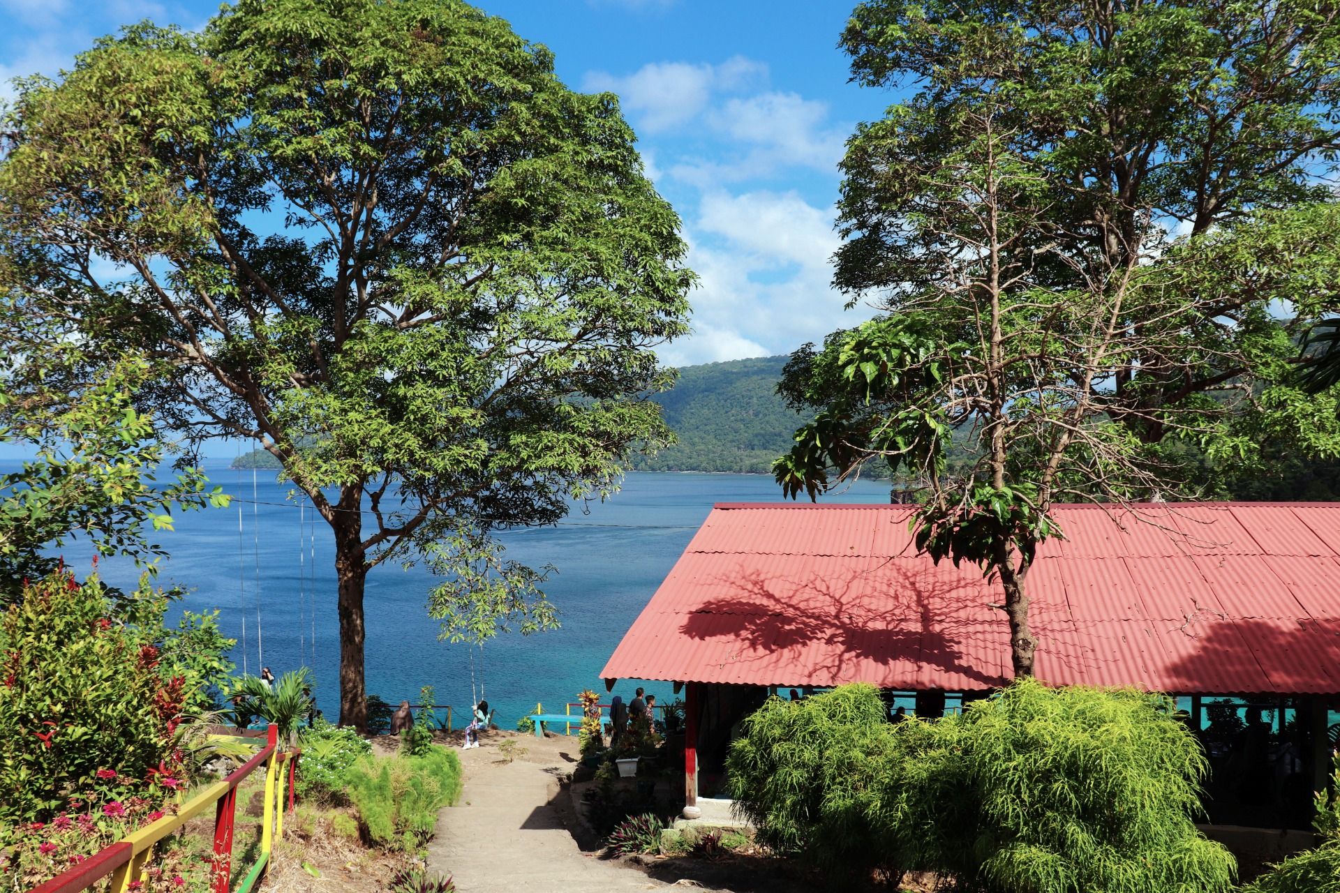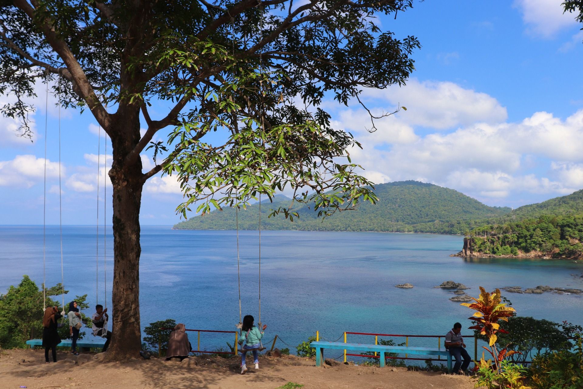 After satisfied see the butterfly, then let's see the true beauty of nature. Yes, here it is the scenes that I captured in my camera. Starting with a good view from the top of the hill, where the seawater looks blue, there is a small boat there and you can see how beautiful the combination of mountains, dense forests, blue sea and stand rocks inside the sea. Here you can also play swing and if in the photo you seem to be flying over the sea. Amazing.