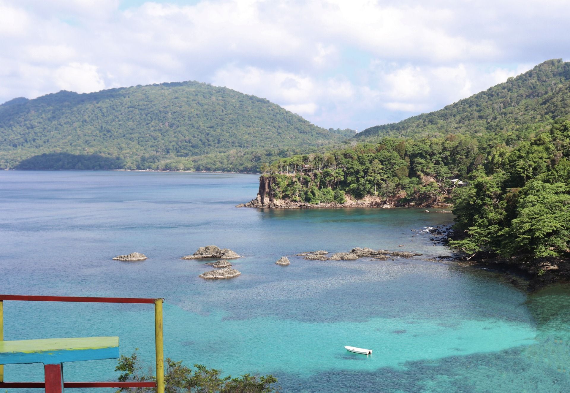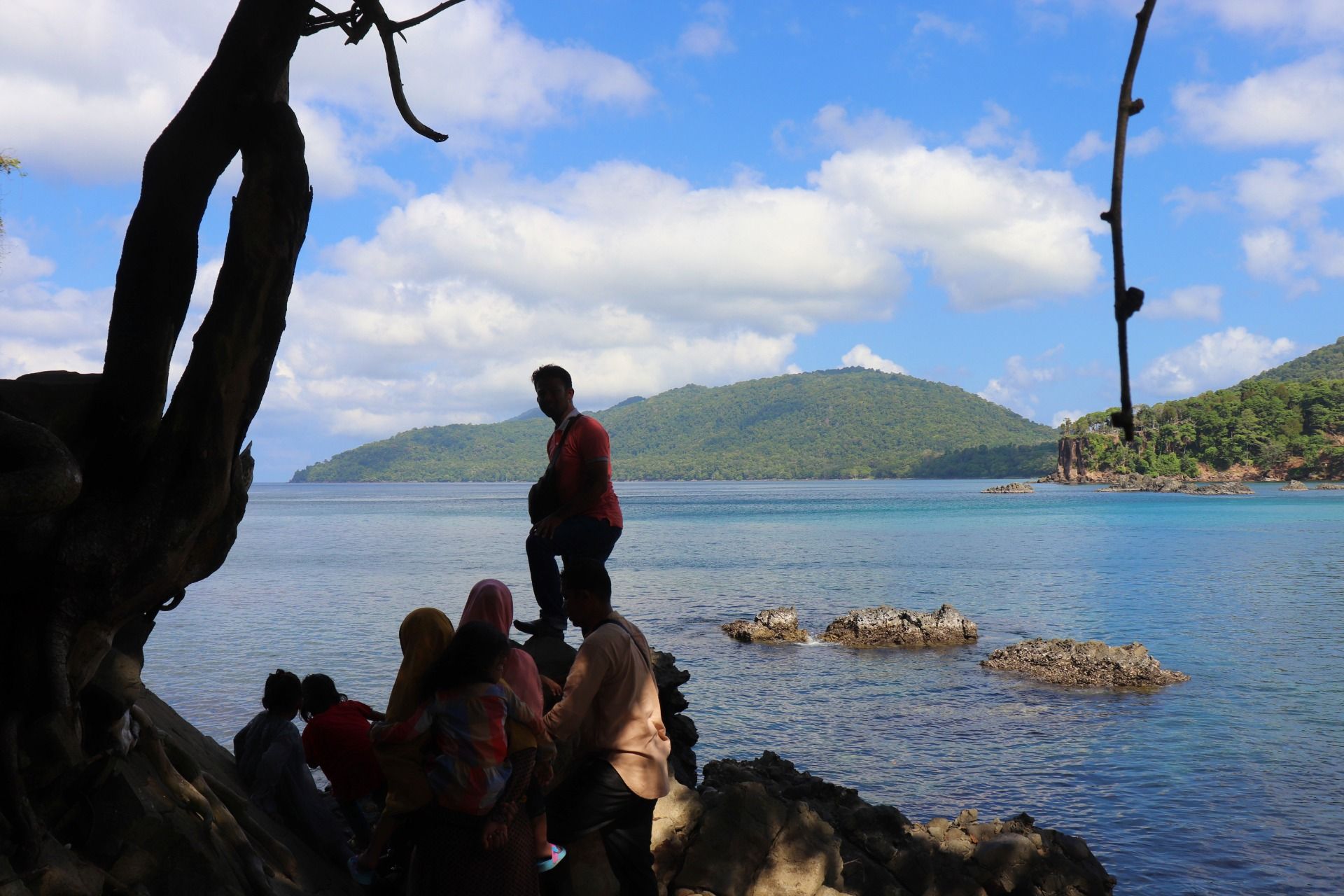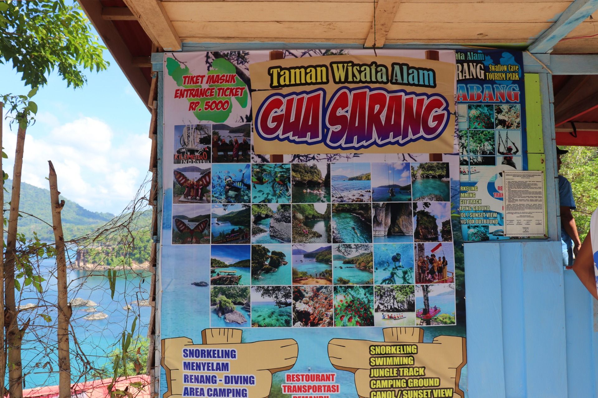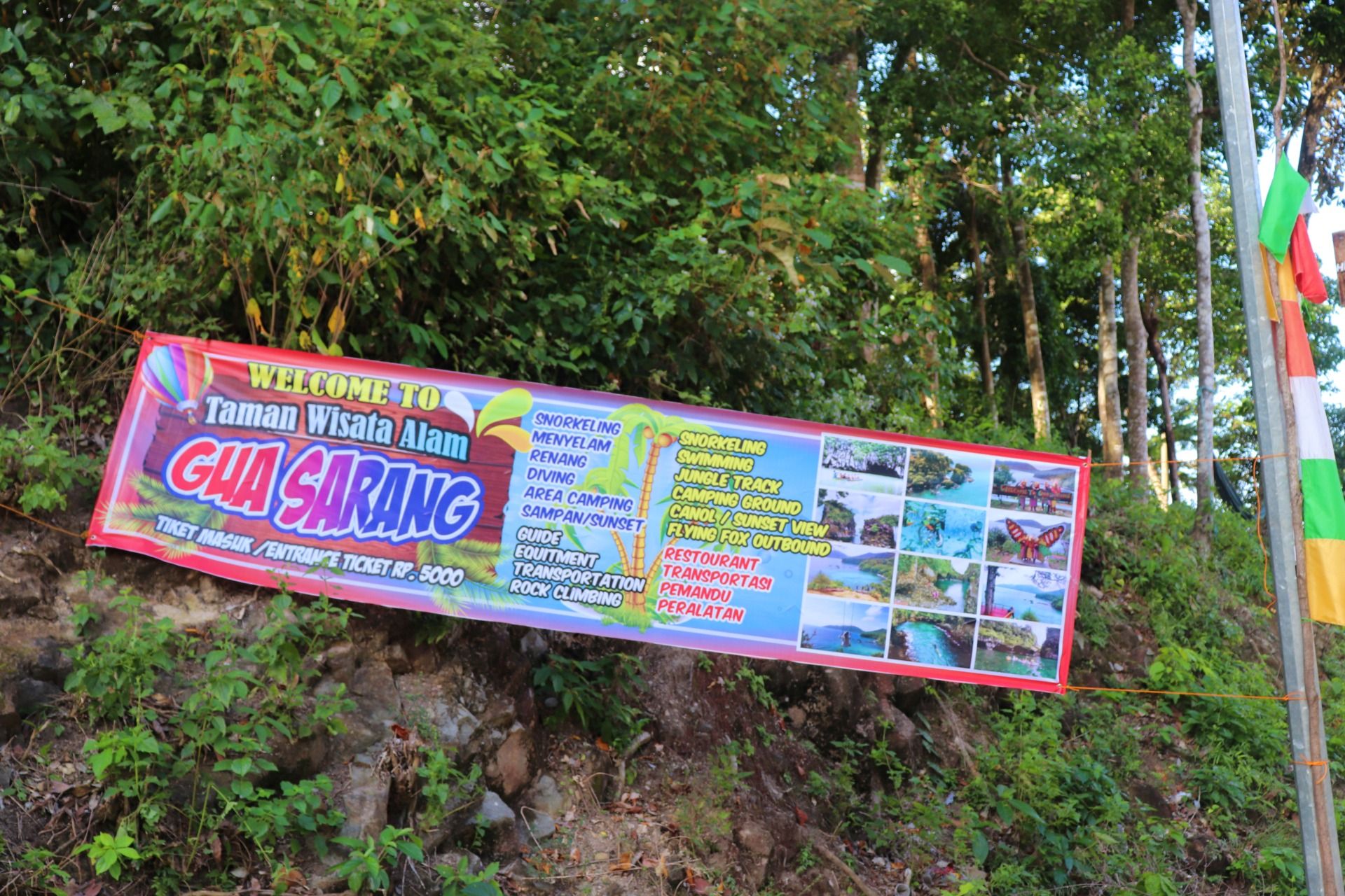 After satisfied see the butterfly, then let's see the true beauty of nature. Yes, here it is the scenes that I captured in my camera. Starting with a good view from the top of the hill, where the seawater looks blue, there is a small boat there and you can see how beautiful the combination of mountains, dense forests, blue sea and stand rocks inside the sea. Here you can also play swing and if in the photo you seem to be flying over the sea. Amazing.