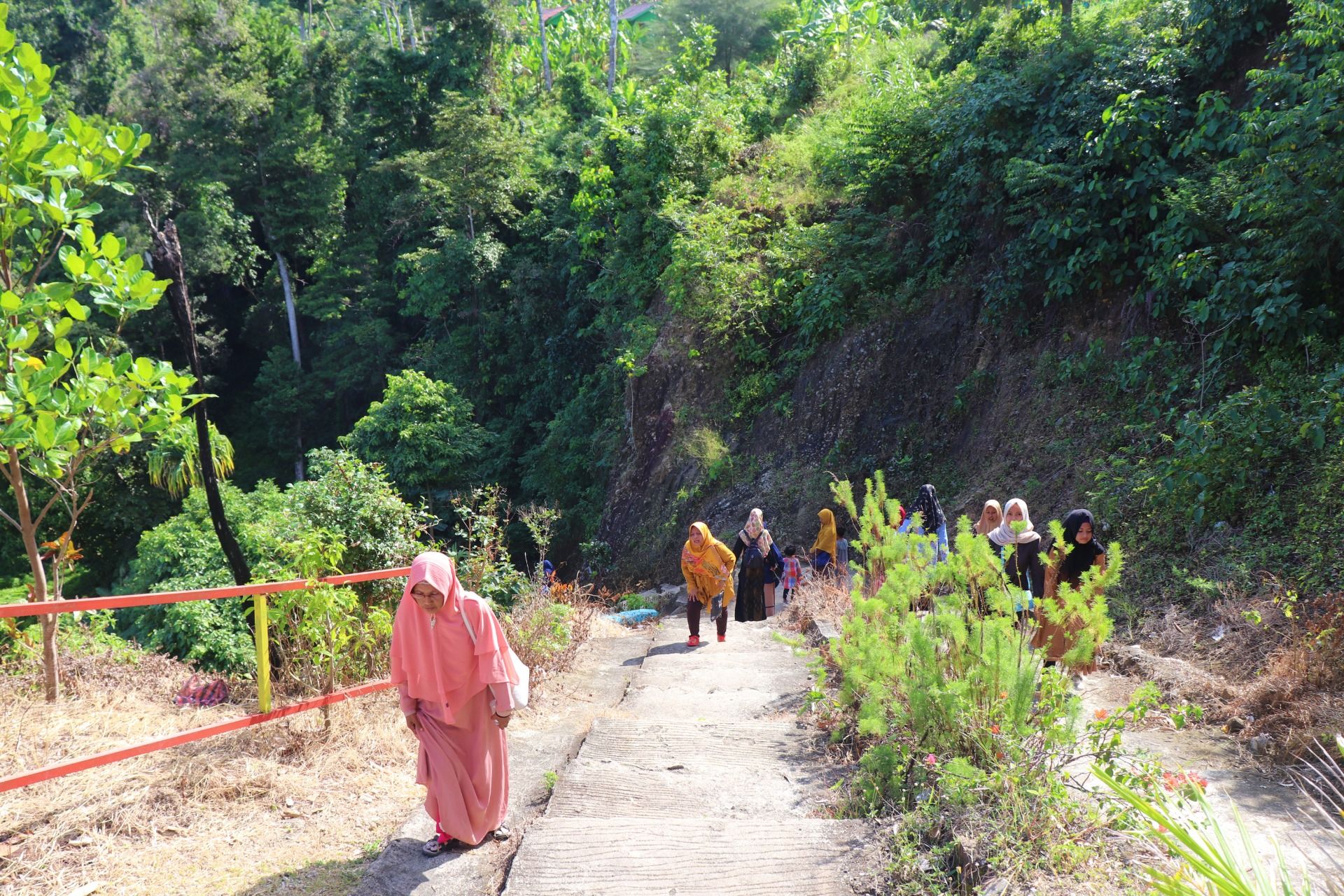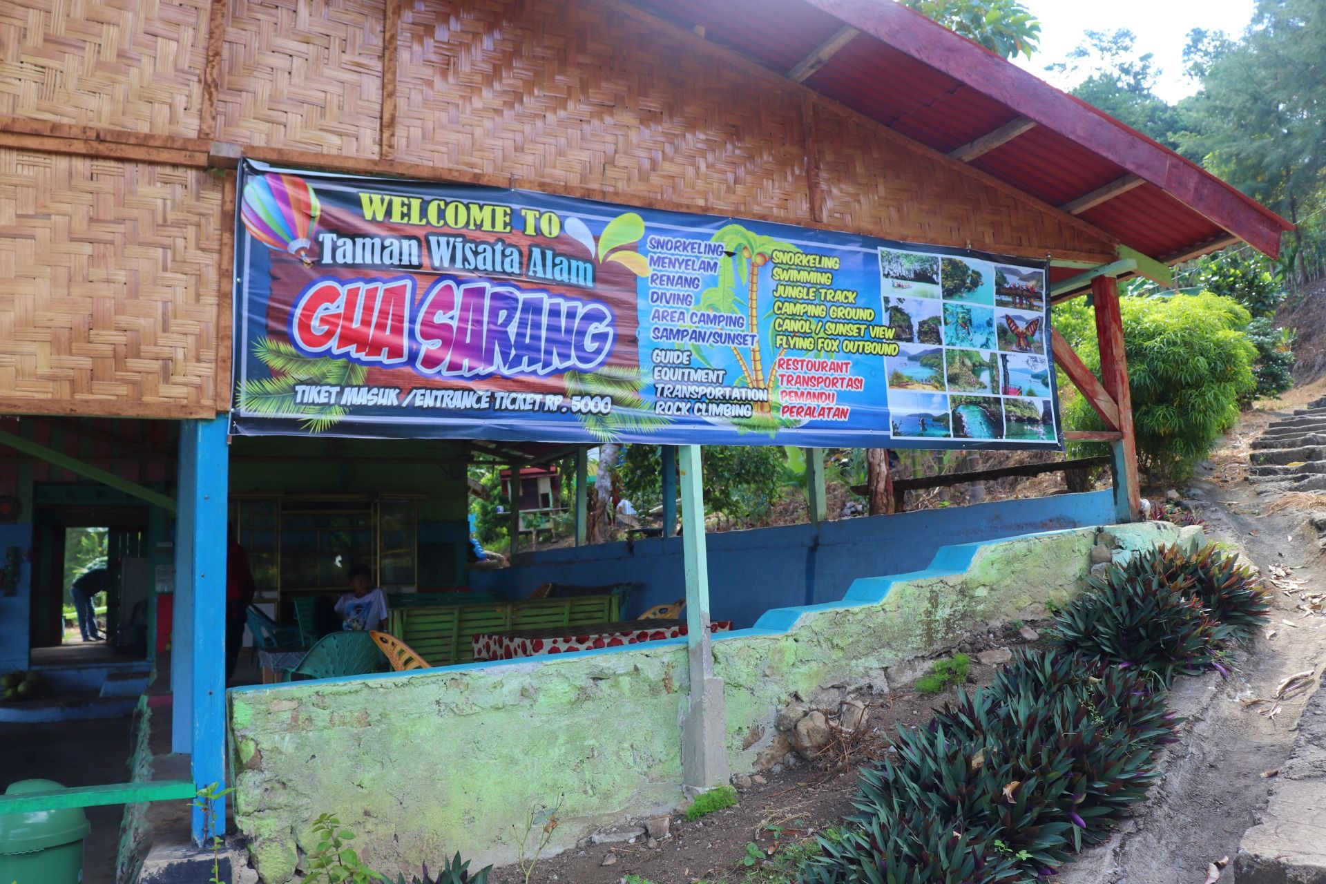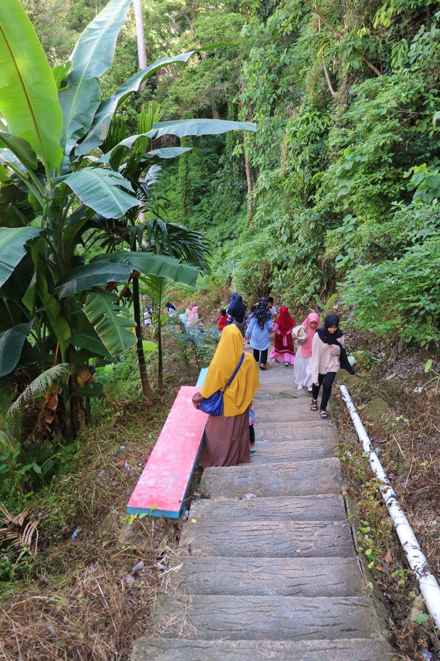 Before going down the stairs, you can stop briefly to buy enough water and food in this shop, there are several types of seafood sold here, but we did not try it because we do not yet arrive the main goal. When going down the stairs you should be careful because this ladder is quite steep with a slightly shorter footing. For us, to go down the stairs maybe not tired, but I see how tired the other visitors when going up. This is why several seats provided here to rest.