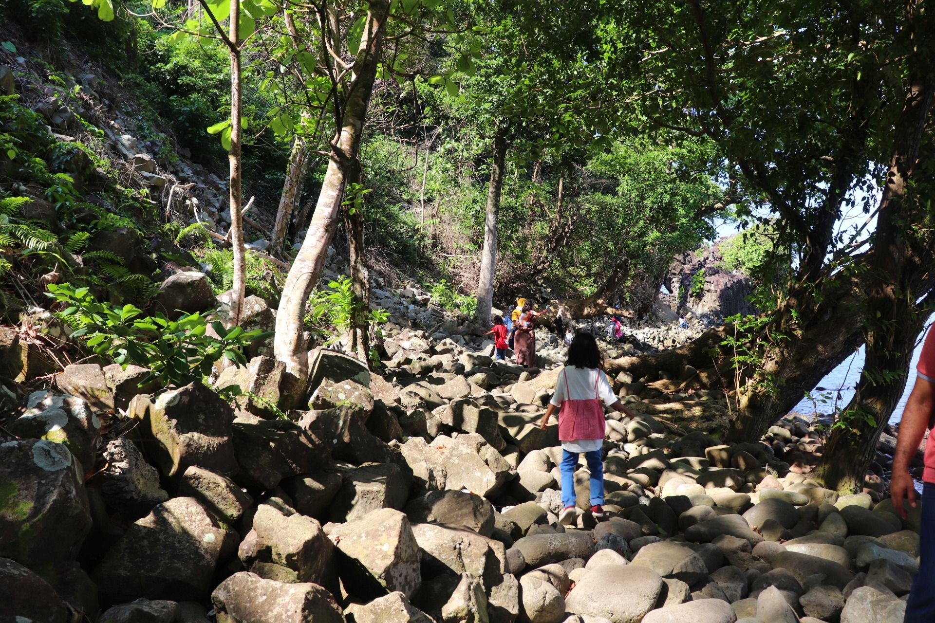In the down or near the beach, you will find a good view there, there is a swing under the shade of a tree, good location to take more photo here. Someone has waited there, he offers you a service to use his speedboat to see the seven Caves. How about us? we refuse it because we just want to walk. Tired is certain and walking on a rock is not easy, if you place your foot wrong at once, you can get injured.
