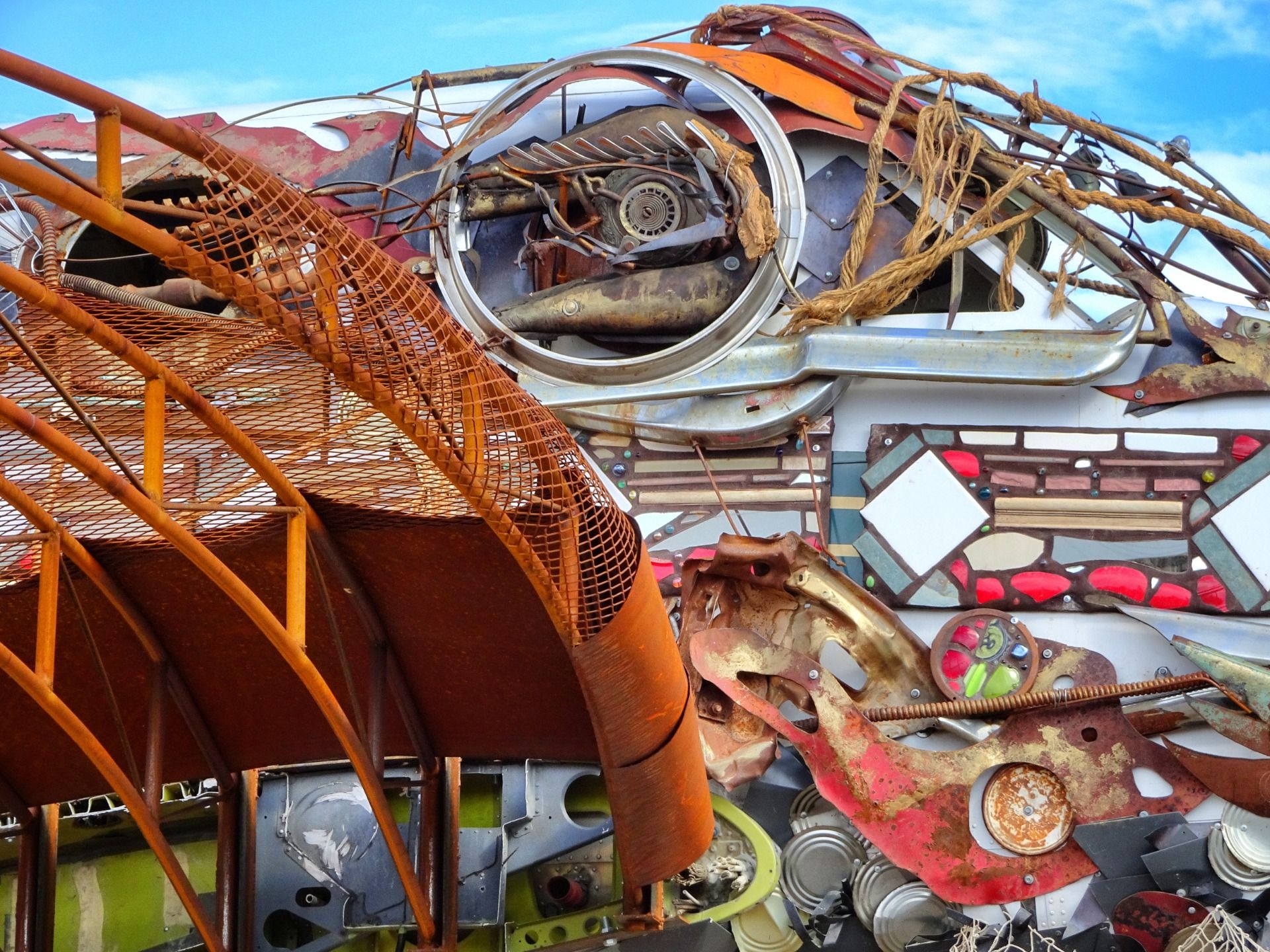 But the rest of all this was enough. Look at the pictures and let you fantasy fly with a silver dome made of discarded metal, an aircraft fuselage turned into a huge fish, a slide made of twisted iron rods and two shipping containers in the form of a cross and all this paintings on the all this walls.
