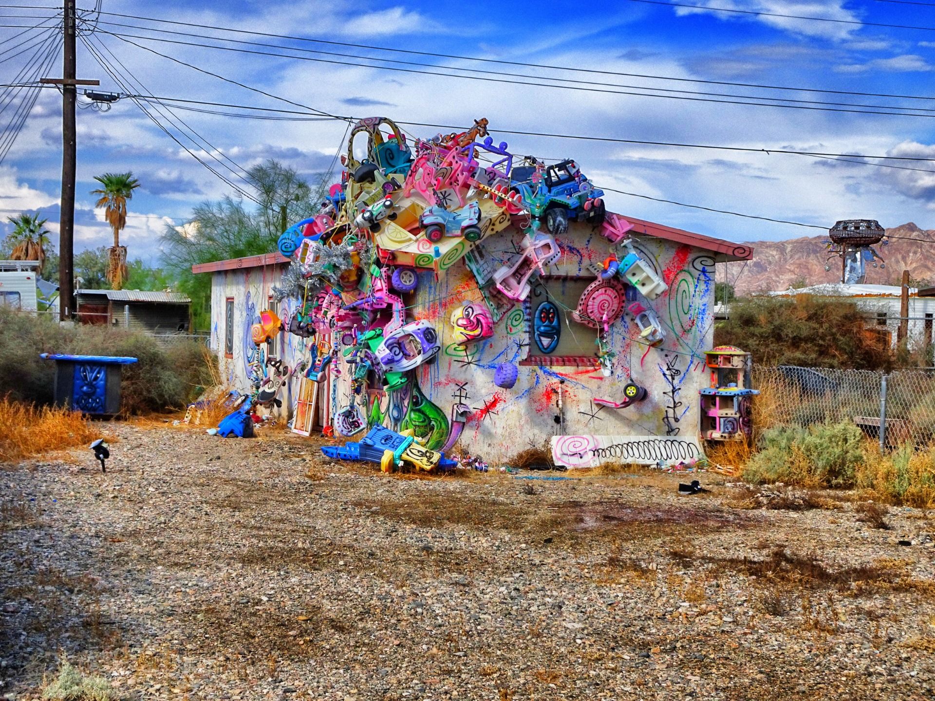 Bombay Beach once was a famous resort where kids played, sunbeds stood on beaches and cool drinks close the day for tourists. They called it the miracle in the desert as a dam broke in 1905 and the swollen Colorado River flooded the Salton Sink desert for two years. Thereby a 24 km wide (15miles) and 56 km (35miles) long new lake was created: The Salton Sea, biggest lake of California, was the reason why investors from all over the states erected hotels, yacht clubs, houses and shops near the waterline. Salton Sea was a resort area where Frank Sinatra and The Beach Boys performed in the golden 50s and 60s.