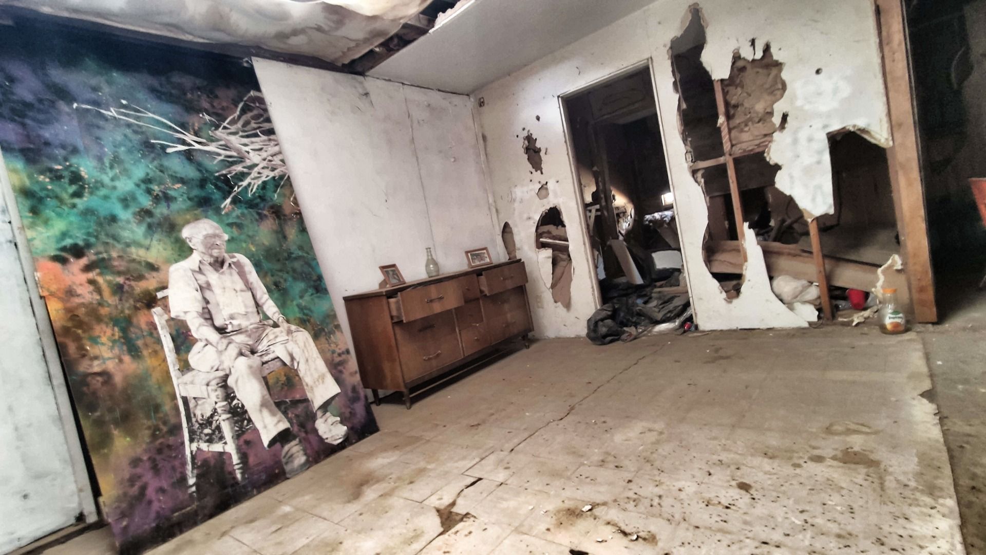 It's real. Photographer Ian Ruther turned a complete house (picture above) in Bombay Beach into big camera with his "silver & light"-project. Over a year, he created two 200-pound ambrotypes — images created on glass with collodion — measuring 66 by 90 inches. One of his plates depicts a tree outside the camera house and now hangs in the Nevada Museum of Art. Another one shows the 100-year-old Bombay Beach resident named Ted we sadly didn't met.