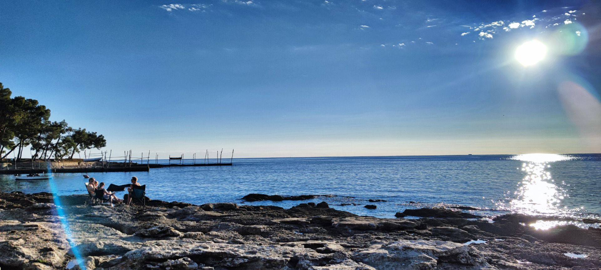 Near Salvore, which is now called Savudrija, pine trees stand on the coast and boats hang on racks above the water. This way they are protected from high tide and if necessary they are lowered into the water by means of pulleys. The beach takes some getting used to: no sand, but gravel, shaded by olive trees or vines growing out of the red earth. In a rustic village pub, we try what host Zlatan tastes like: skewers and wine, beer and sweet dessert. Divine.