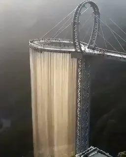At the end of the bridge, in the circumference of the bridge, there is a waterfall that has 450 water nozzles and a dozen pumps that pump tons of water every day.