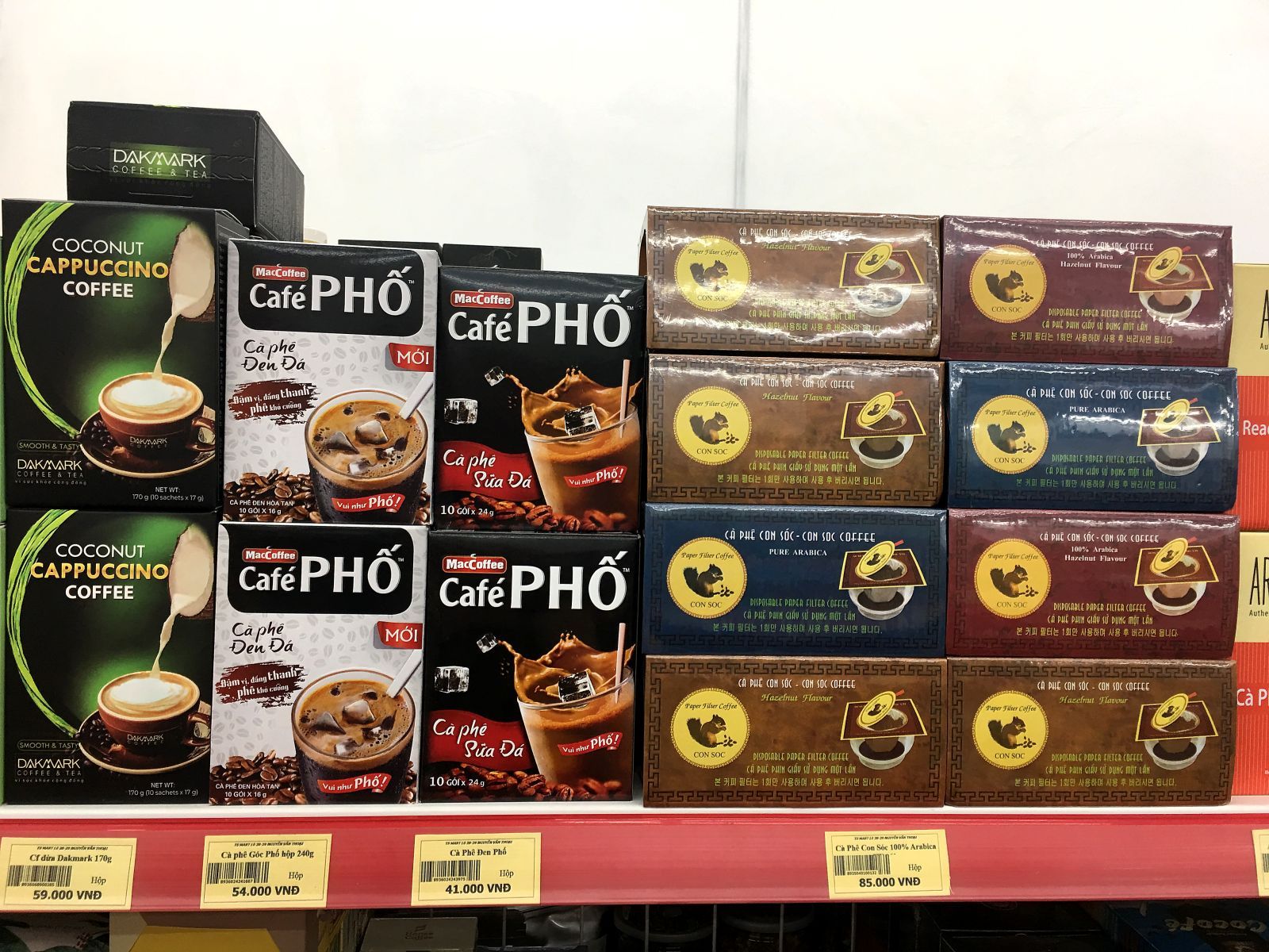This is what the assortment of coffee looks like in the Vietnam ST-Market supermarket.