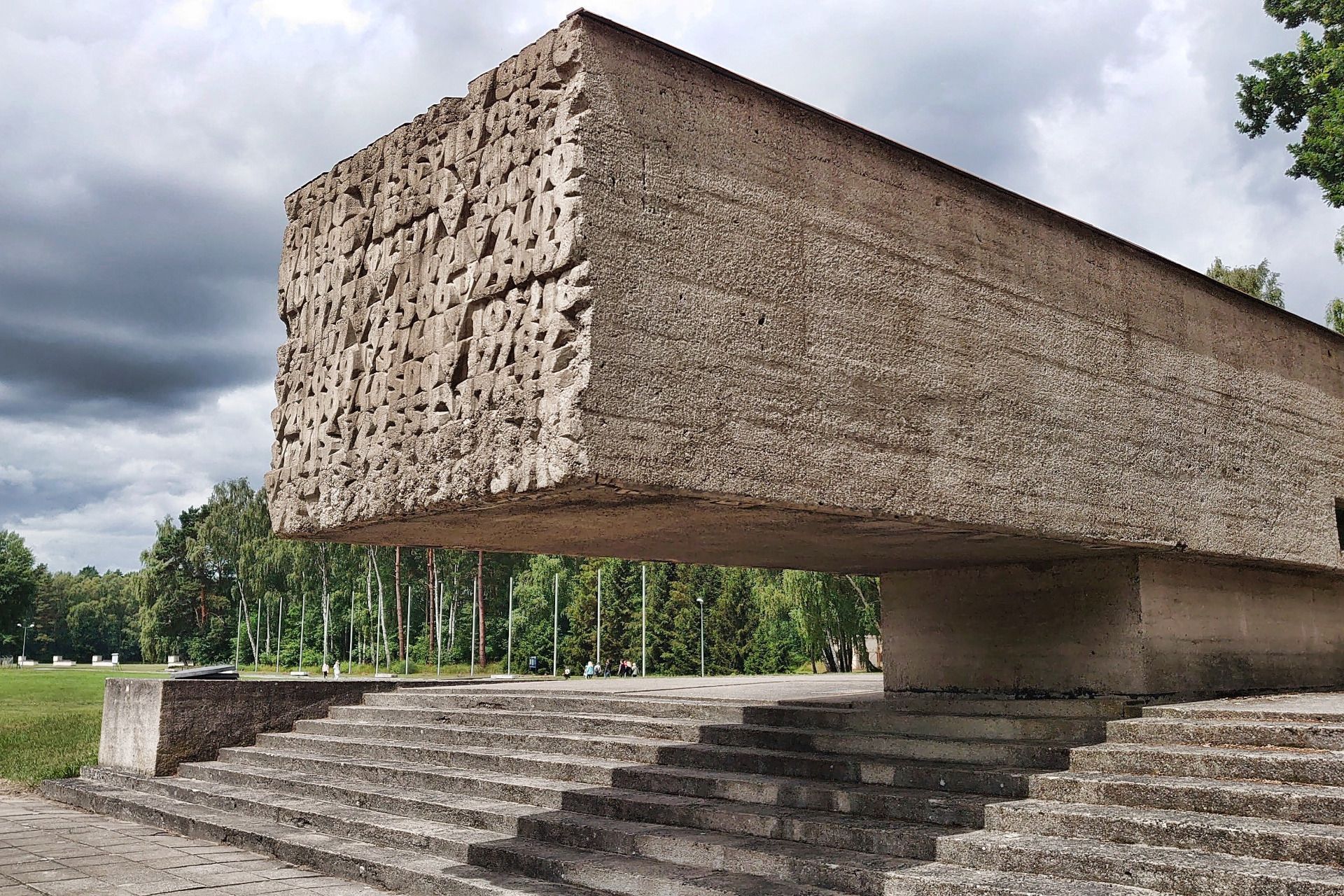 Monumentalny i bardzo wymowny Pomnik Wali i Męczęstwa autorstwa Wiktora Tołkina został odsłonięty z okazji 23 rocznicy wyzwolenia obozu. To właśnie na tym monumencie wyryte są słowa z tytułowego cytatu.