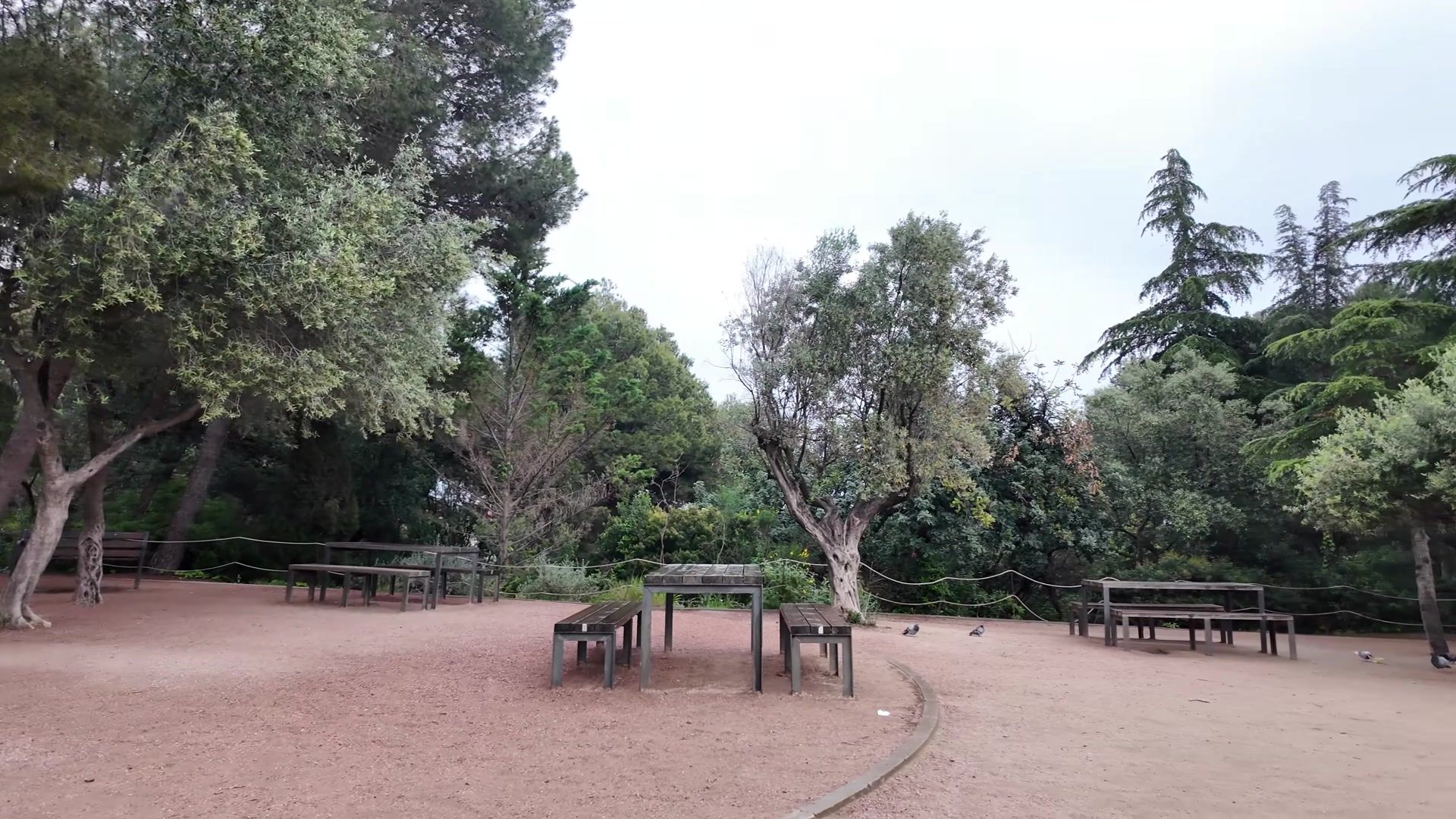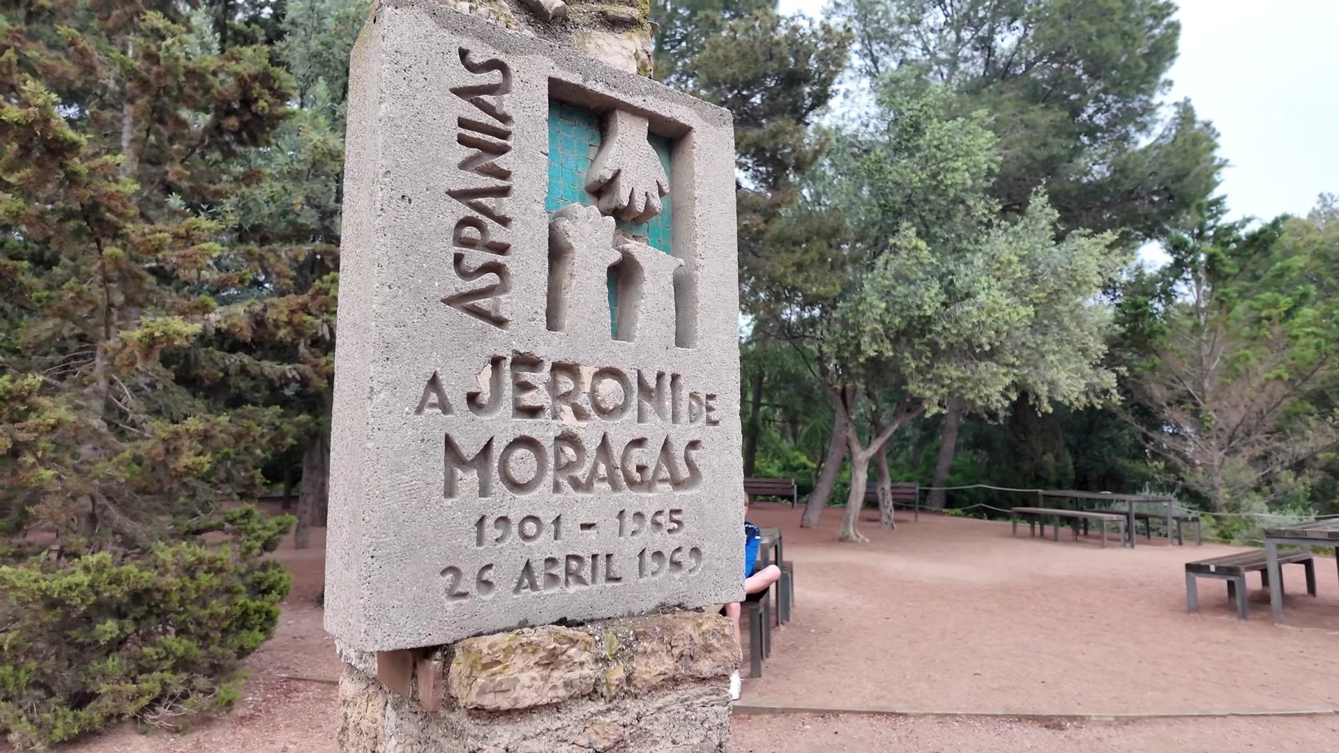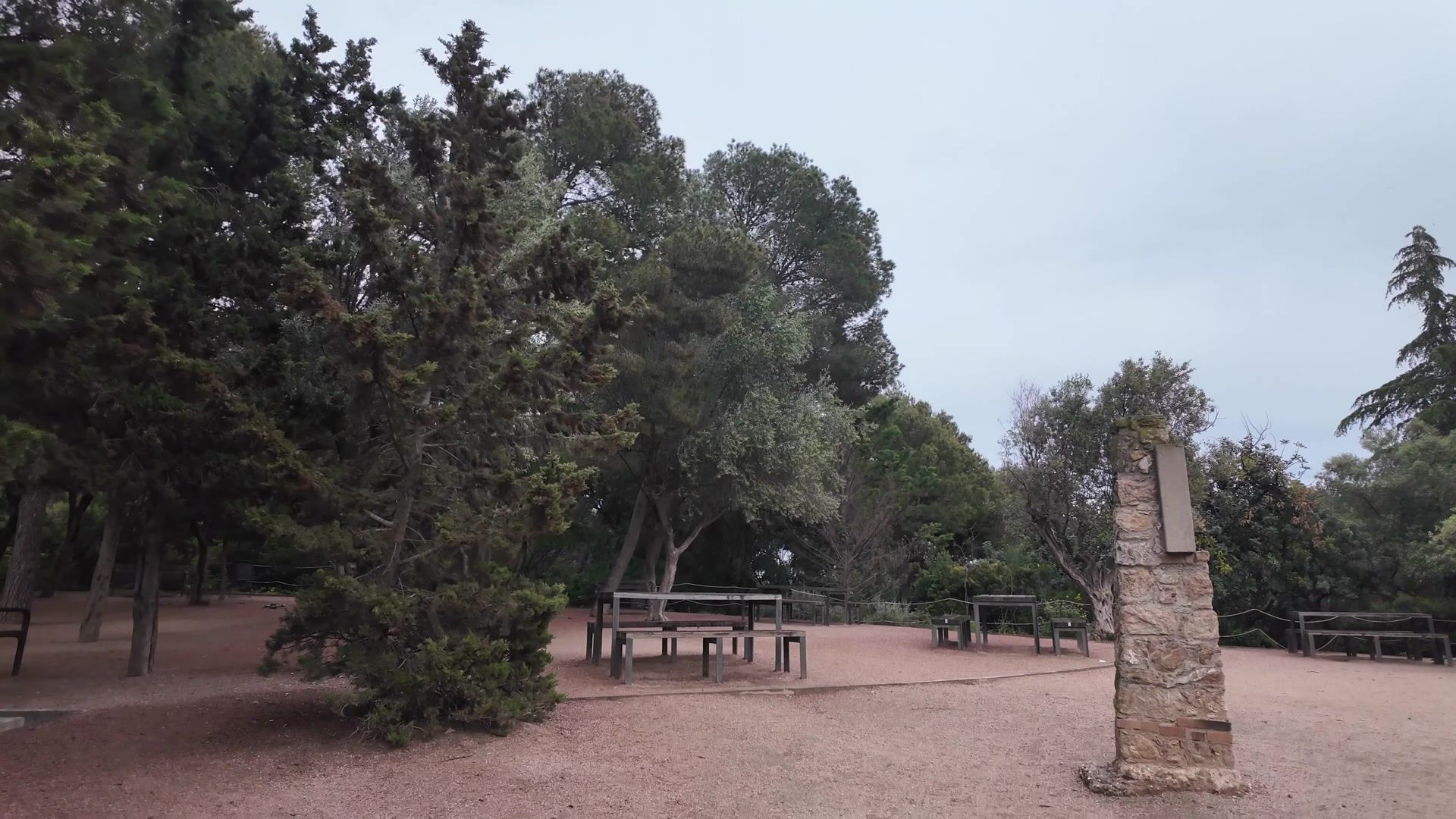 There’s also a resting area with picnic tables and a children’s playground. You can bring your own food, no one checks. All the park infrastructure is available to you, including a drinking fountain. You can fill your bottle there if you’re thirsty. Since it was raining, we couldn’t sit down and rest. We came across a memorial plaque for Jeroni de Moragas. He was an important doctor in Barcelona between 1901 and 1965, especially known for his work on children's mental health and learning problems.