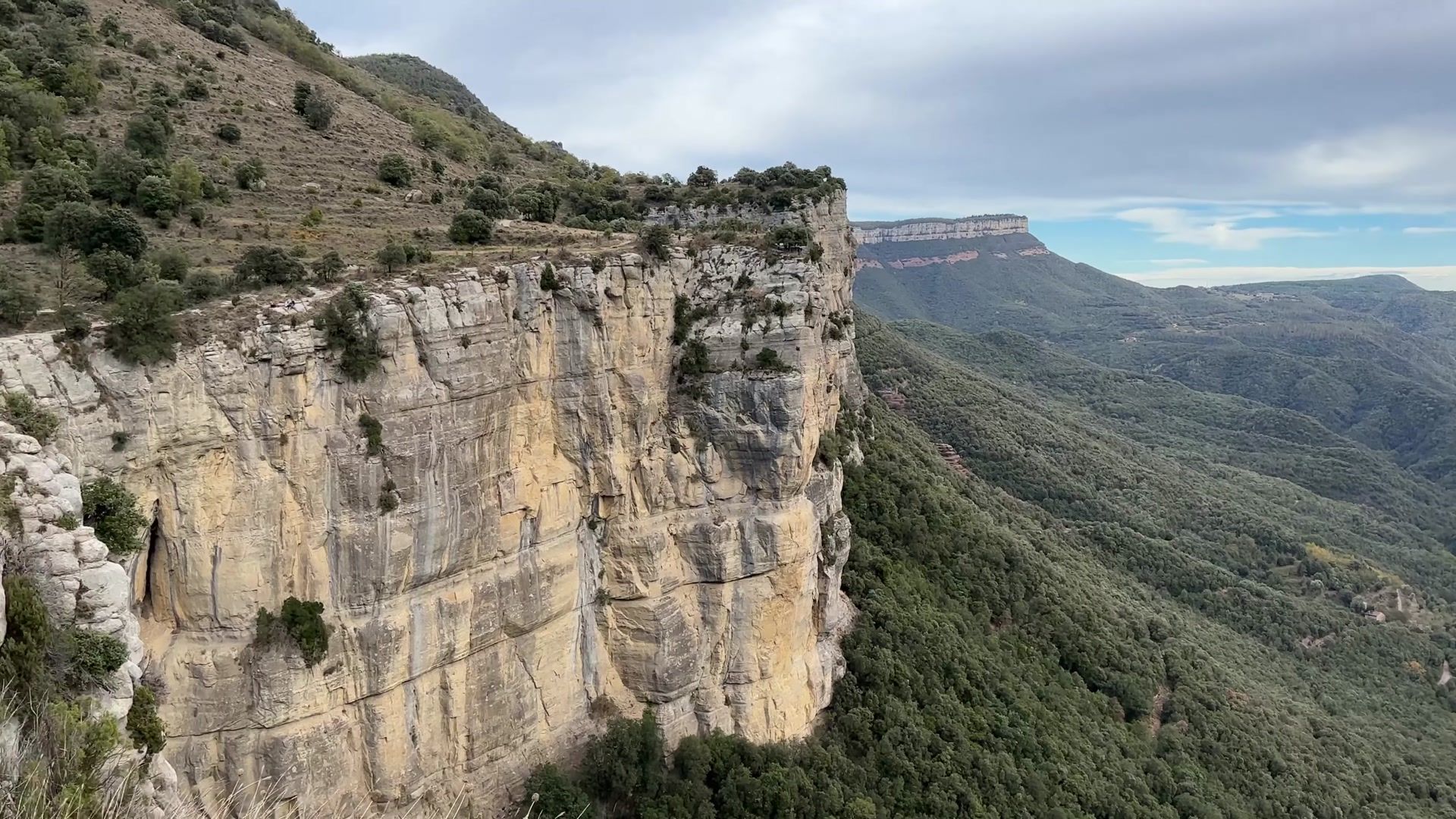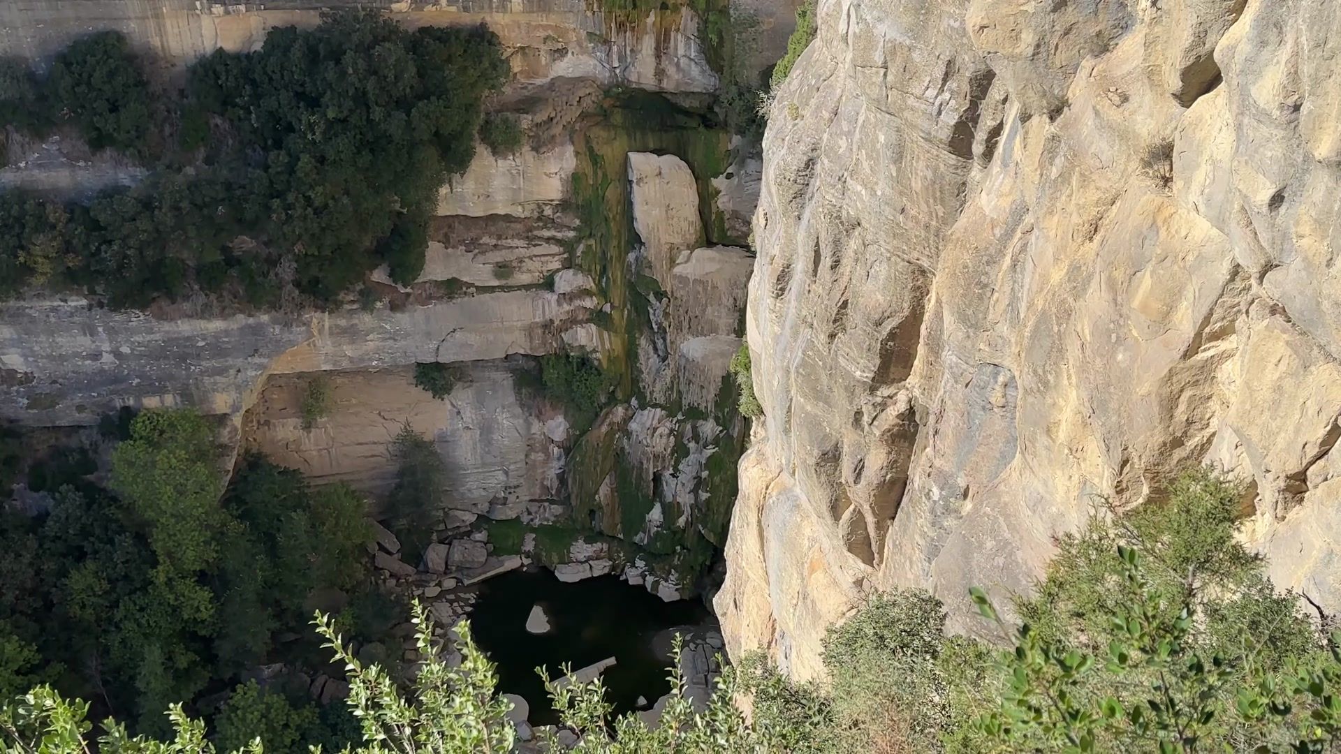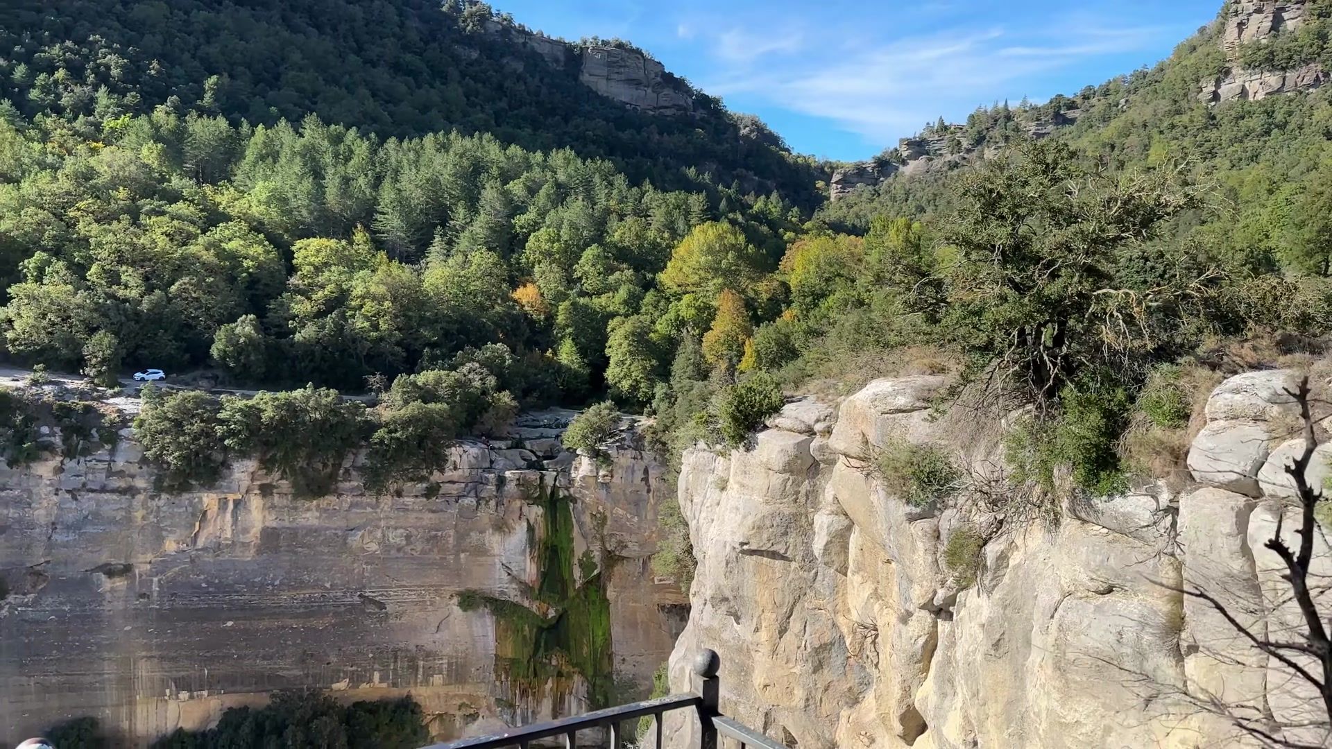 Rupit is amazing and only 98 km away from Barcelona. The road here is a beautiful winding one, which makes me a bit nervous because it takes about half an hour and is completely winding. If you get dizzy while traveling, like I do, I suggest taking some medication to make the journey more comfortable and to avoid disturbing anyone. The nature here is incredible, with a beautiful canyon and also the largest waterfall in Catalonia, although due to two consecutive years of drought, the waterfall is not as it used to be. I was here two years ago and back then, the waterfall was very strong and beautiful.