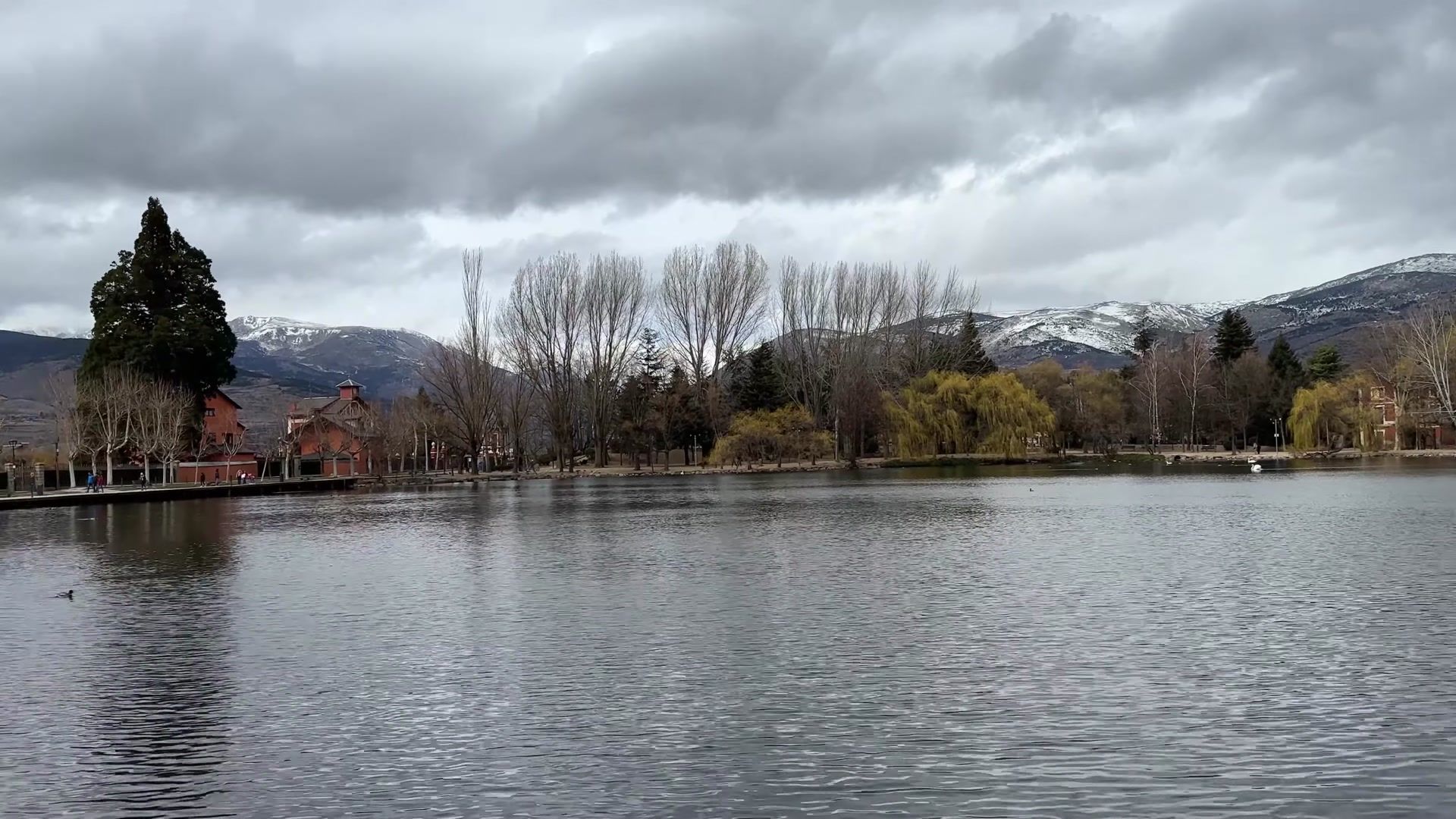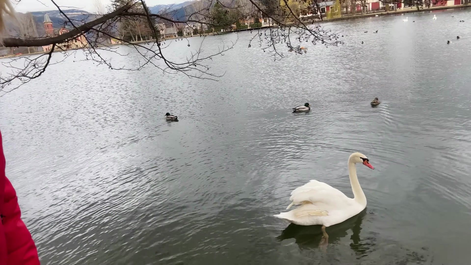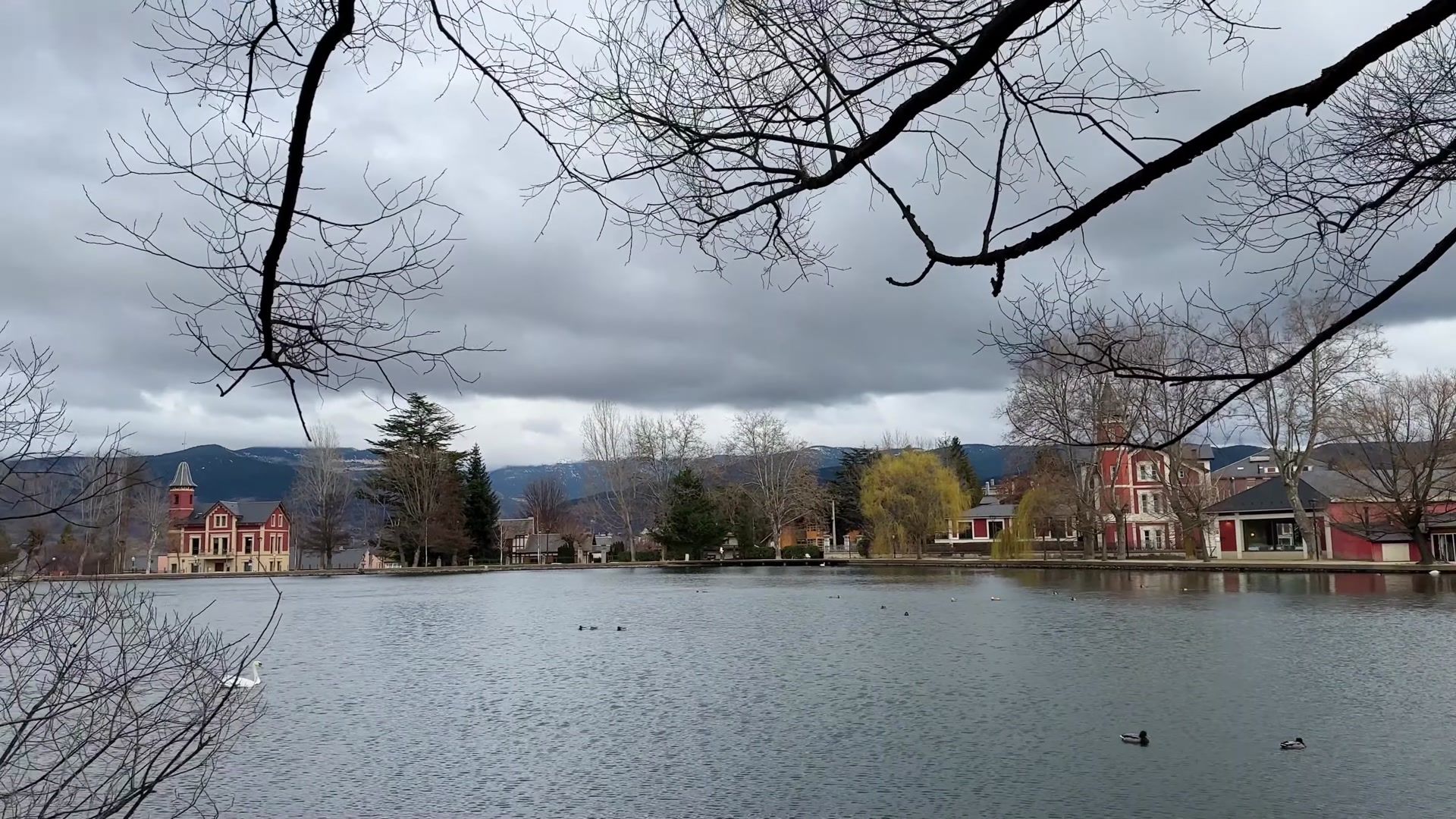 The weather was a bit gray. It would have been more colorful if the sun had been out. If you come here you can walk along the lake and enjoy nature. You can taste local foods, take a trip to France and there are ski resorts nearby.