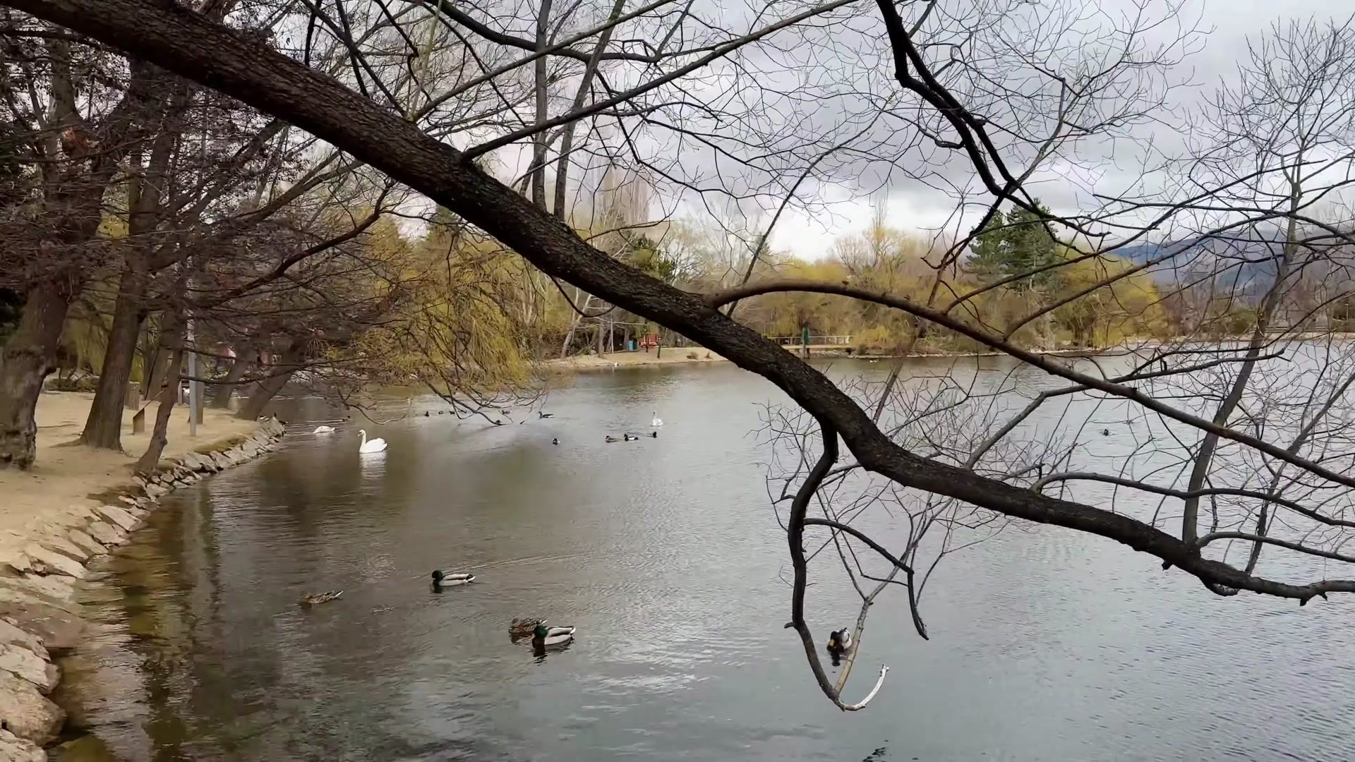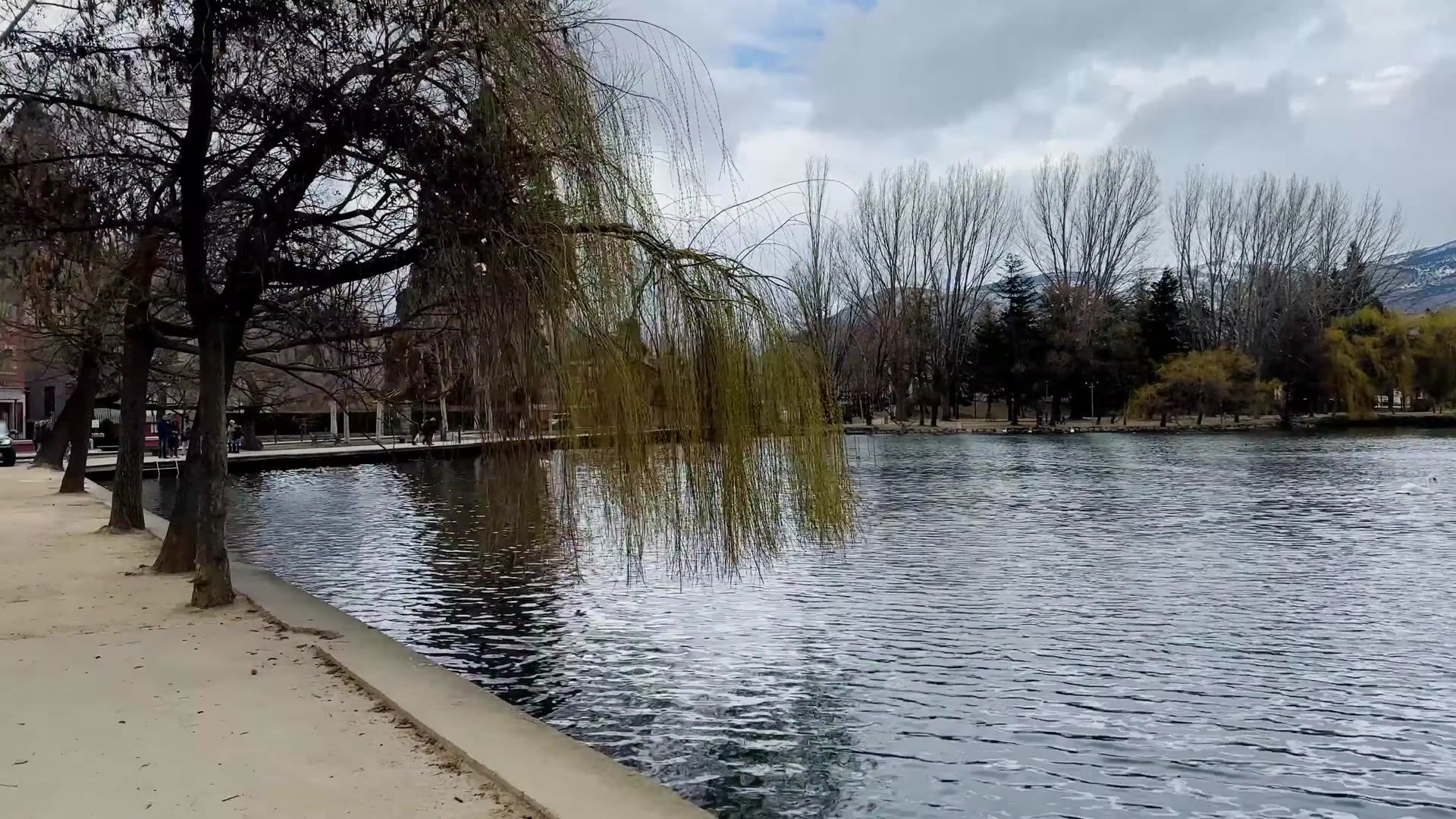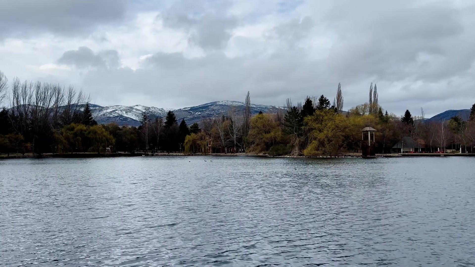 The weather was a bit gray. It would have been more colorful if the sun had been out. If you come here you can walk along the lake and enjoy nature. You can taste local foods, take a trip to France and there are ski resorts nearby.