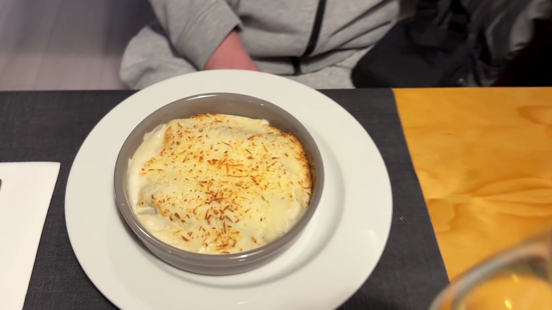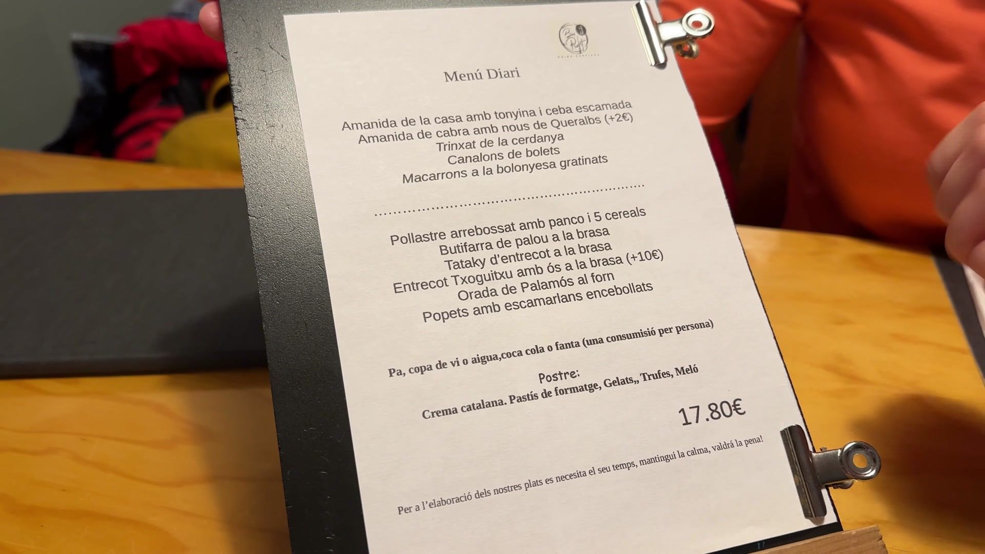 The hotel was next to a park with a beautiful view of a lake and the mountains. Everything looked very nice. After resting for a bit, we went to eat. They told us that there was a standard menu here. The menu of the day was 17 Euros and 80 cents. It was a very nice restaurant, we had lunch here and we paid 20 Euros and 30 cents per person.