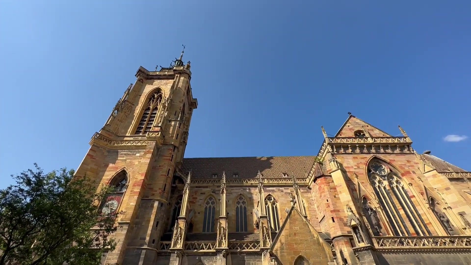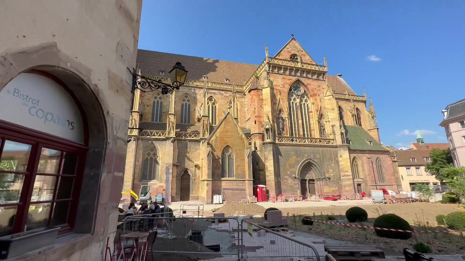 The square across from it is currently under renovation. The ground is being repaved and the landscape is being redesigned. According to the plans, it’s going to look much better. Just ahead stands Colmar’s gothic cathedral Saint-Martin. Construction began in 1234 and was completed in 1575. It started in the gothic era and was finished during the renaissance, which is why the bell tower is in renaissance style.