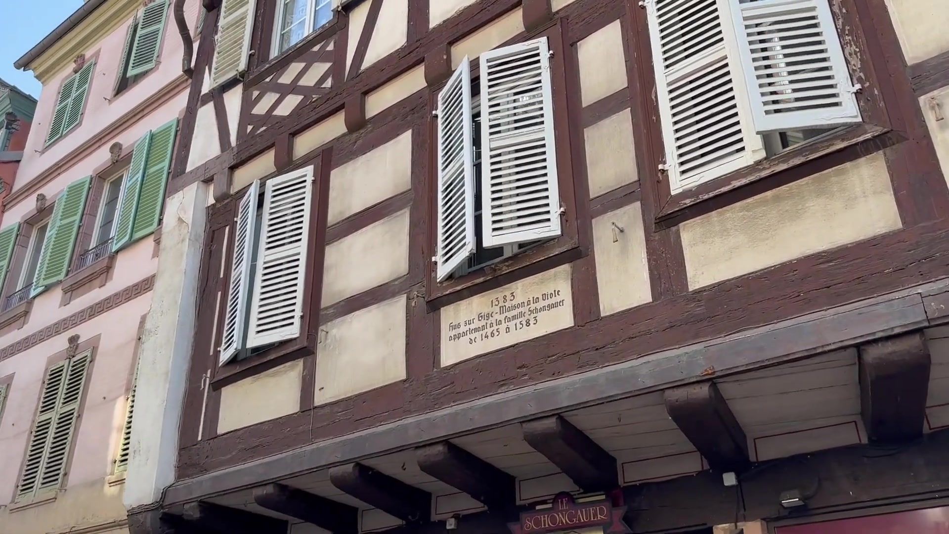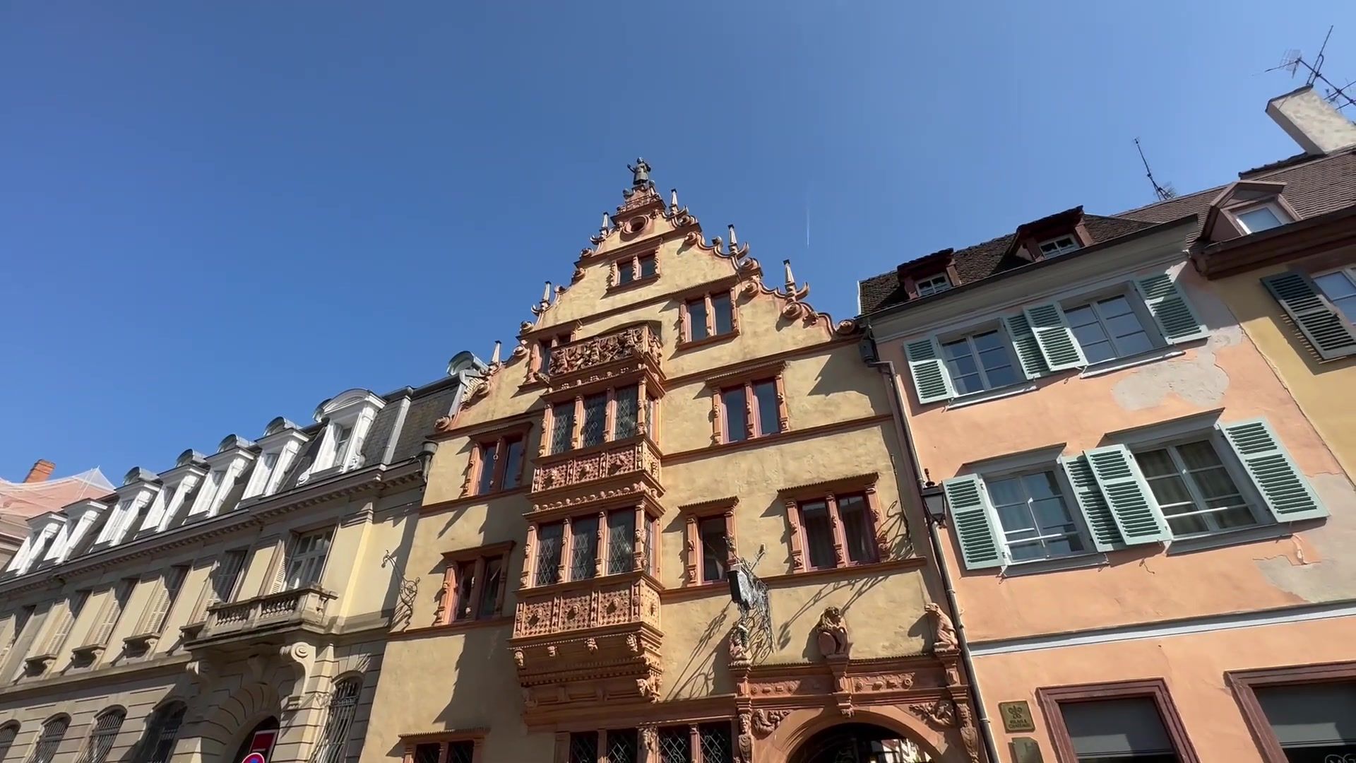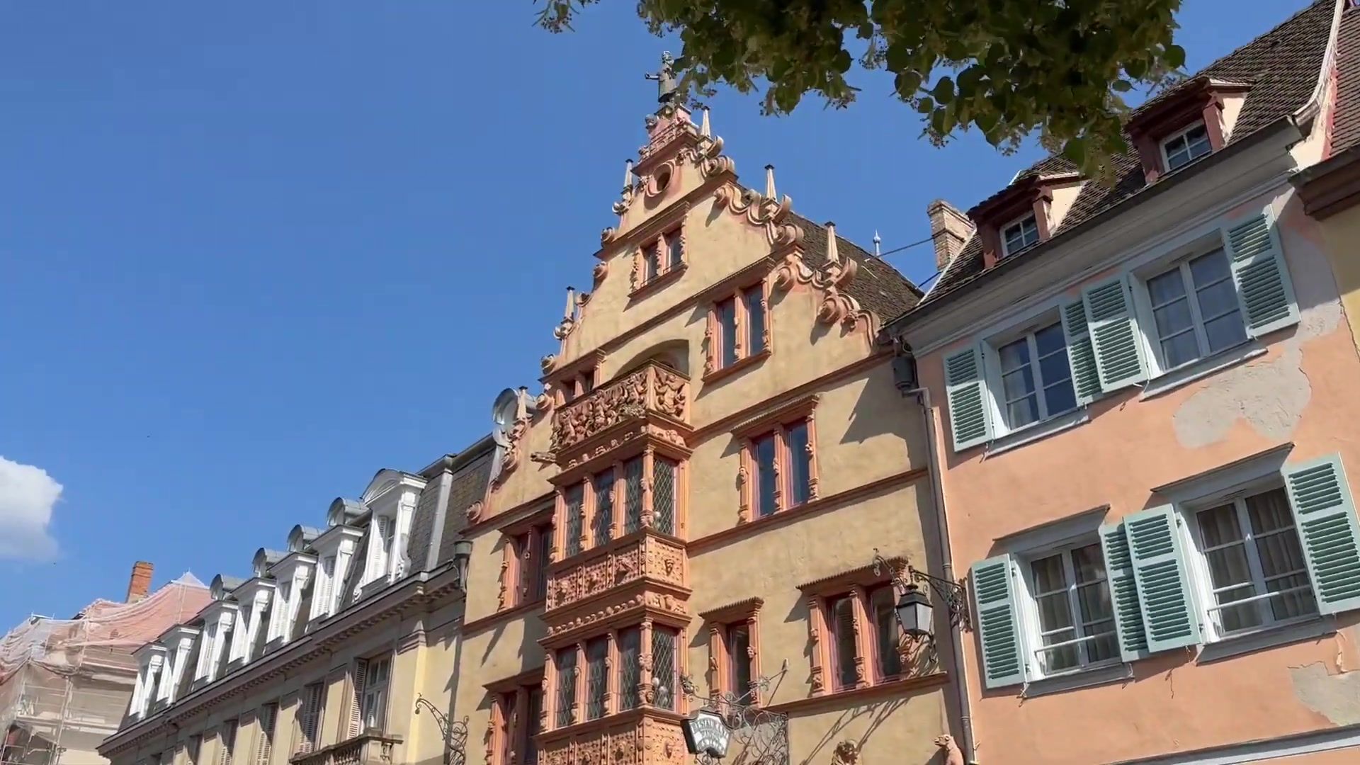 We passed by another heavily decorated house. Its surface was full of patterns. But these patterns were actually painted. What looks like stone decorations on the walls are really done with paint. In French this is called trompe-l'oeil, meaning visual illusion. It’s a beautiful technique. By the way this building is a restaurant. There are even restaurants in Colmar recommended by the Michelin Guide. That’s something quite special for such a small city. This place has a population of only about sixty thousand, yet it has several Michelin-rated restaurants. And the prices aren’t outrageously high either.