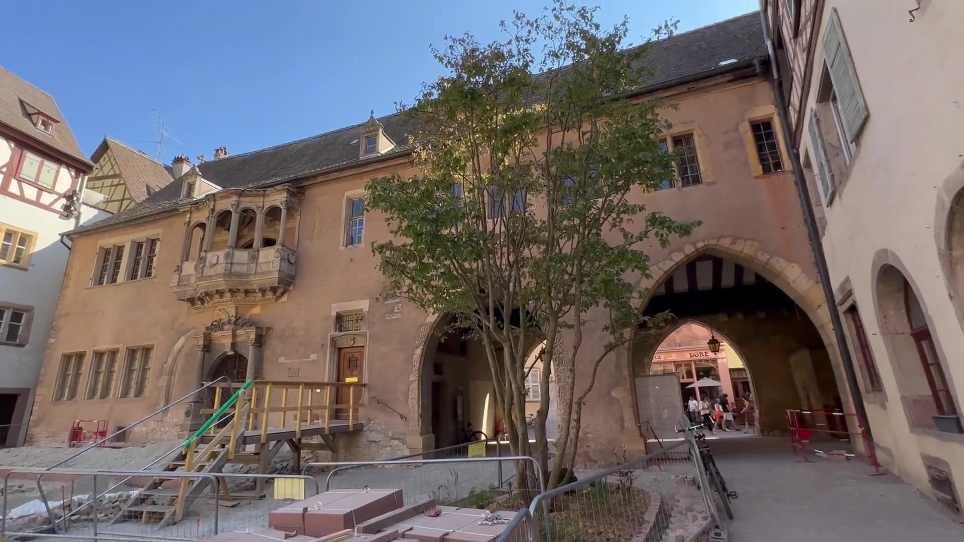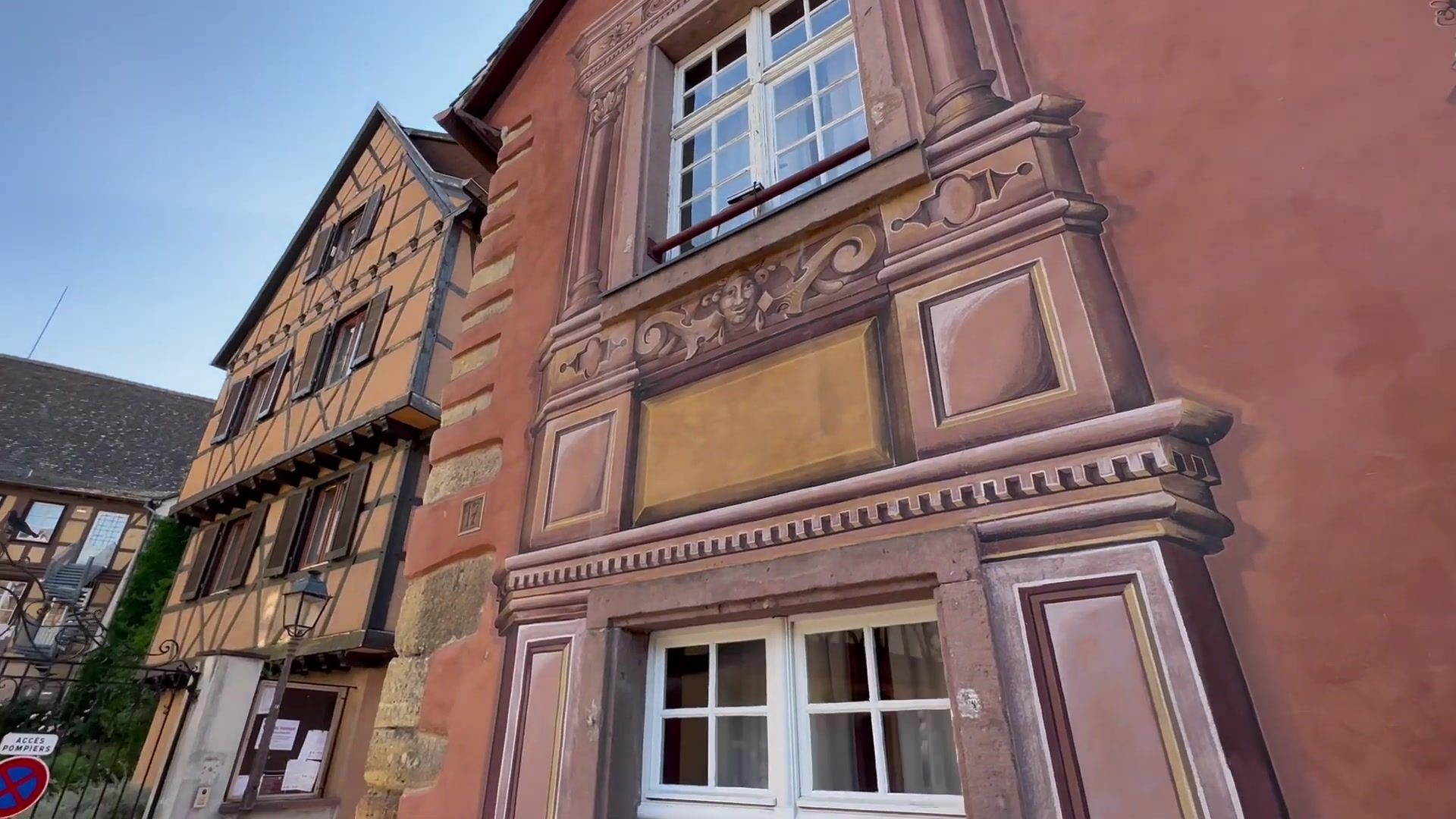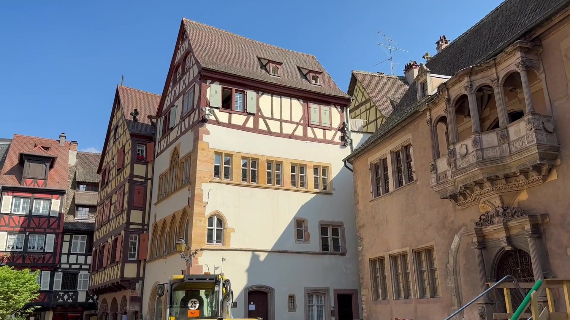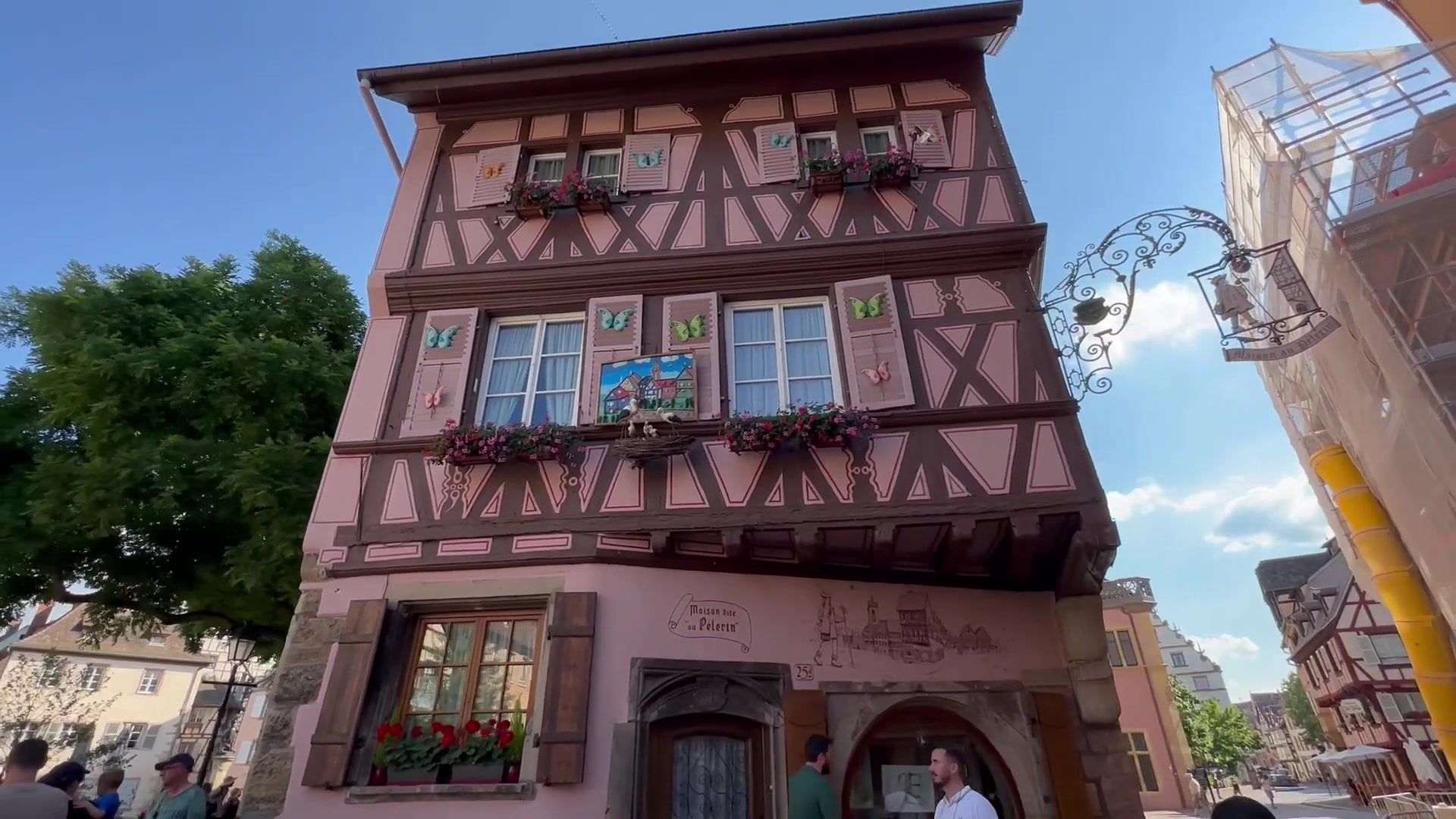 We passed by another heavily decorated house. Its surface was full of patterns. But these patterns were actually painted. What looks like stone decorations on the walls are really done with paint. In French this is called trompe-l'oeil, meaning visual illusion. It’s a beautiful technique. By the way this building is a restaurant. There are even restaurants in Colmar recommended by the Michelin Guide. That’s something quite special for such a small city. This place has a population of only about sixty thousand, yet it has several Michelin-rated restaurants. And the prices aren’t outrageously high either.