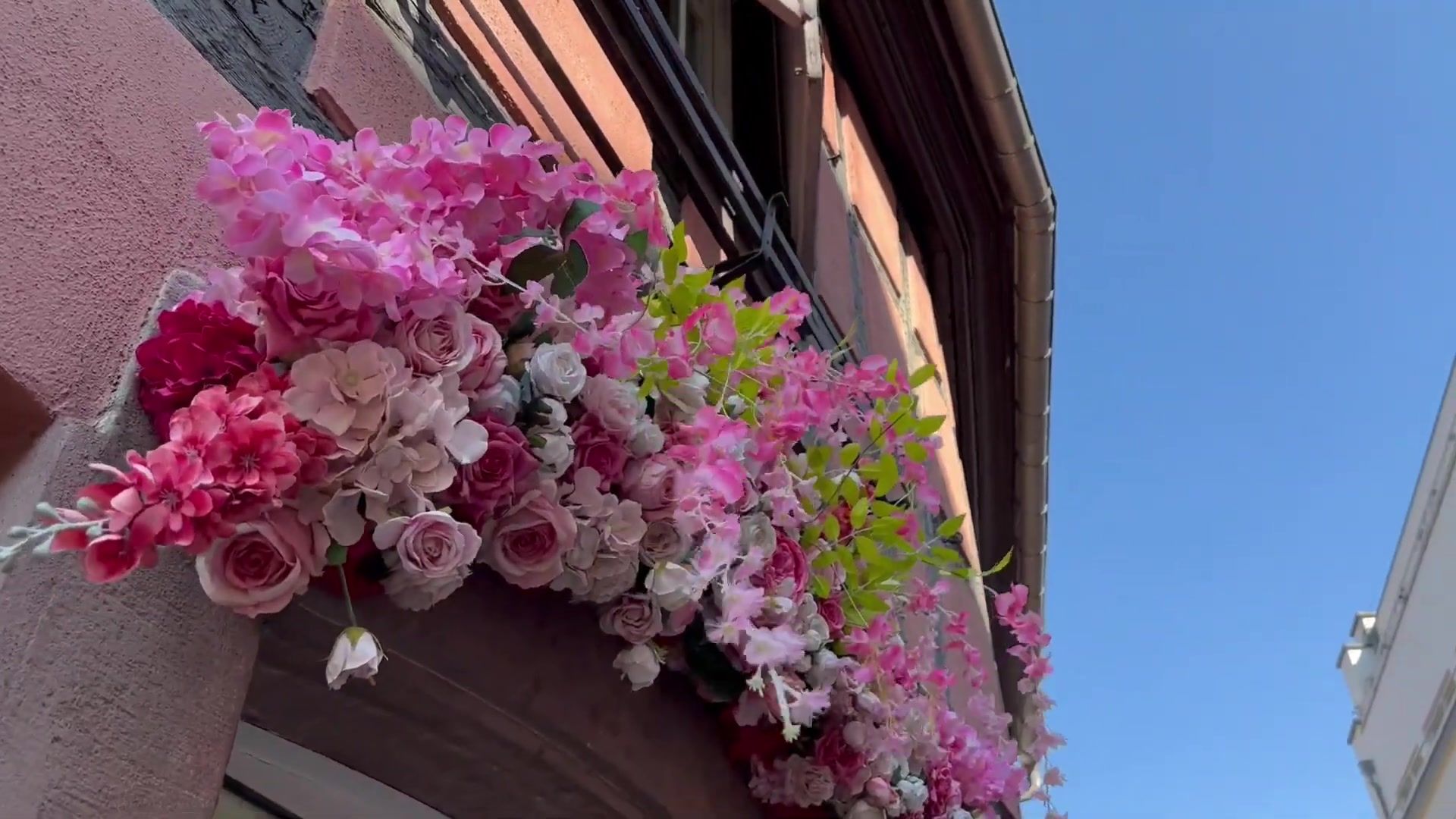 We walked through a few main streets and really felt the general atmosphere of the city. From time to time I would stop to look at small details. Because Colmar's beauty is hidden in the little things. For example, this house might not look very fancy, the plaster is falling off, but with its flowery details it says a lot about the city.