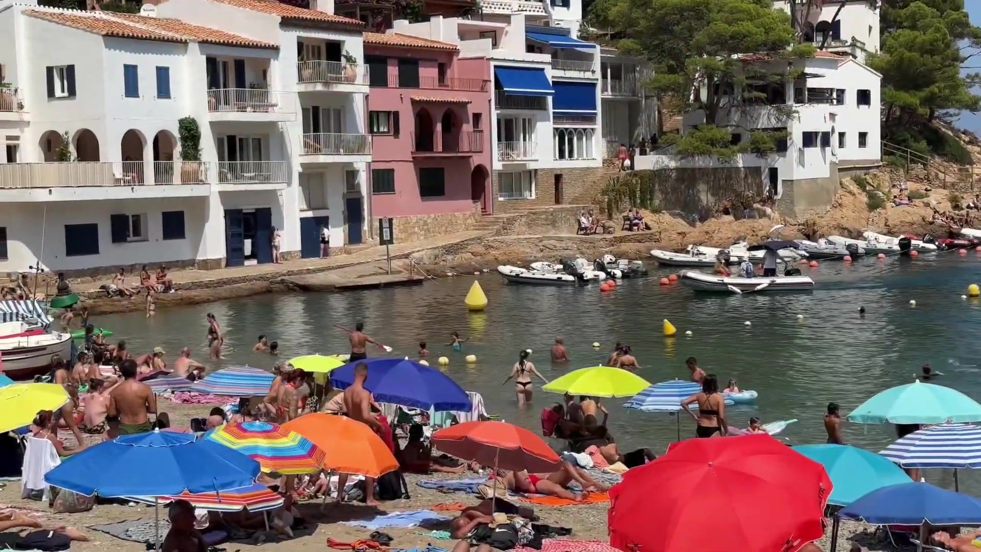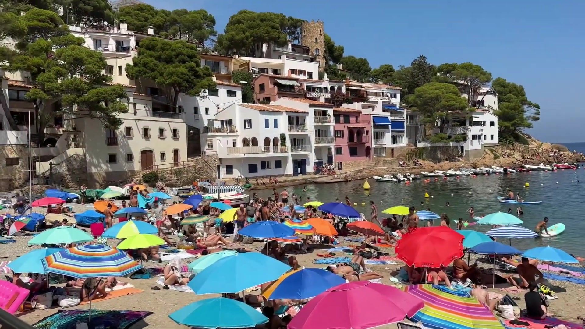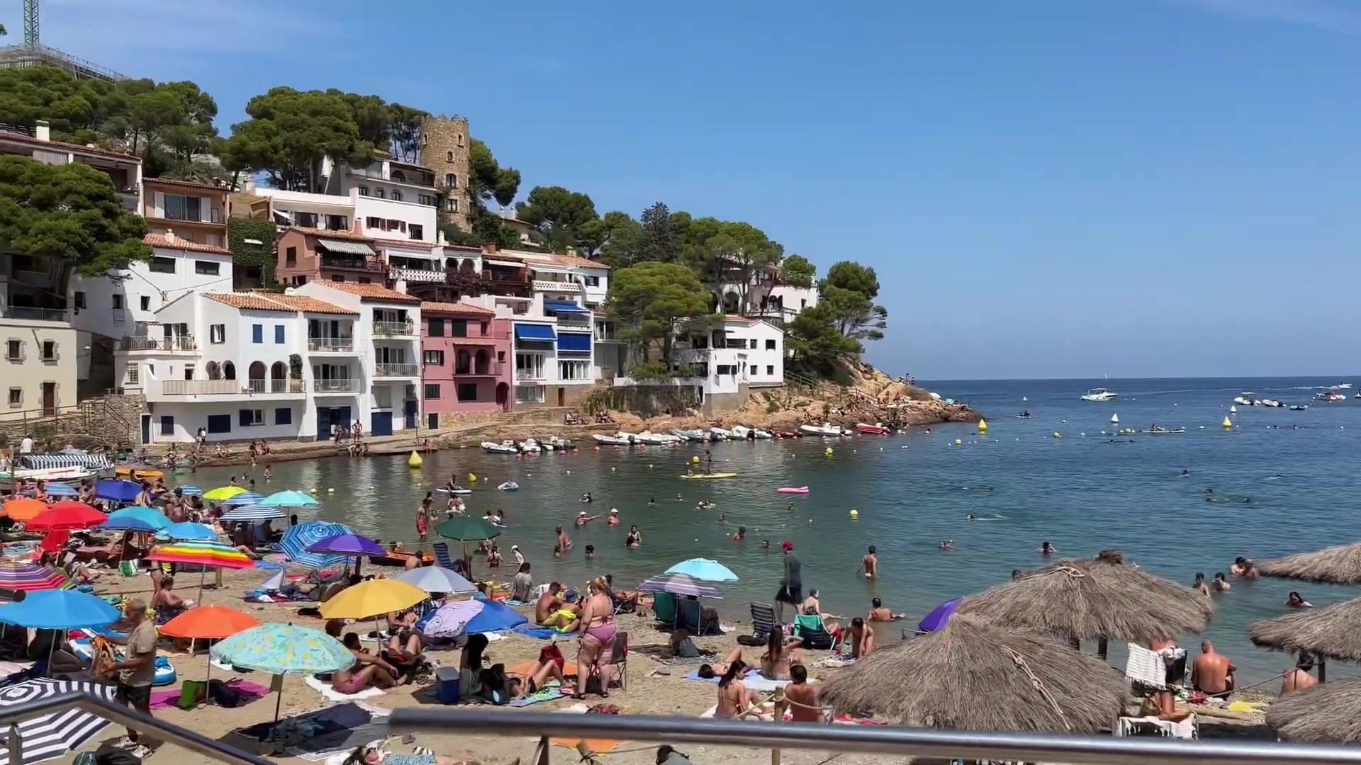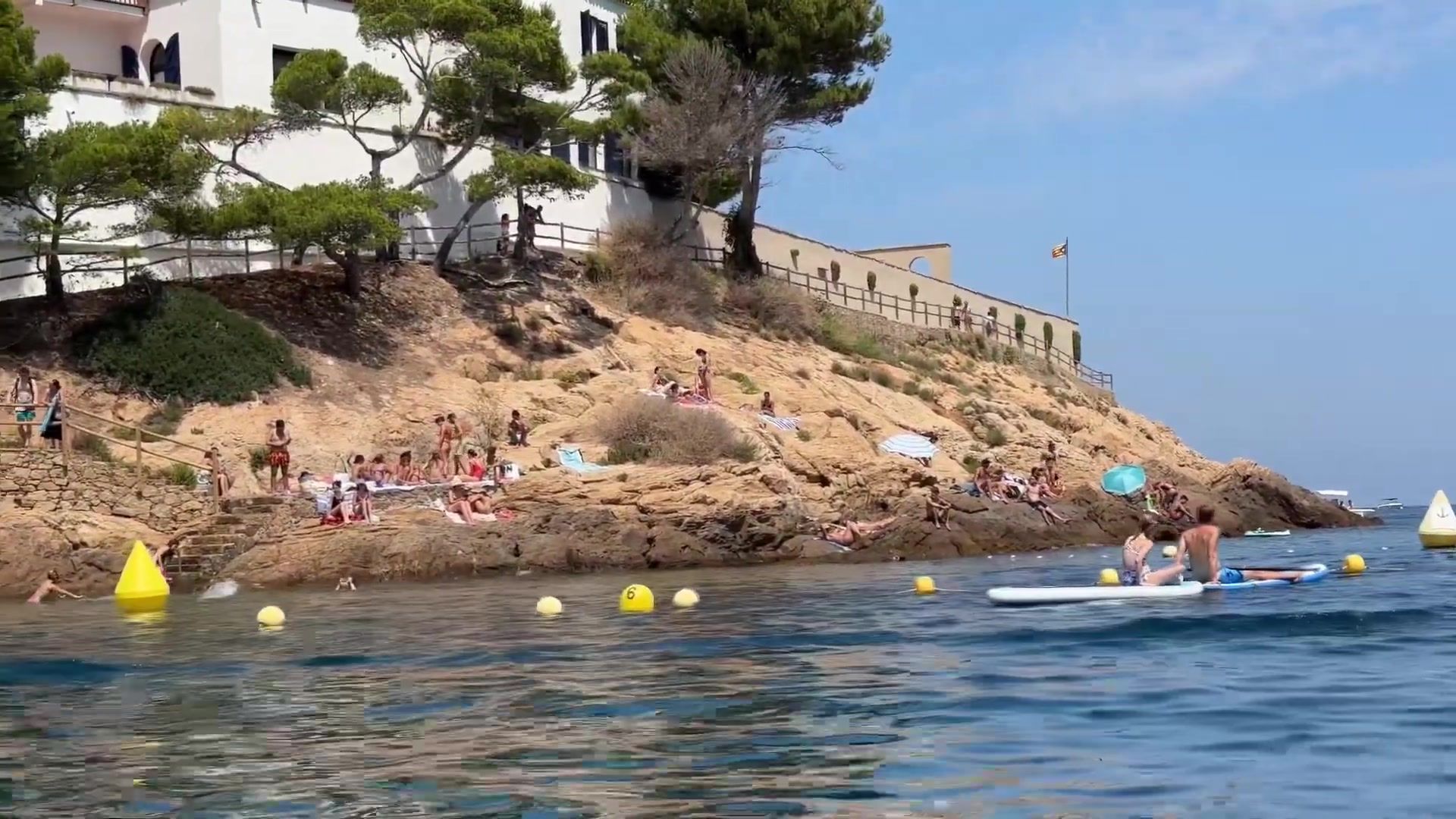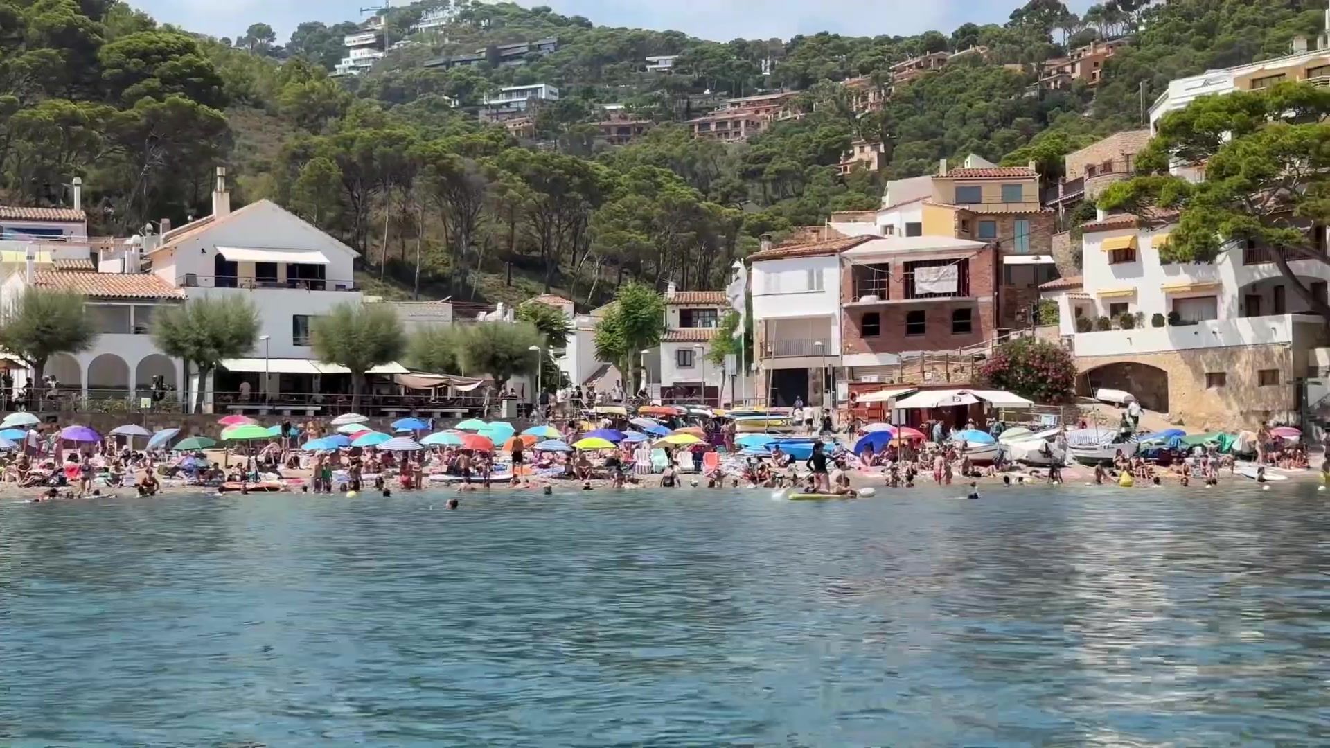 Let's give a quick review of Sa Tuna Cove, located about 130 km from Barcelona. The easiest way to get here is by car, either your own or a rental. I'm not sure if buses come here and honestly, I wouldn’t put in much effort to reach this supposedly special and relaxing cove. I don’t find the cove to be very comfortable or particularly special. It's crowded. You’ll need special water shoes to get into the sea. The water entry starts with pebbles and then leads to sharp rocks, making it quite uncomfortable.