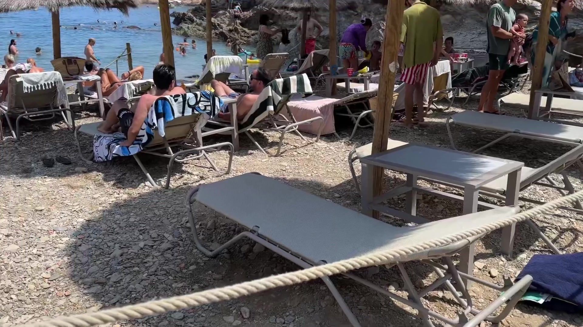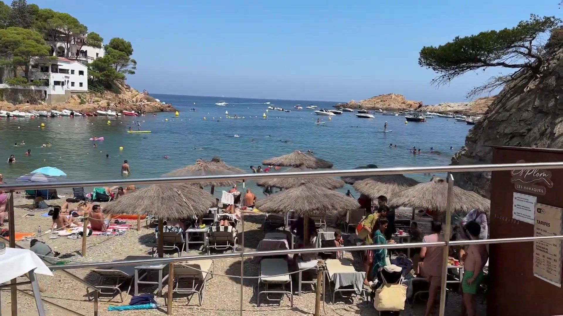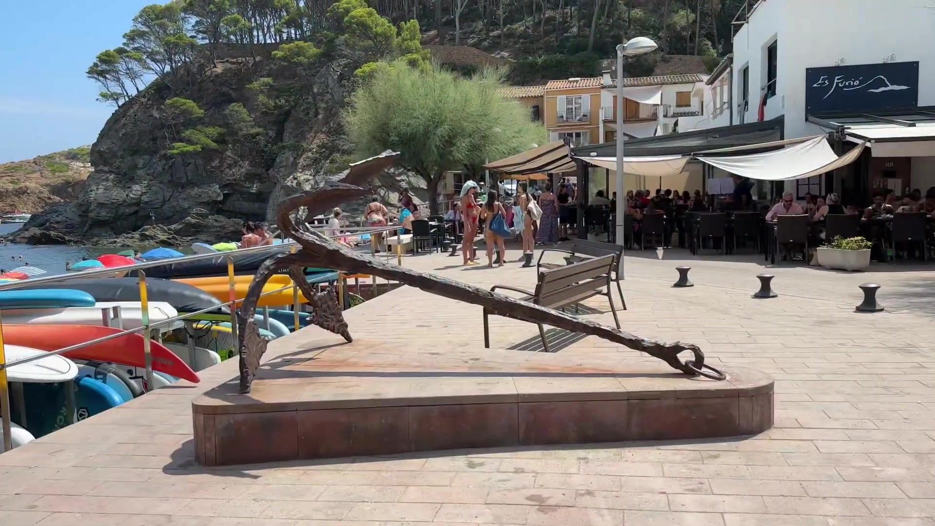 At the beach entrance there’s a sign listing the rules: no dogs, littering, fires, smoking or motorbikes allowed, just standard regulations. There’s also an old anchor on display, a reminder that this used to be a fishing village. The beach is called "Platia De Sa Tuna" and is located in Begur. The cabin on-site has restrooms, with an entry fee of €1.