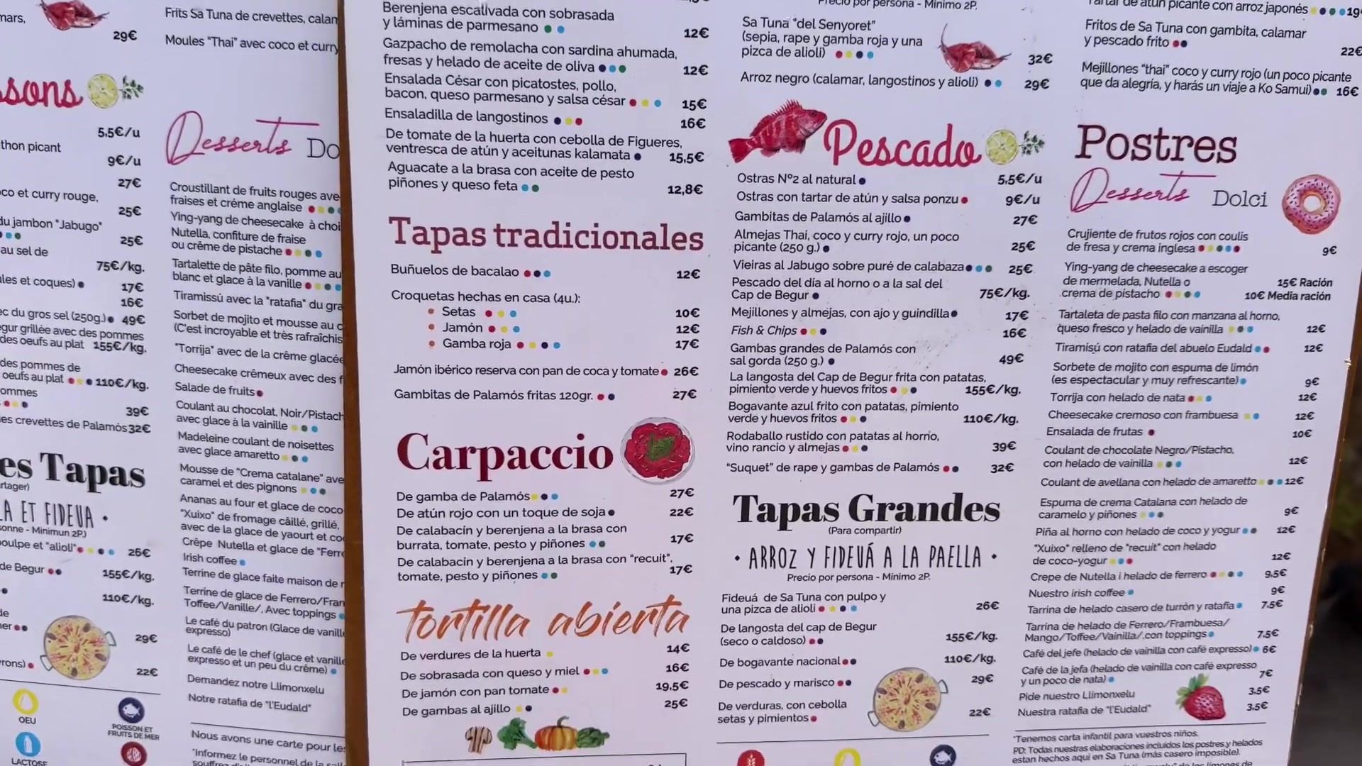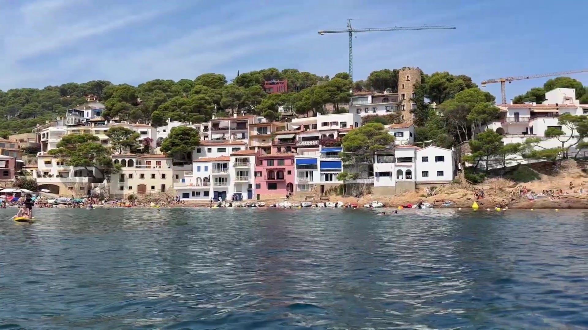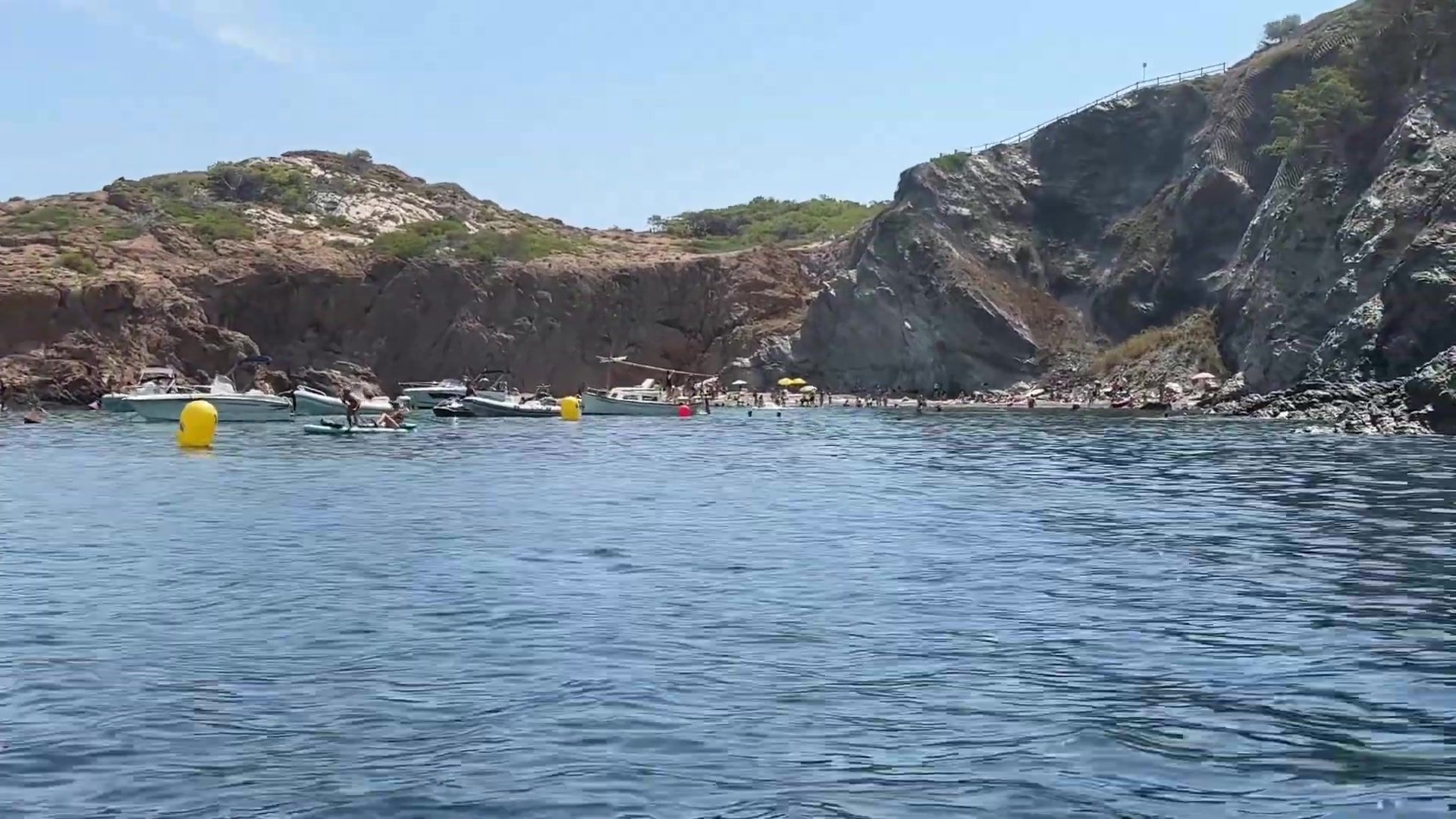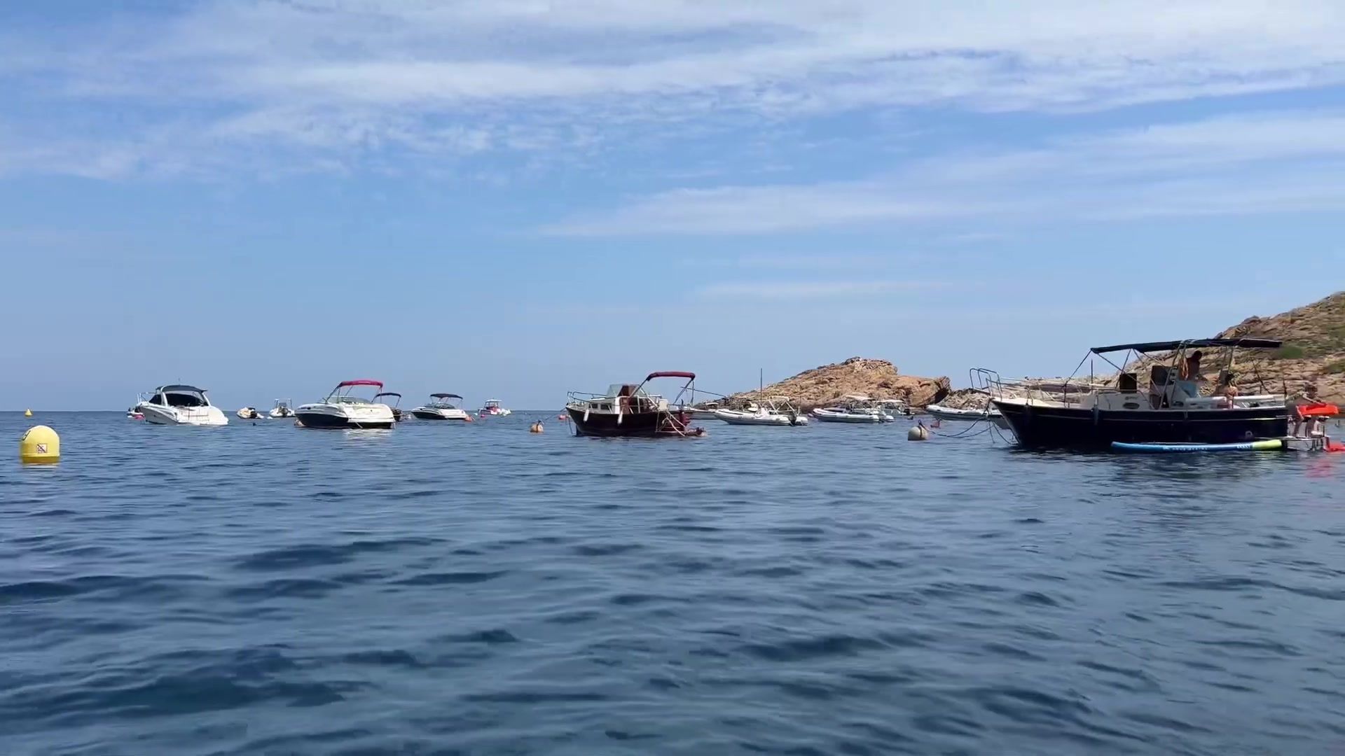 I brought along a waterproof case and tried to capture some moments in the sea. The water was calmer and quieter compared to the beach, which felt like an anthill. The beach isn’t sandy. It’s covered in pebbles, so we had to secure our umbrella with rocks. Boats frequently come into the cove from the sea, offering beautiful views from the shore. Surfing into the cove was a fantastic experience. There are also small caves you can explore here. Beachgoers rent sunbeds and umbrellas, but the rental prices are quite steep—around €50 per day. Surrounding the cove are small houses, adding to the picturesque scenery. There are also a few restaurants along the beach, but the prices are higher than at regular spots. For example, fish is priced at €155 per kilo and paella is around €110.