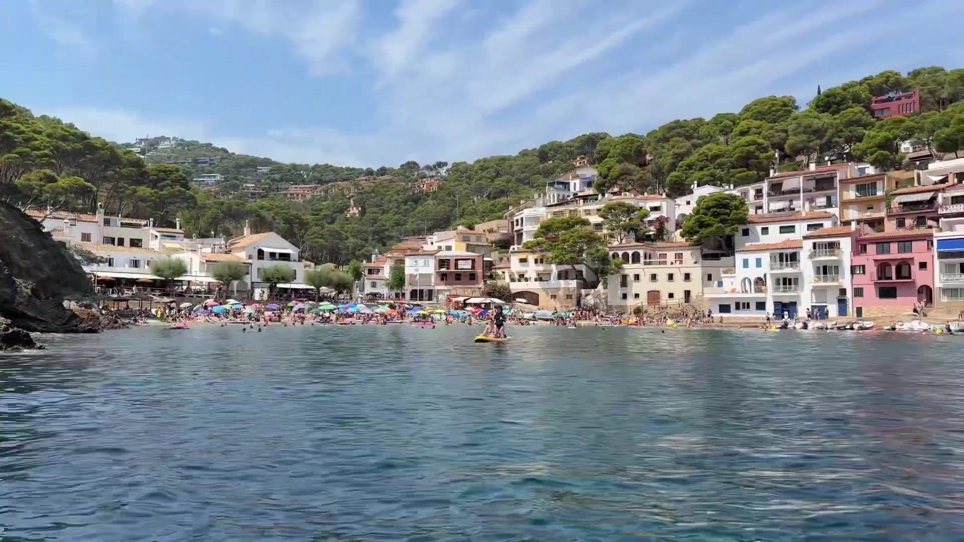 After about a two-hour drive, we arrived at a beach called Sa Tuna. Parking in Costa Brava is tough, so it’s best to come early, around 8-9 am. We got there at 11:30 and finding a spot to park took quite a while. Fortunately, we found a spot and headed to the beach with all our gear.