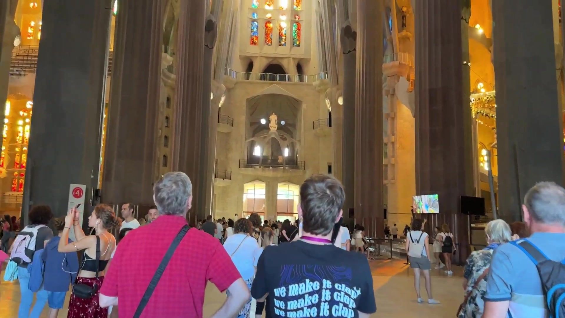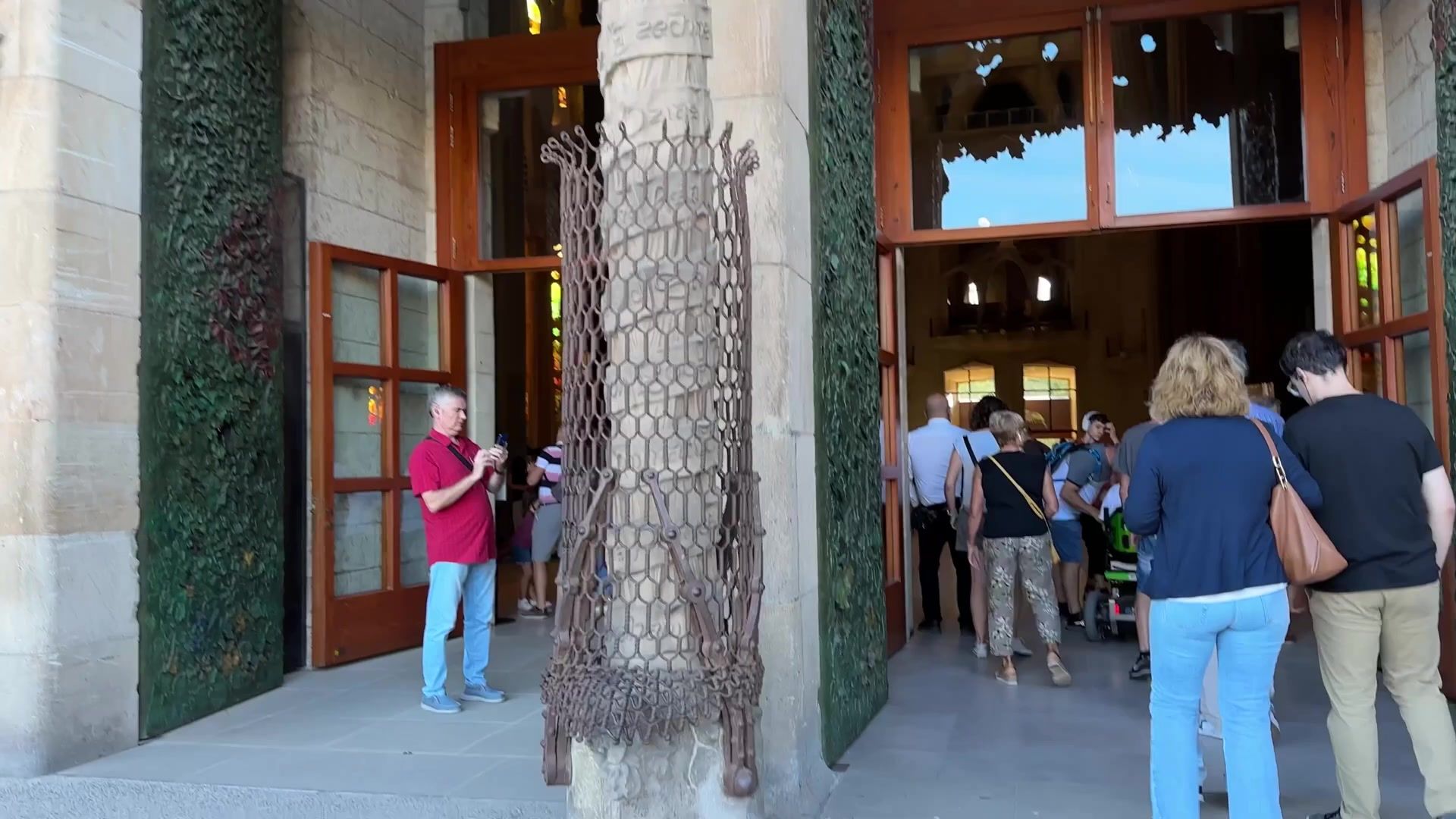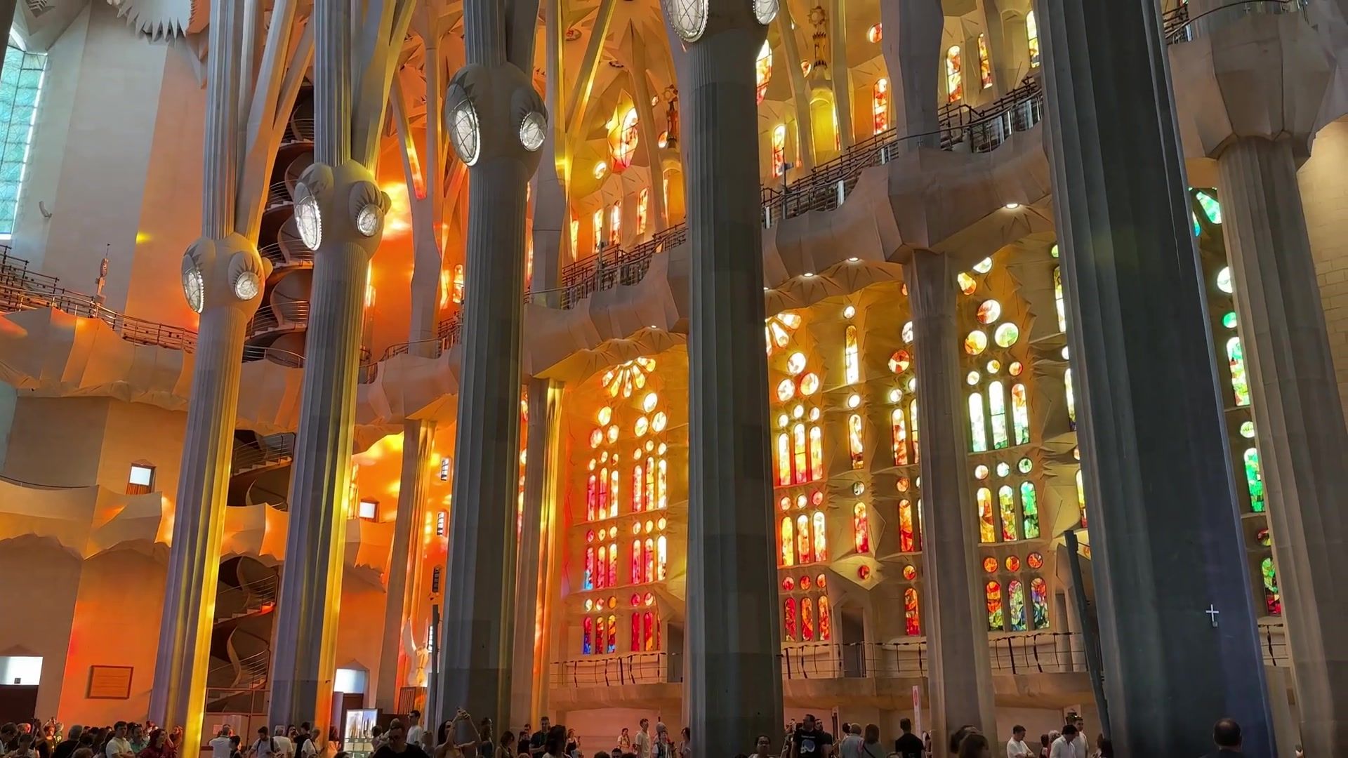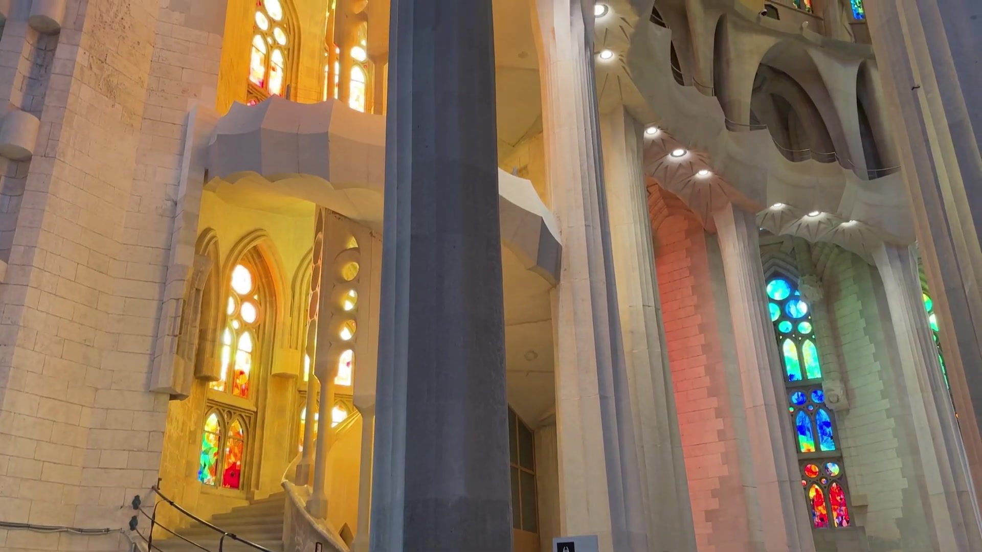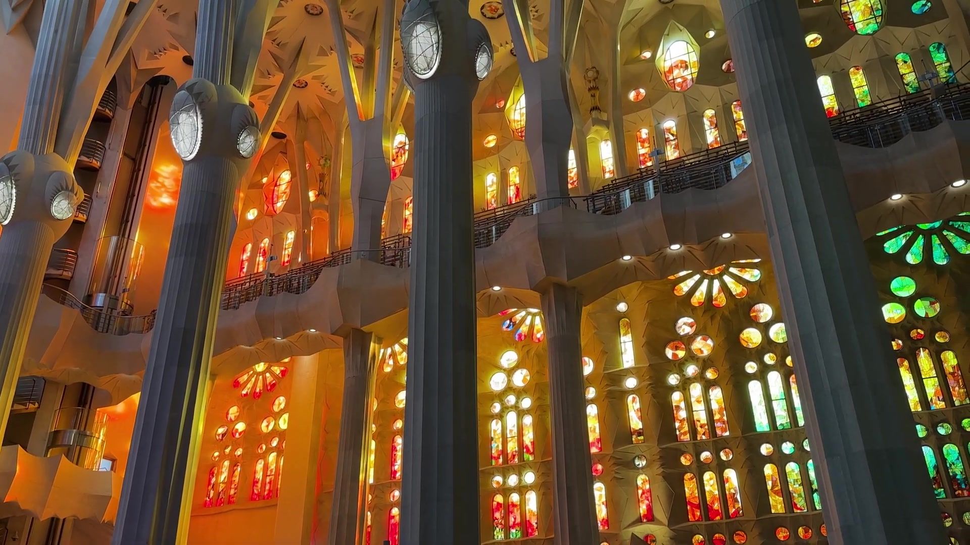 Passing by the columns. There are a total of 36 columns in the temple and the highest column is about 22 meters high. In the altar area we can find the church where Antoni Gaudi is buried. Anyone who wishes can visit this church for free.