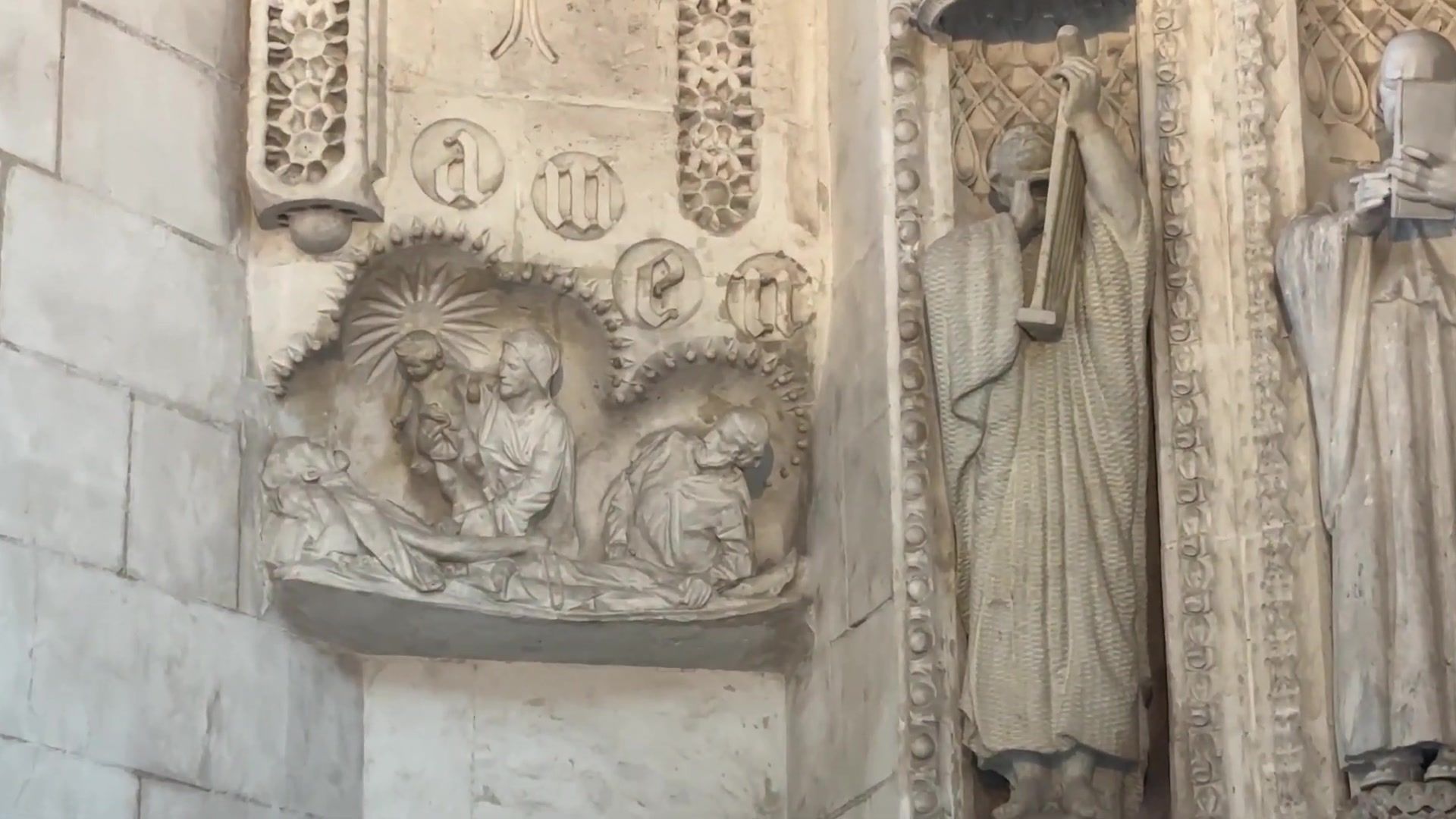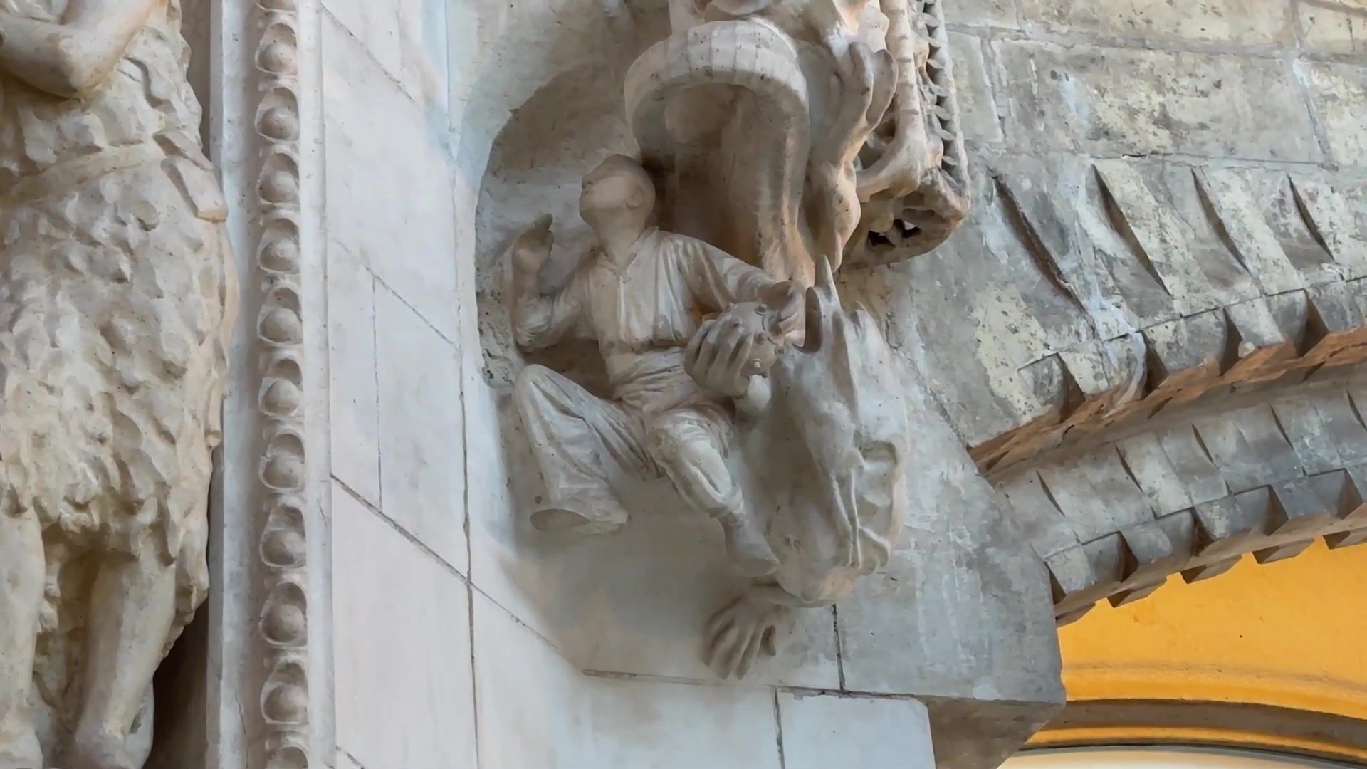At the exit there are figures that will be placed on the two towers soon. And there is another figure showing these heads, which will soon adorn a tower.