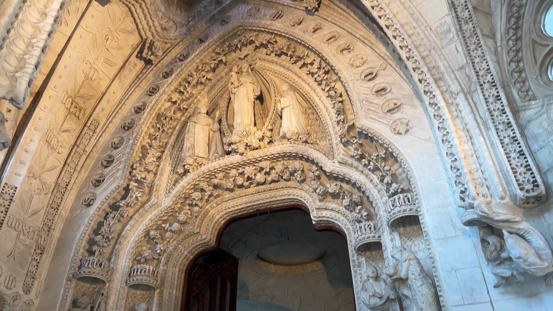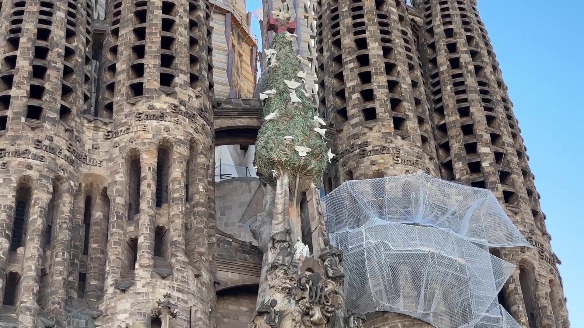 The church has a total of three facades. We started our tour from the Nativity Facade. Besides this there are also the Passion Facade and the Glory Facade. To talk a bit about its history, the first stone of Sagrada Familia was laid in 1882 and initially no one planned to build such a large church. But a year after the construction started, a new architect named Antoni Gaudi came and began working on this cathedral in 1883. This is how the construction of this magnificent structure started. We know that this place is the Temple of the Holy Family and let's examine what is on the Nativity Facade together. We went up and saw the tree. This tree is a cypress tree and it depicts saved souls in the form of white doves.
