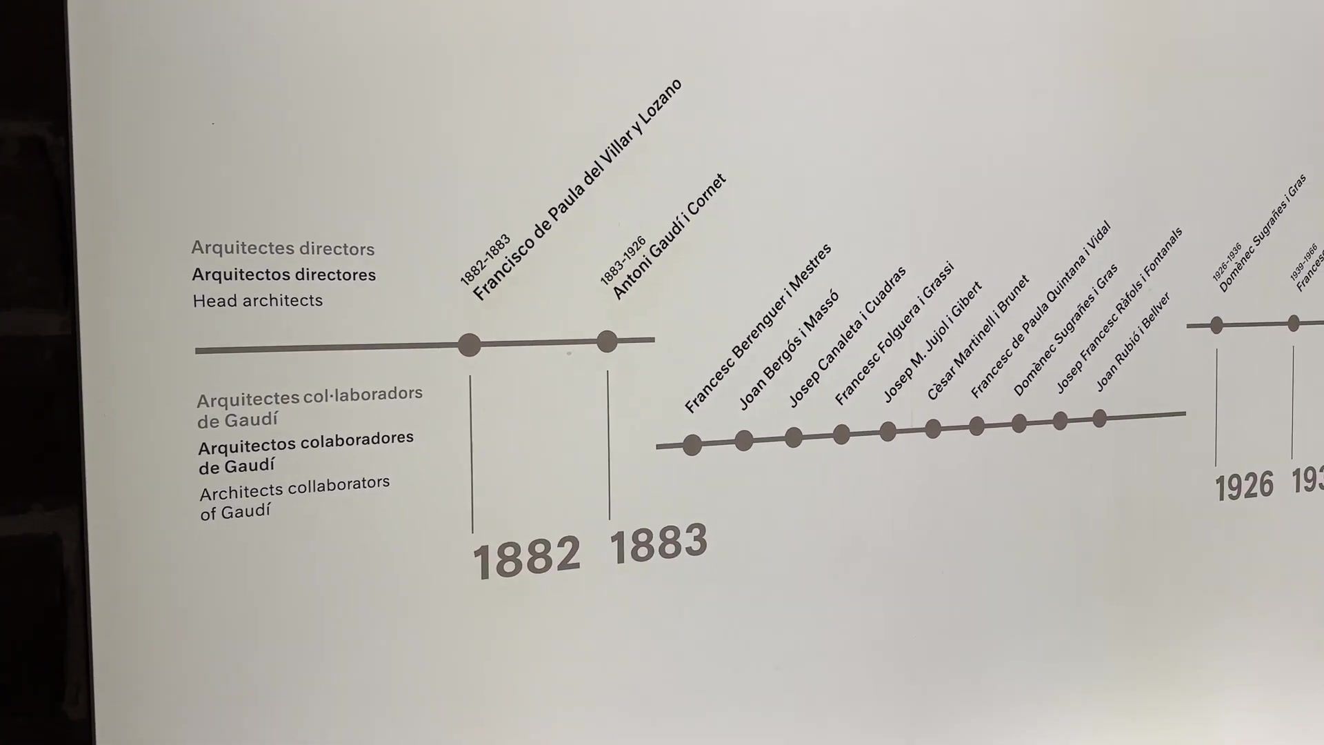 A graphic shows all the architects who have worked on the construction of Sagrada Familia at different times. The parts marked in yellow here indicate those yet to be built. There is still a lot of work to be done and the completion of this building is anticipated.